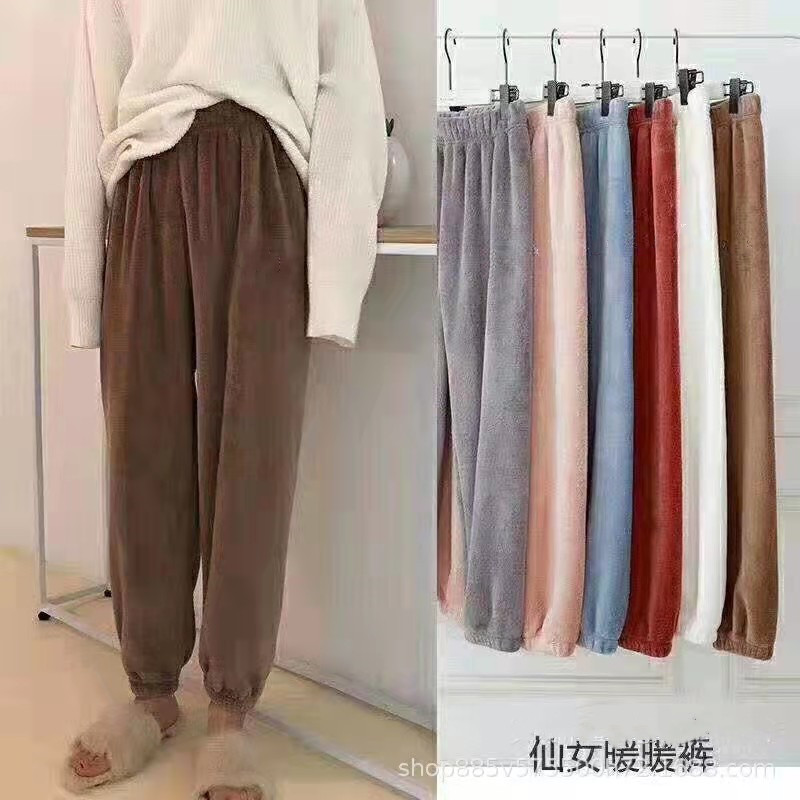 요정 따뜻한 바지 산호 양털 홈 따뜻한 바지 가을과 겨울 게으른 파자마 바지 누른 캐주얼 바지 여성용 외투