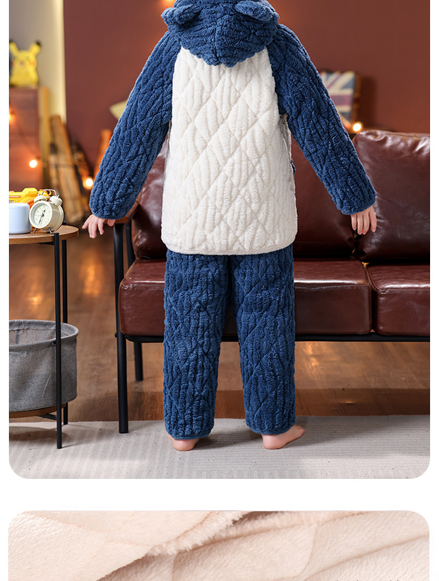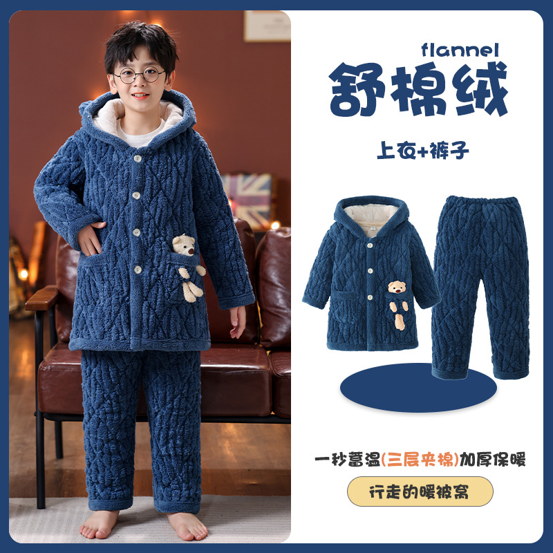 가을 겨울 어린이 플란넬 잠옷 소년용 산호 벨벳 세트 소녀 소년용 두꺼운 삼중 면 홈웨어스토어 가기