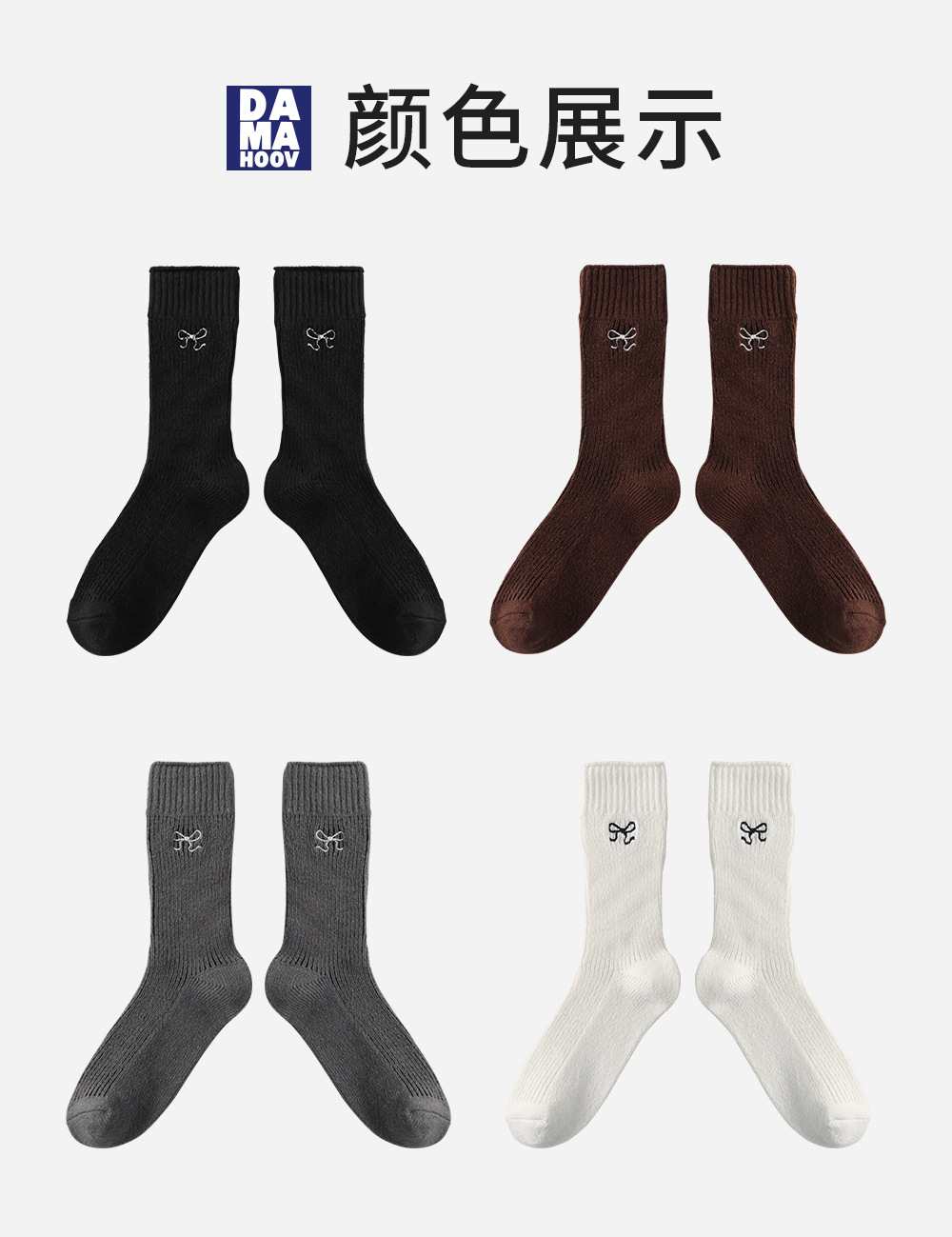 가을과 겨울 패션 그레이 스타일 양말 여성 틈새 새로운 더블 바늘 자수 활 미드 양말 달콤한 송아지 양말