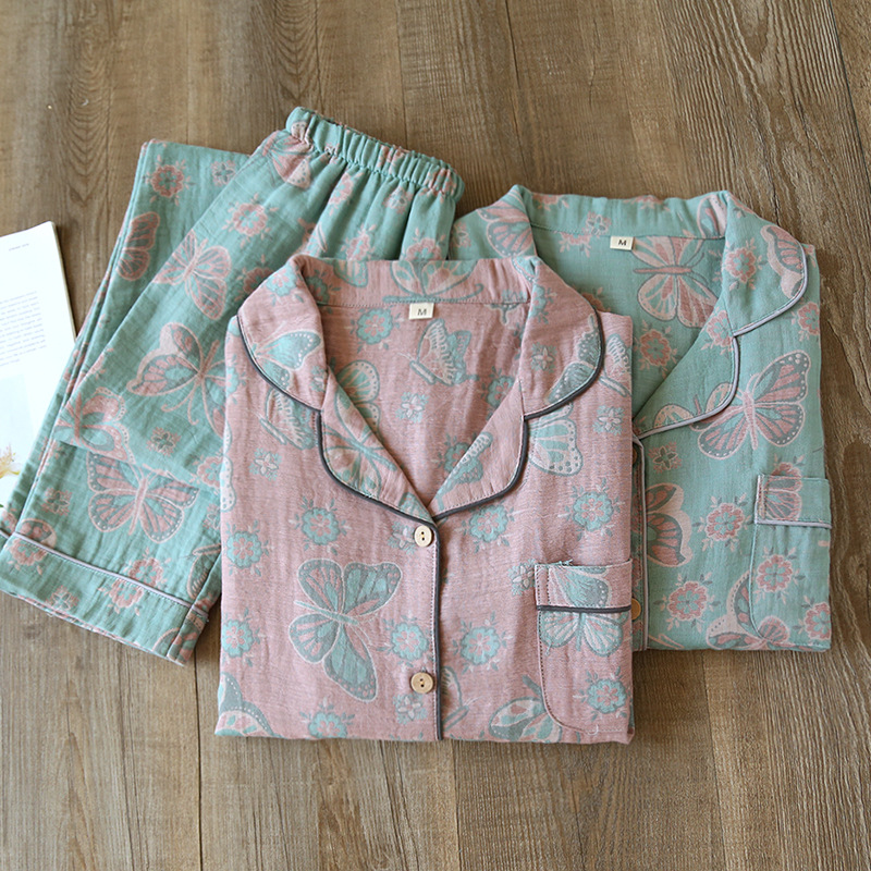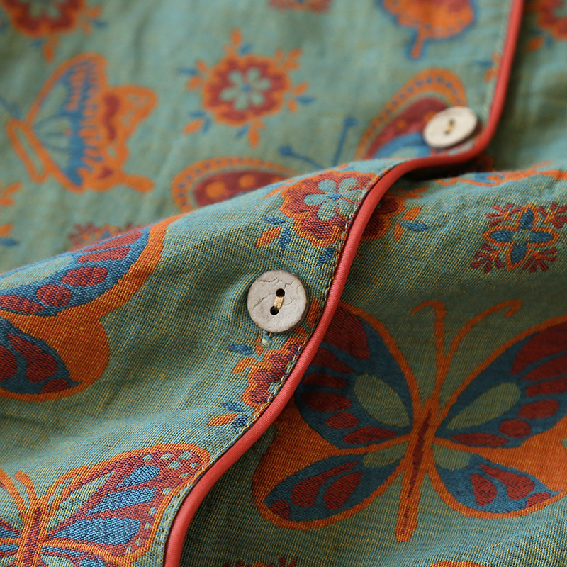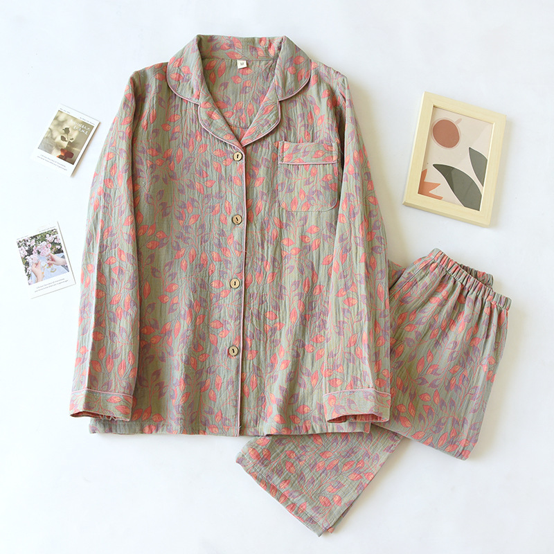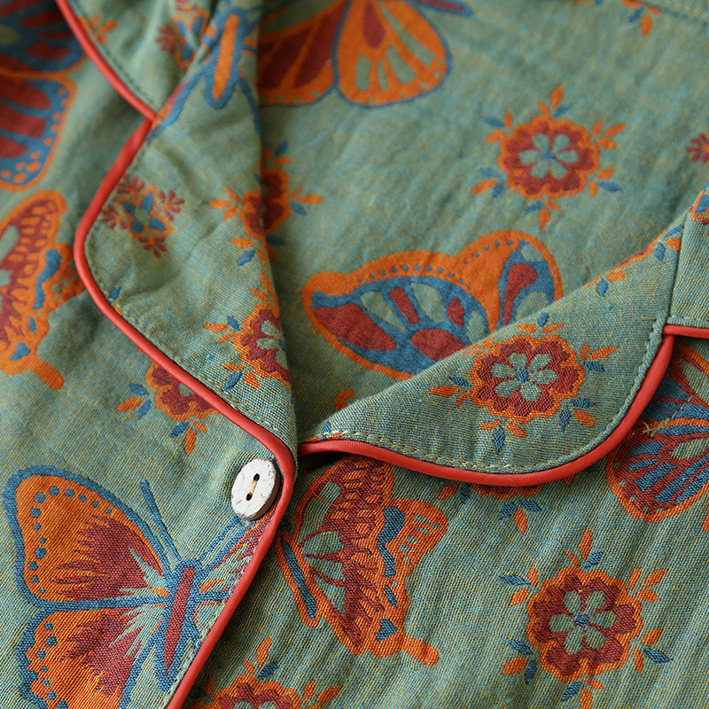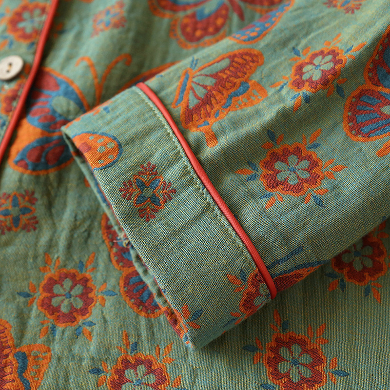 빈티지 민족 스타일 잠옷 여성 봄과 가을 여름 얇은 긴 소매 원사 염색 자카드 퓨어 코튼 캐주얼 홈 의류 세트스토어 가기