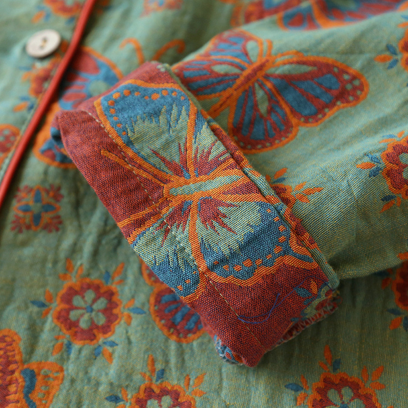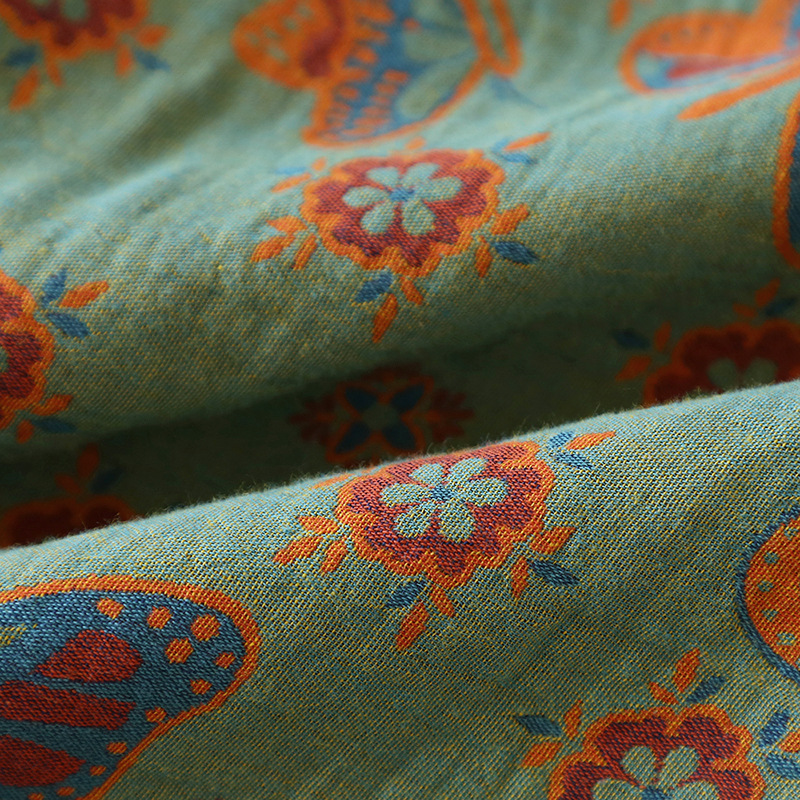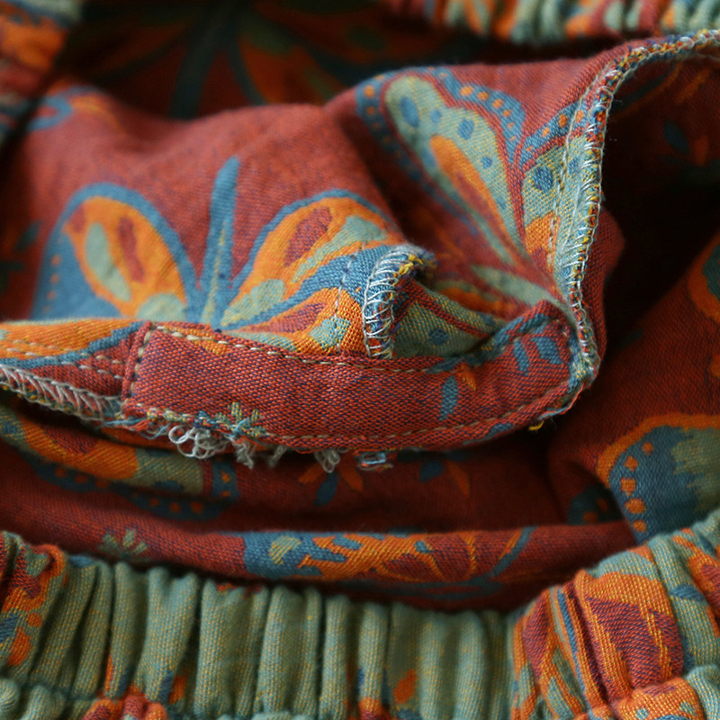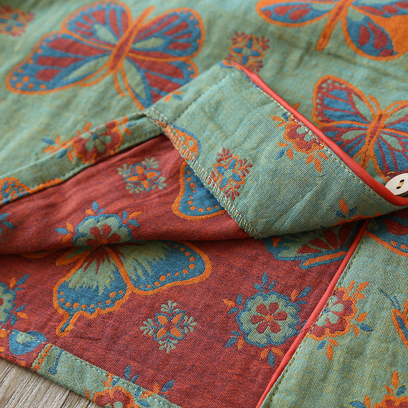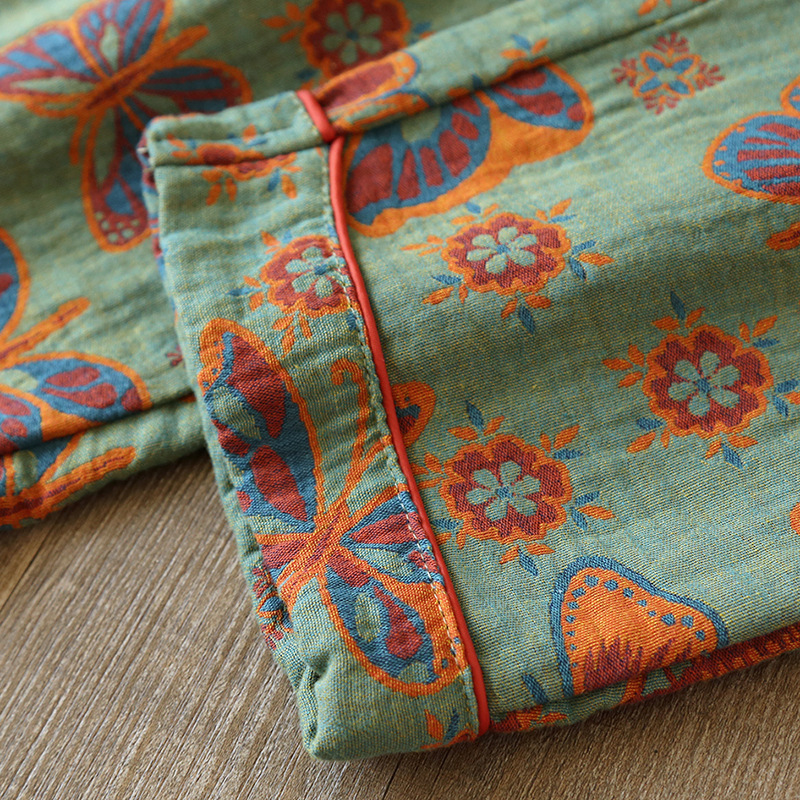 빈티지 민족 스타일 잠옷 여성 봄과 가을 여름 얇은 긴 소매 원사 염색 자카드 퓨어 코튼 캐주얼 홈 의류 세트스토어 가기