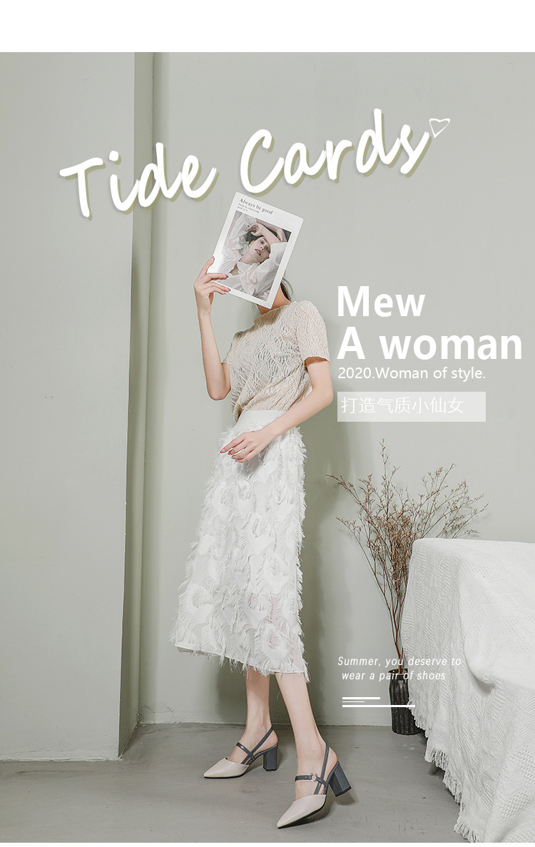 대외 무역 Baotou 샌들 여성 여름 새로운 지적 사이버 인기 하이힐 유행 뒷굽 빈 두꺼운 뒤꿈치 유행 스커트 신발스토어 가기