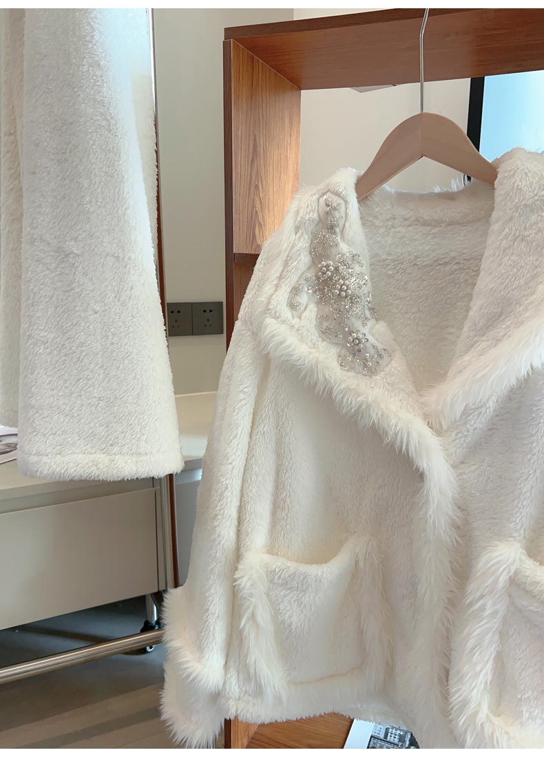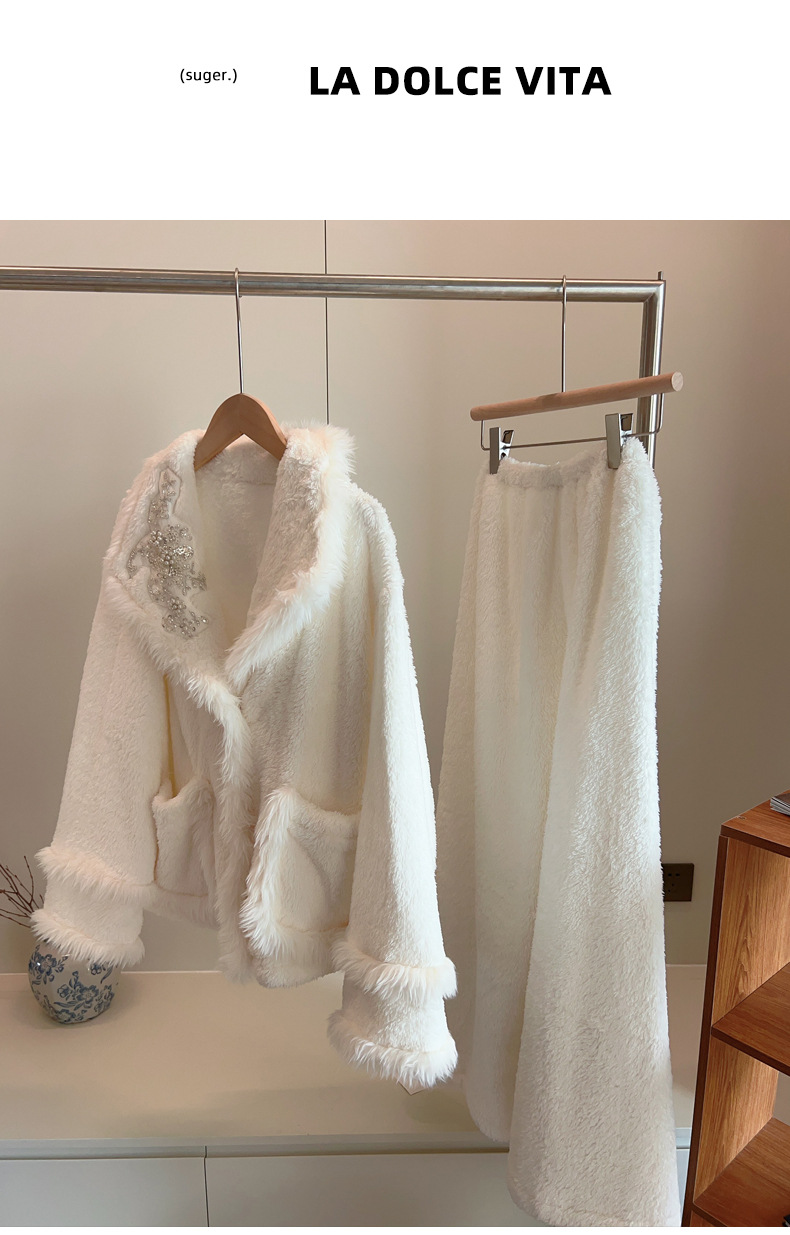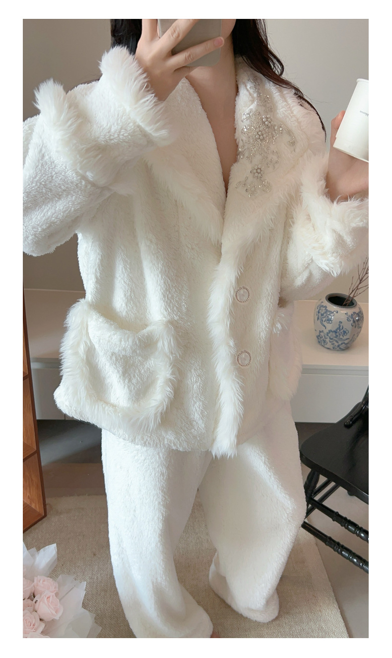 2024 새로운 산호 양털 잠옷 겨울 여성 국가 스타일 간단한 두꺼운 플란넬 가을과 겨울 홈 의류 세트