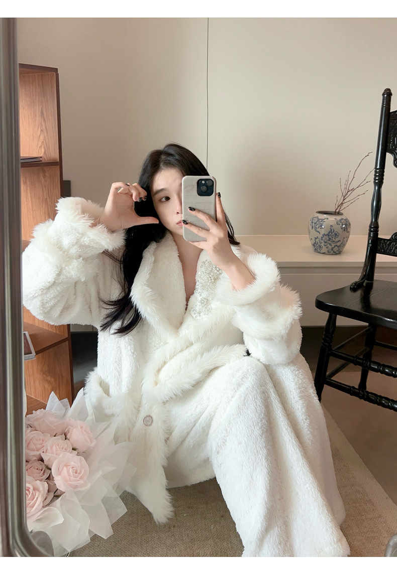 2024 새로운 산호 양털 잠옷 겨울 여성 국가 스타일 간단한 두꺼운 플란넬 가을과 겨울 홈 의류 세트스토어 가기