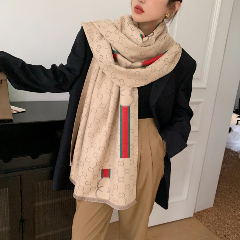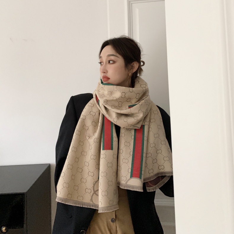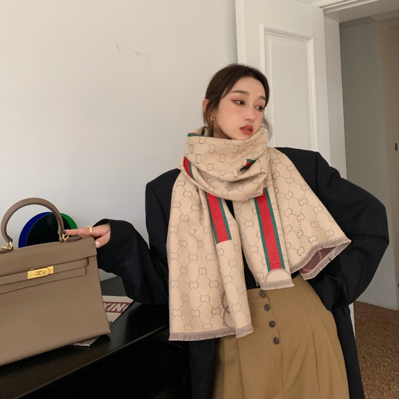 가을과 겨울 유럽과 미국의 긴 편지 고급 자카드 목도리 양면 이중 목적 스카프 여성의 두꺼운 따뜻한 모방 캐시미어 스카프스토어 가기