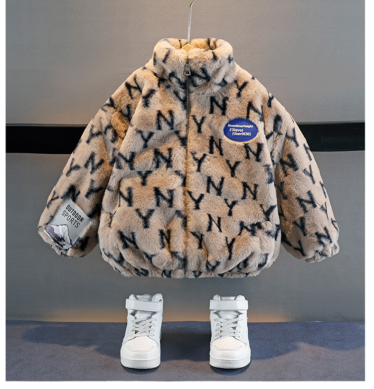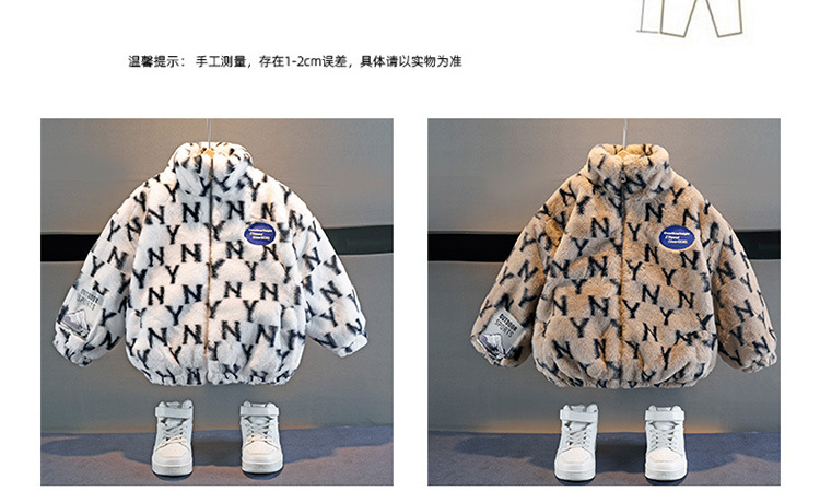 소년의 가을과 겨울 밍크 벨벳 코트 2024 새로운 어린이 외국 스타일의 기모 두꺼운 아기 마오 마오 면화 재킷 탑스토어 가기