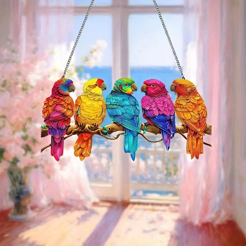 국경 새 색상 앵무새 지점 장식 아크릴 새 창 걸이 체인 매달려 현관 교수형