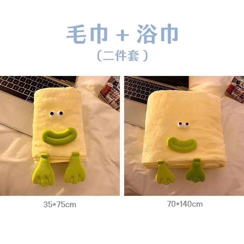 귀여운 못생긴 귀여운 목욕 타월 여성의 물 흡수성 빠른 건조 가정용 머리없는 기숙사 목욕 랩 성인 산호 양털 큰 수건