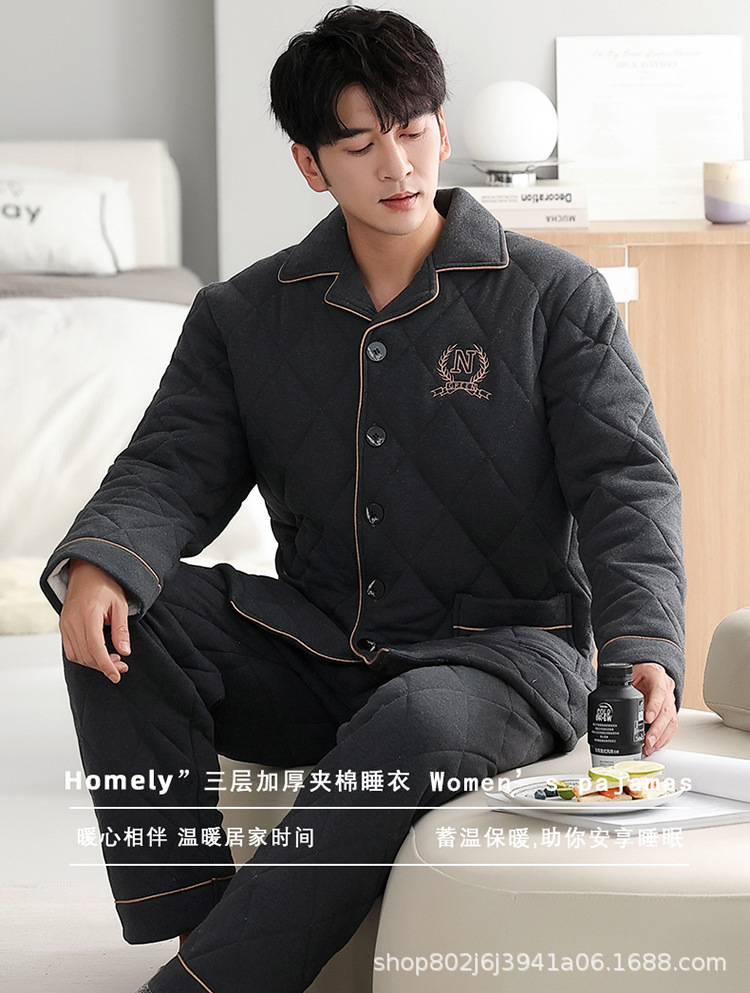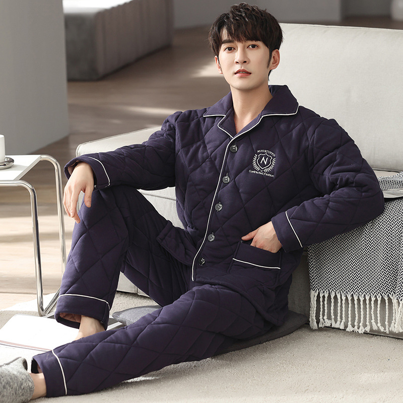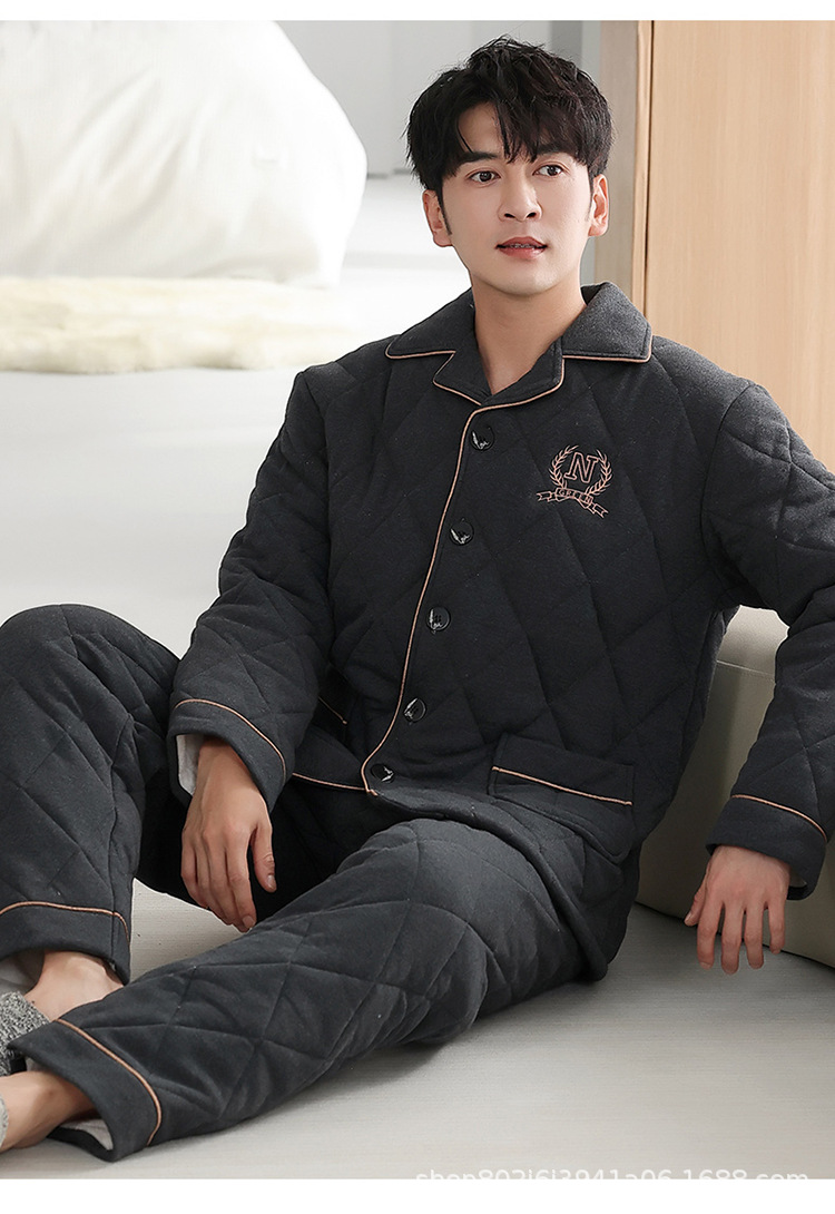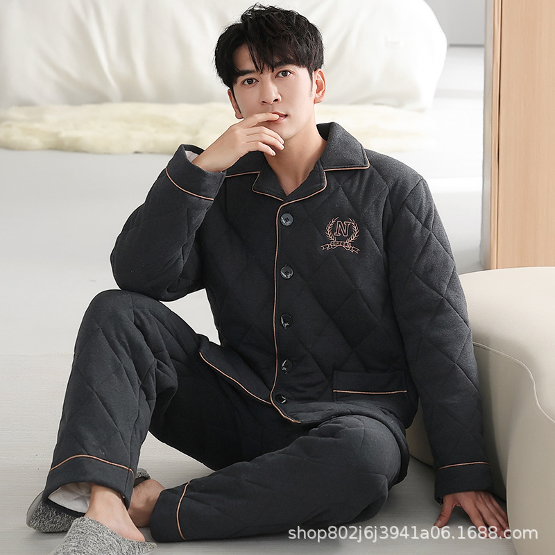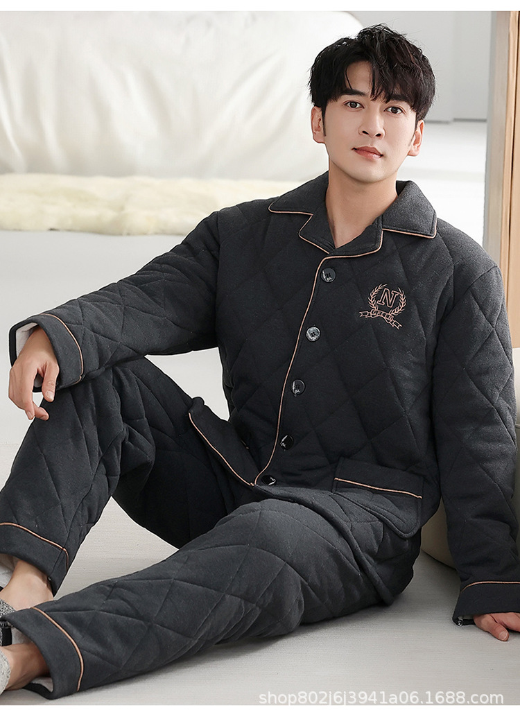 TikTok Generation 겨울 남자 3 층 두꺼운 니트 퀼트 격자 잠옷 플러스 사이즈 면화 자켓 홈 의류 세트 남성