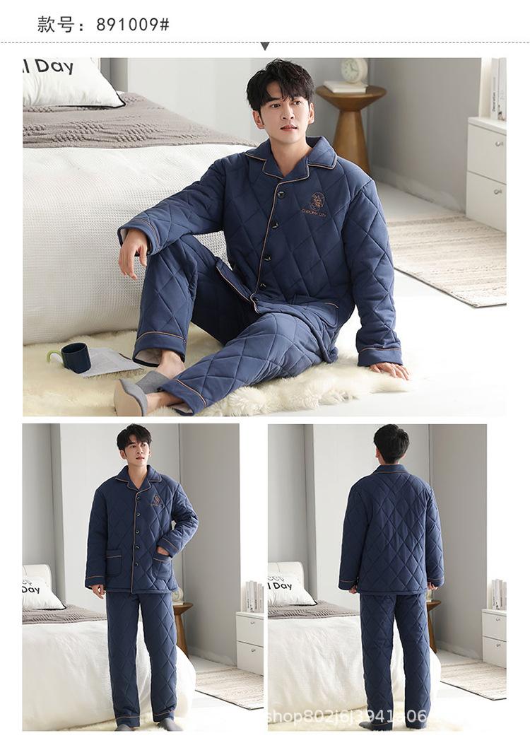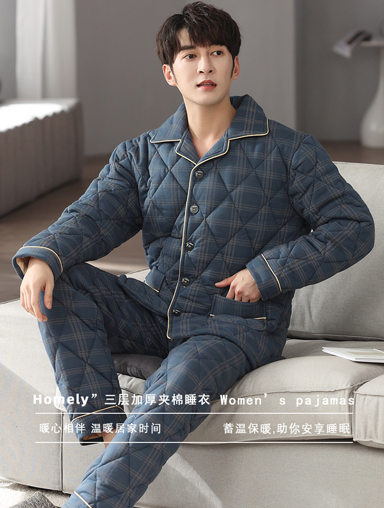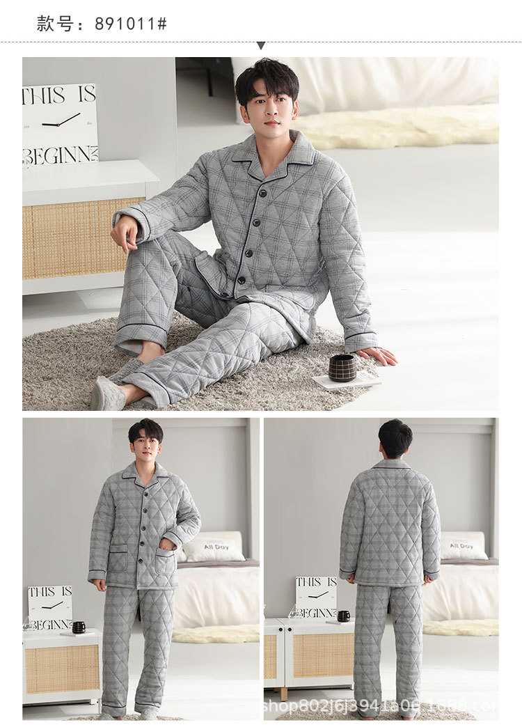 TikTok Generation 겨울 남자 3 층 두꺼운 니트 퀼트 격자 잠옷 플러스 사이즈 면화 자켓 홈 의류 세트 남성스토어 가기