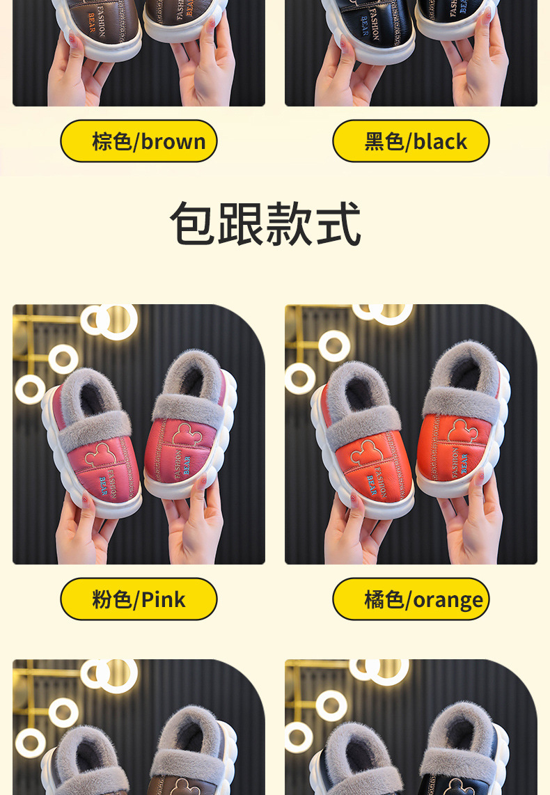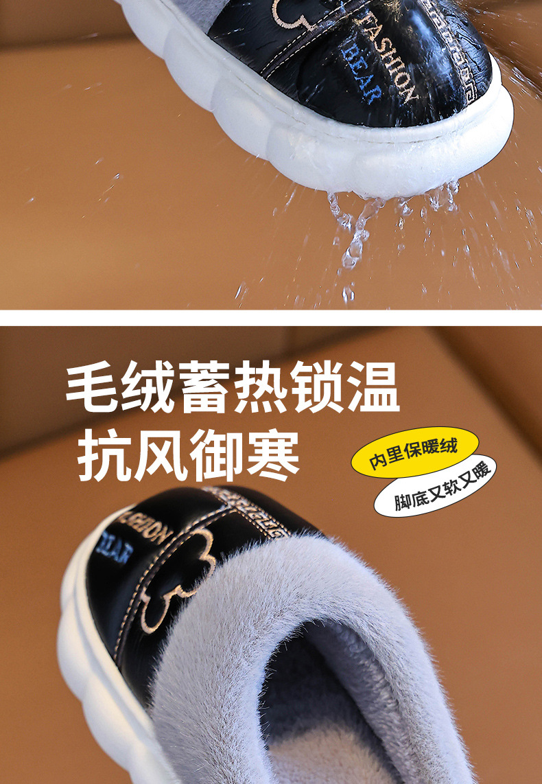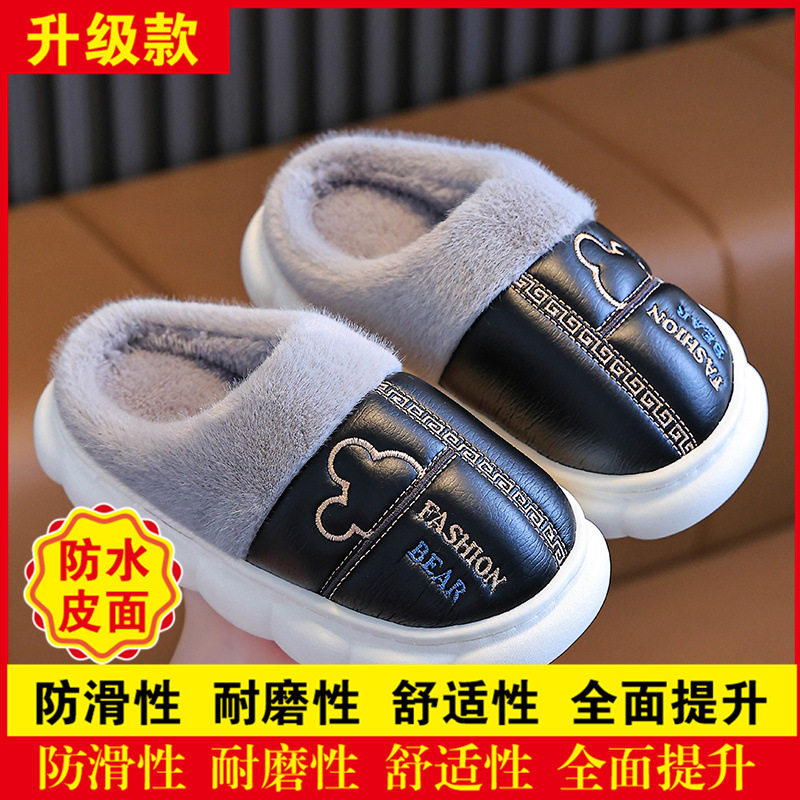 어린이 슬리퍼 겨울 만화 따뜻한 기모 두꺼운 가죽 방수 미끄럼 방지 남성과 여성의 아기 코튼 신발