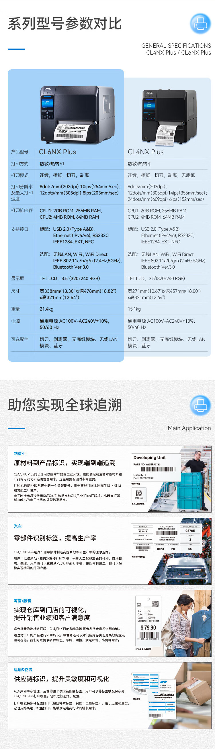 SATO CL6NX 305dpi 해상도 범용 광폭 스마트 산업용 바코드 라벨 프린터스토어 가기