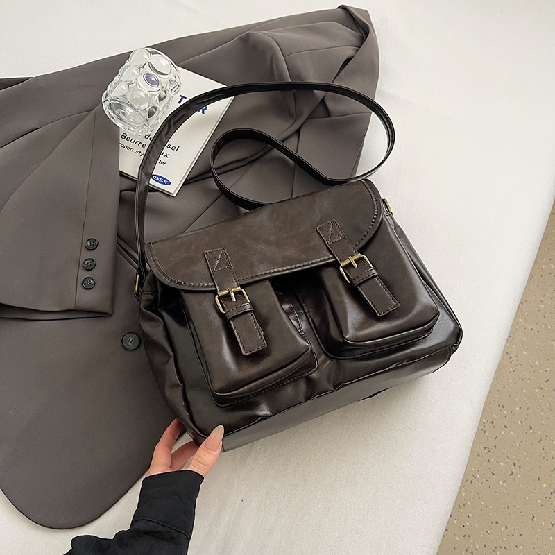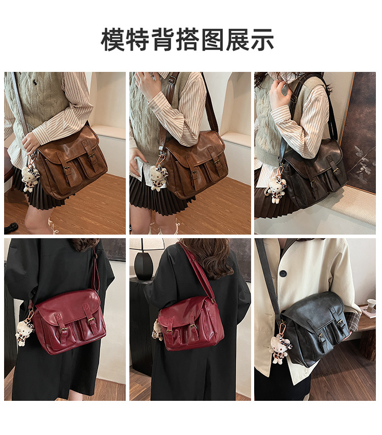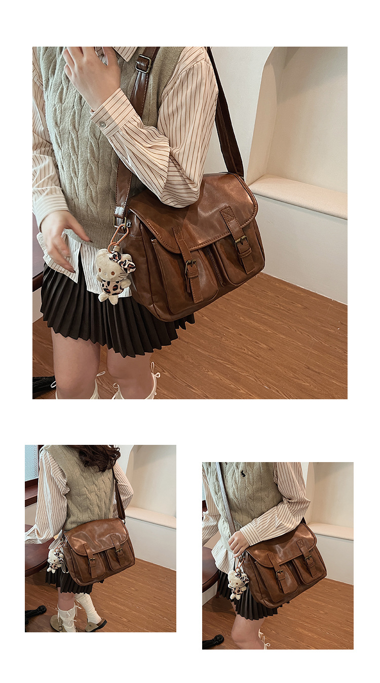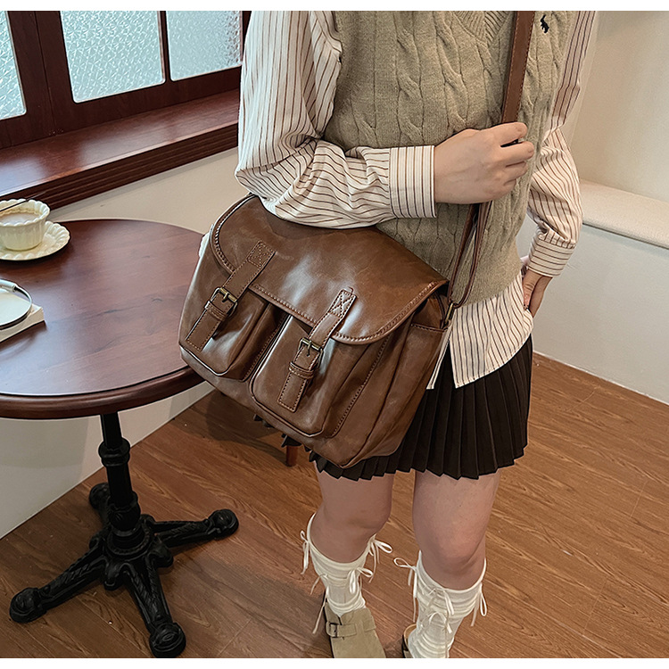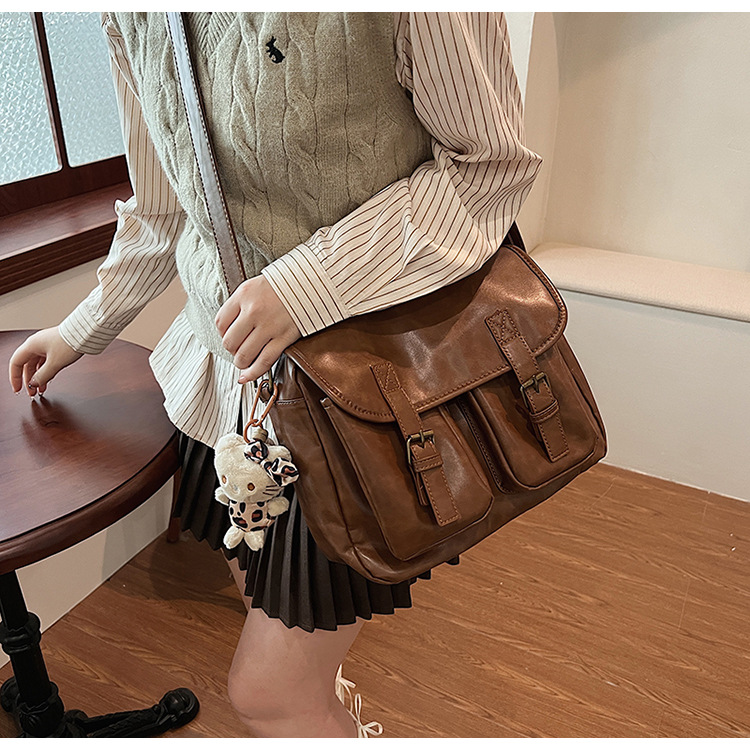 2024 일본 스타일 대학 스타일 크로스 바디 백 쿨 대용량 간단한 PU 레트로 숄더 백 학생 클래스 가방스토어 가기