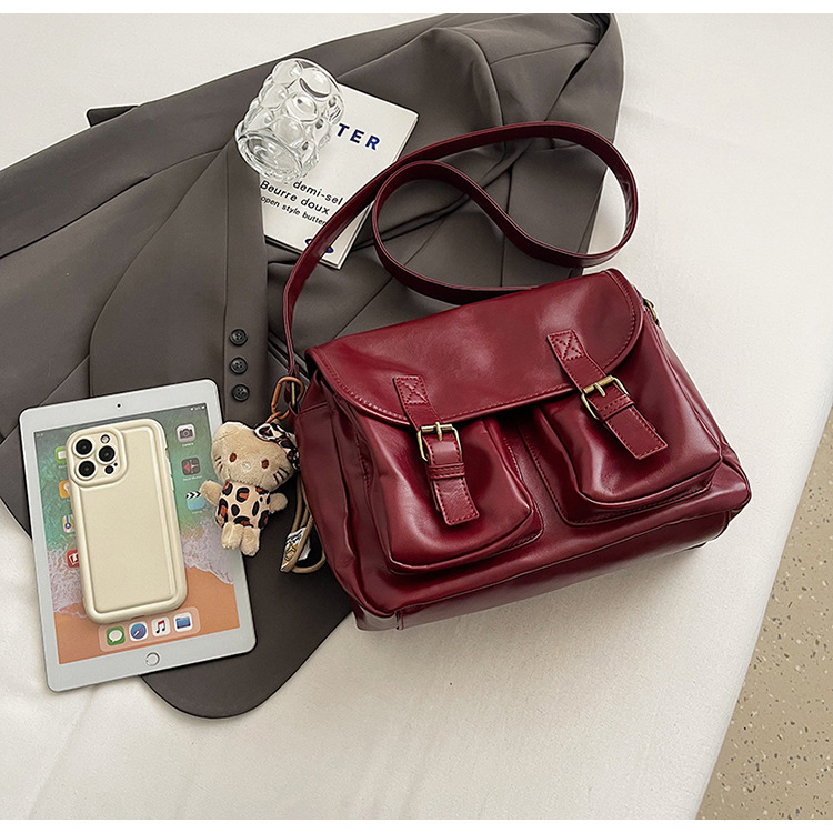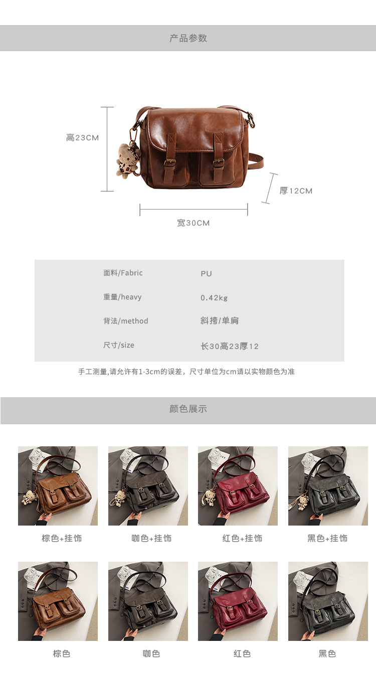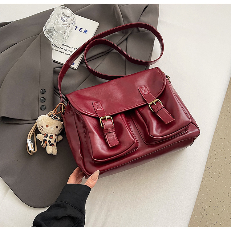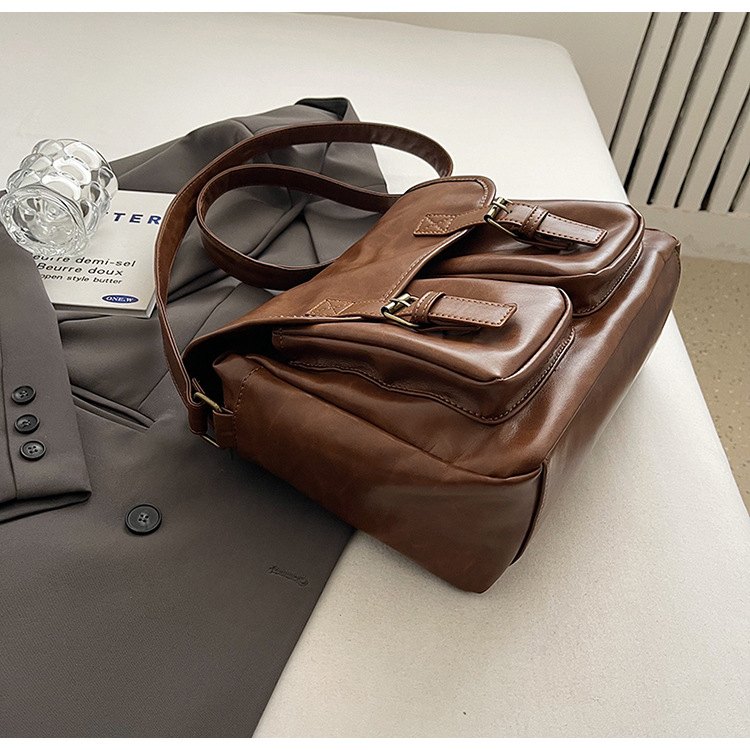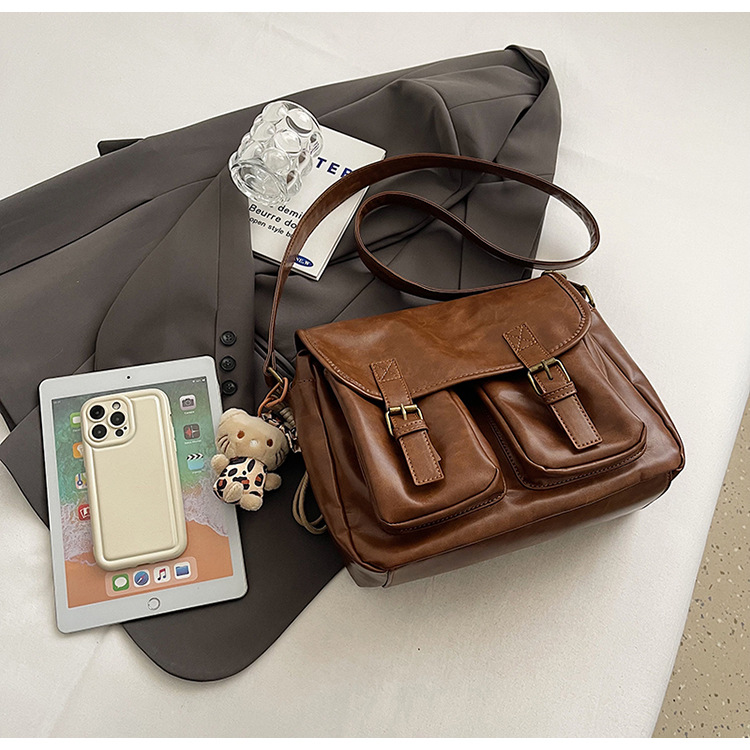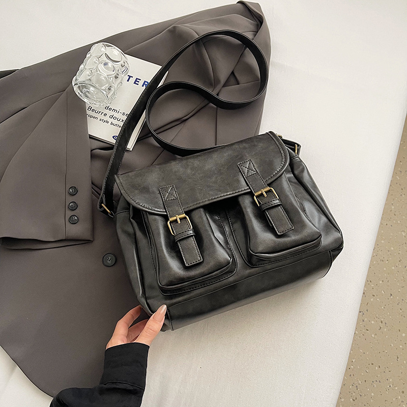 2024 일본 스타일 대학 스타일 크로스 바디 백 쿨 대용량 간단한 PU 레트로 숄더 백 학생 클래스 가방스토어 가기