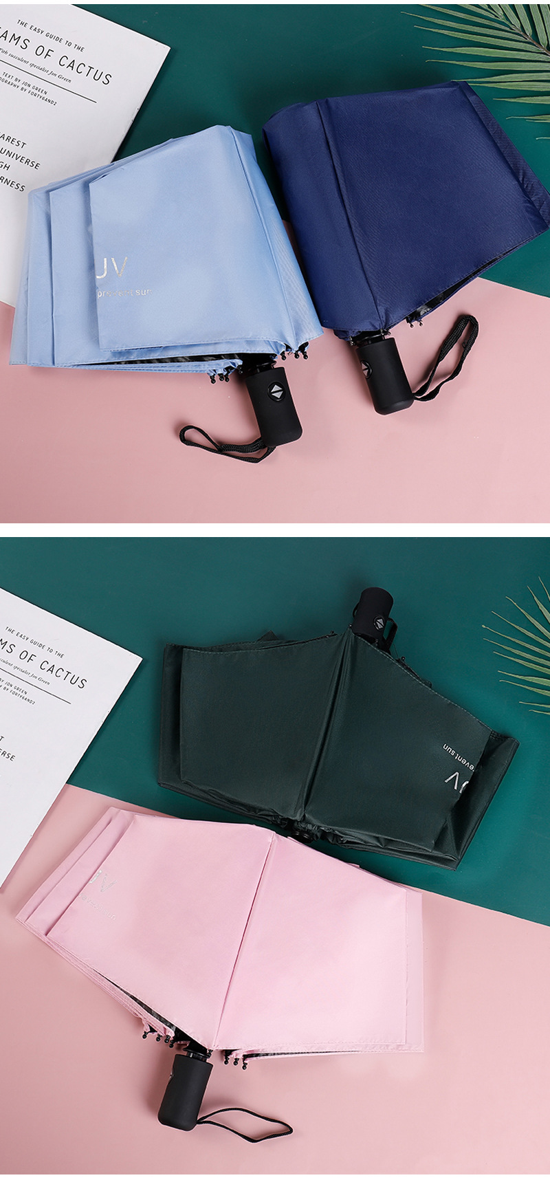 삼단 8골 자동 UV 우산, 충격 방지 천, 자외선 차단, 바람 저항, 선블록 기능, 첨단 기술