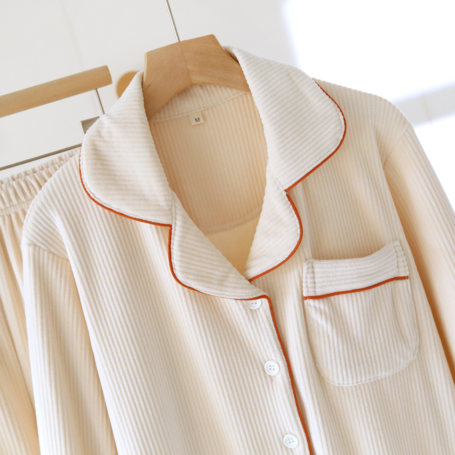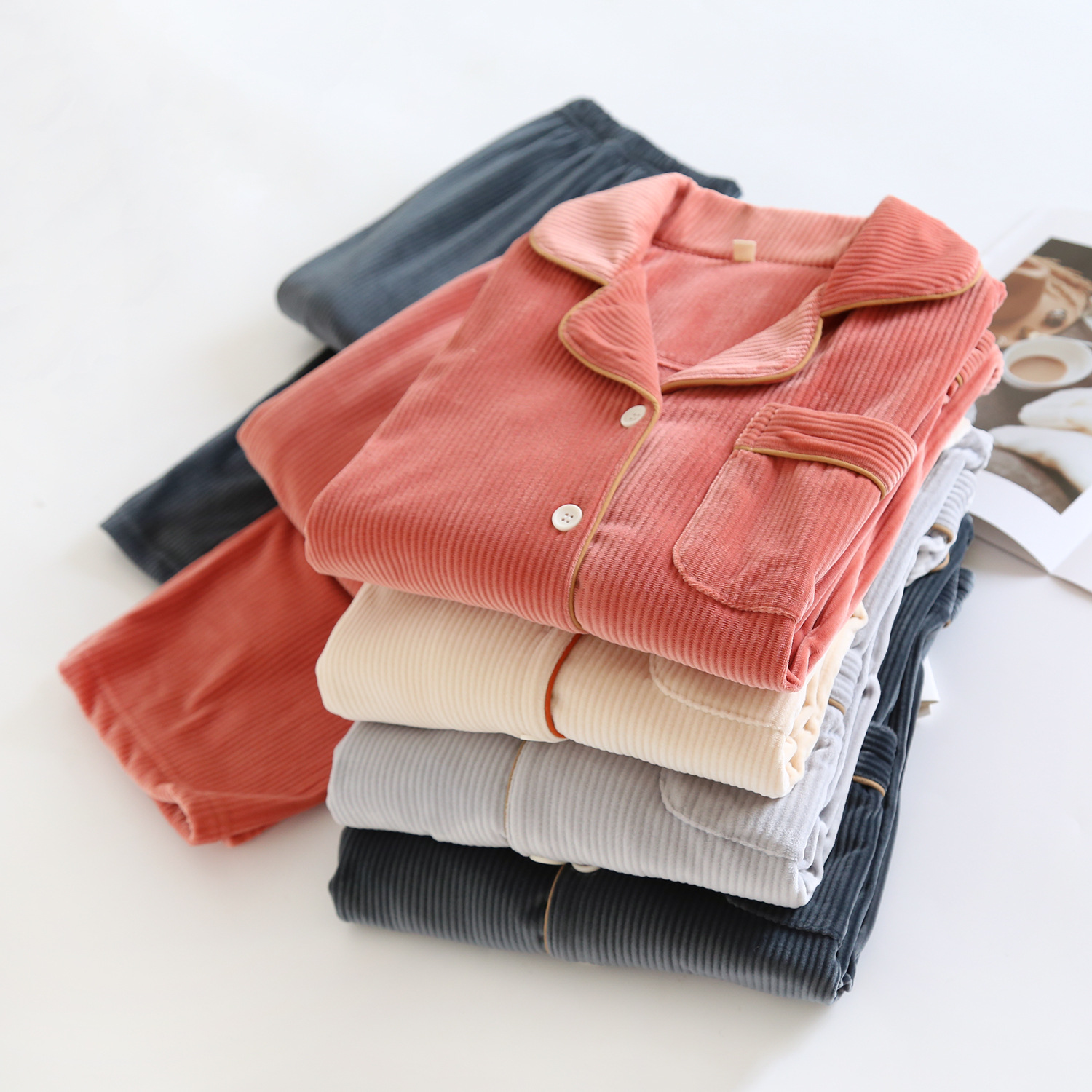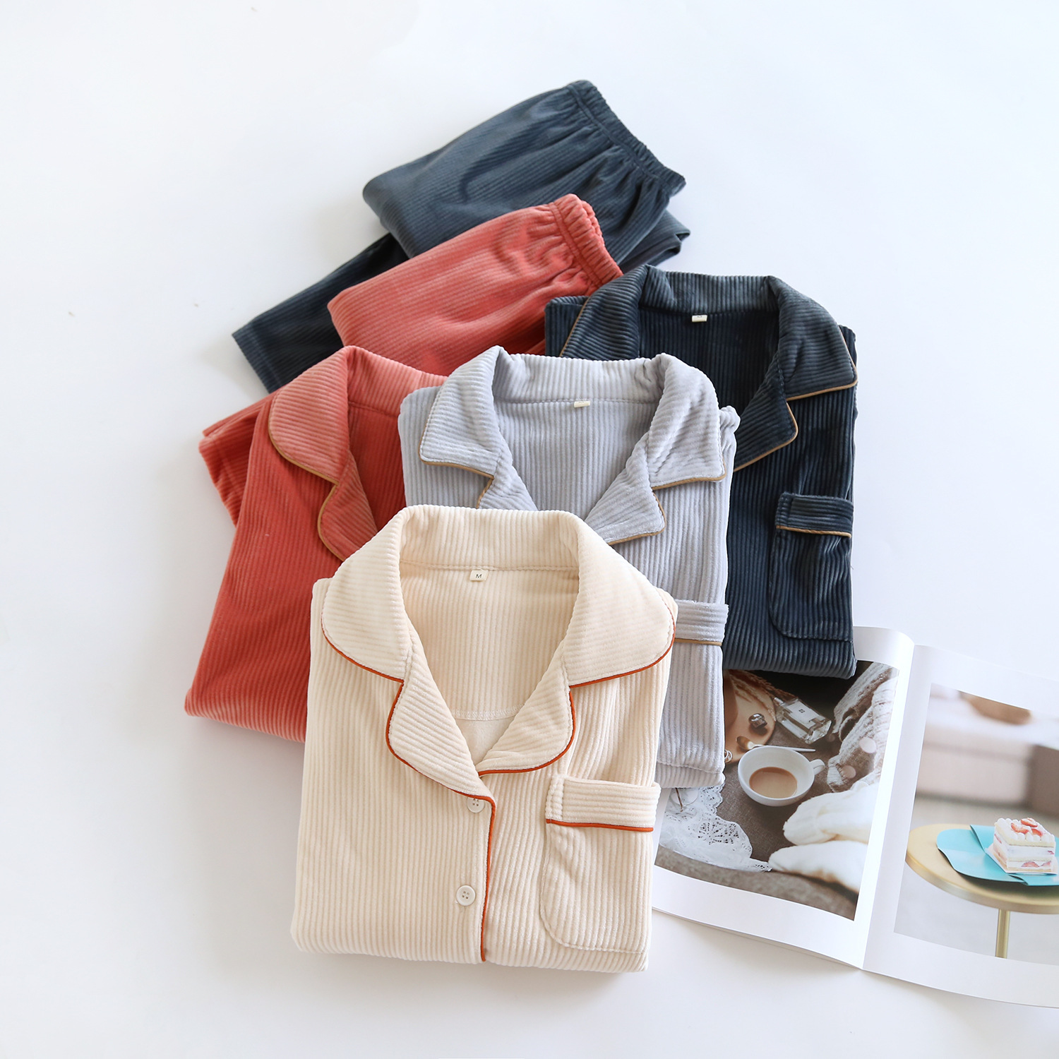 가을과 겨울 남녀 옷깃 섬 벨벳 니트 카디건 플러스 사이즈 탄성 홈 의류 따뜻한 긴팔 바지 커플 잠옷스토어 가기