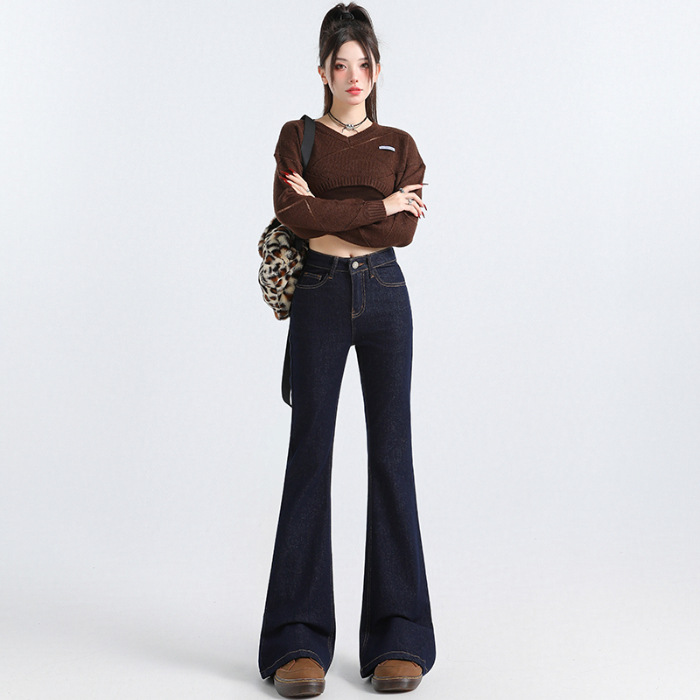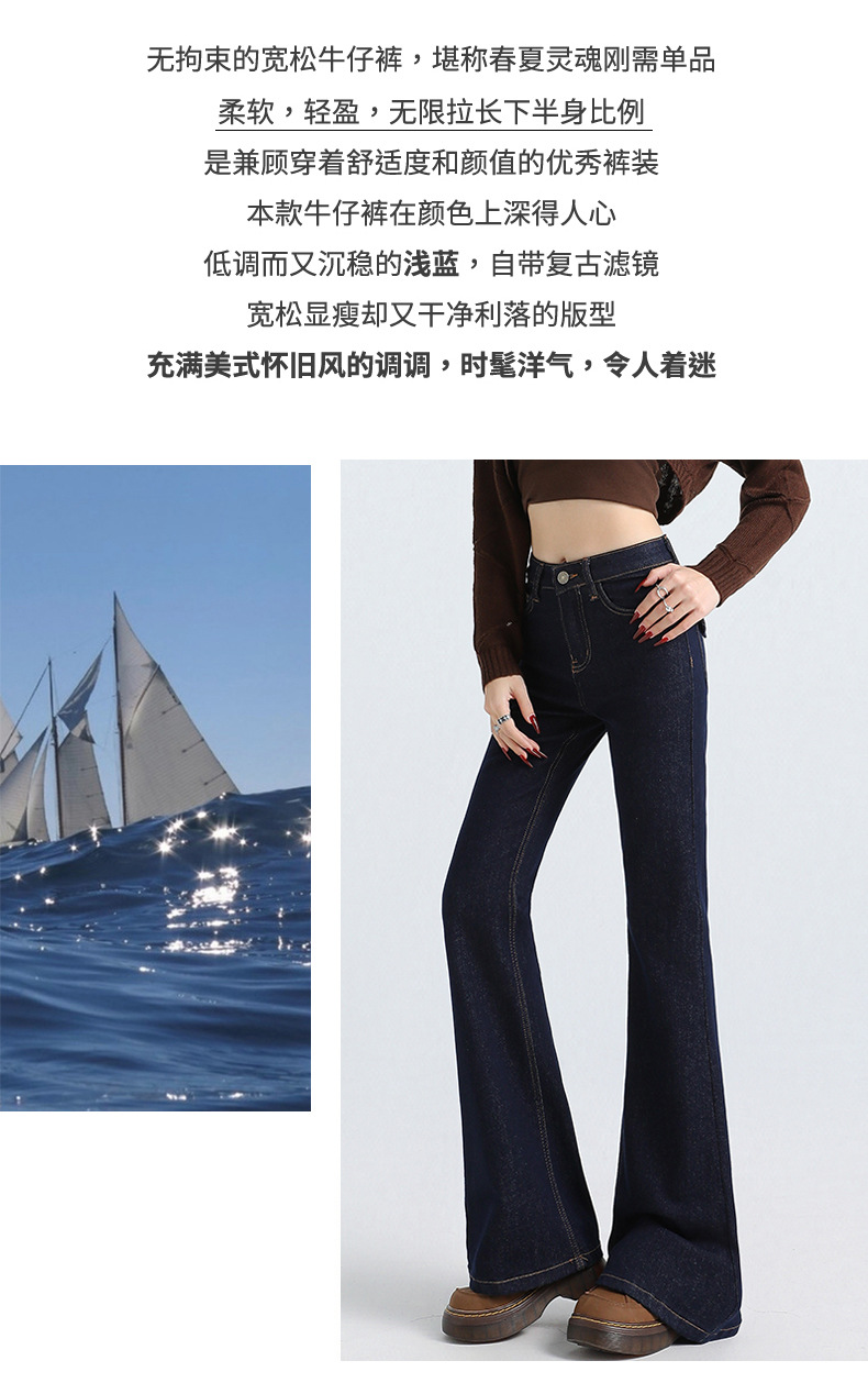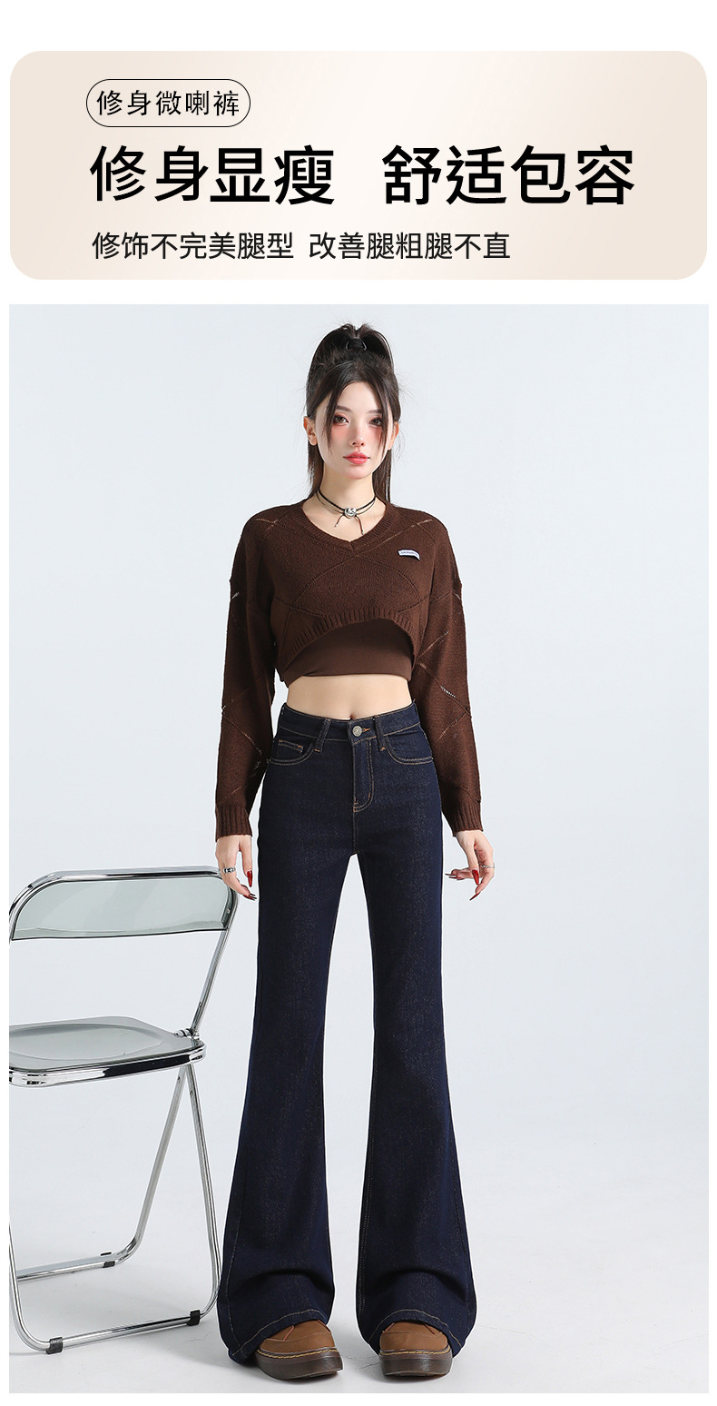 데님 블루 아메리칸 핫 걸 마이크로 플레어 청바지 여성 2025 가을 신상 하이 웨이스트 슬림 피트 스트레치 말굽 바지스토어 가기