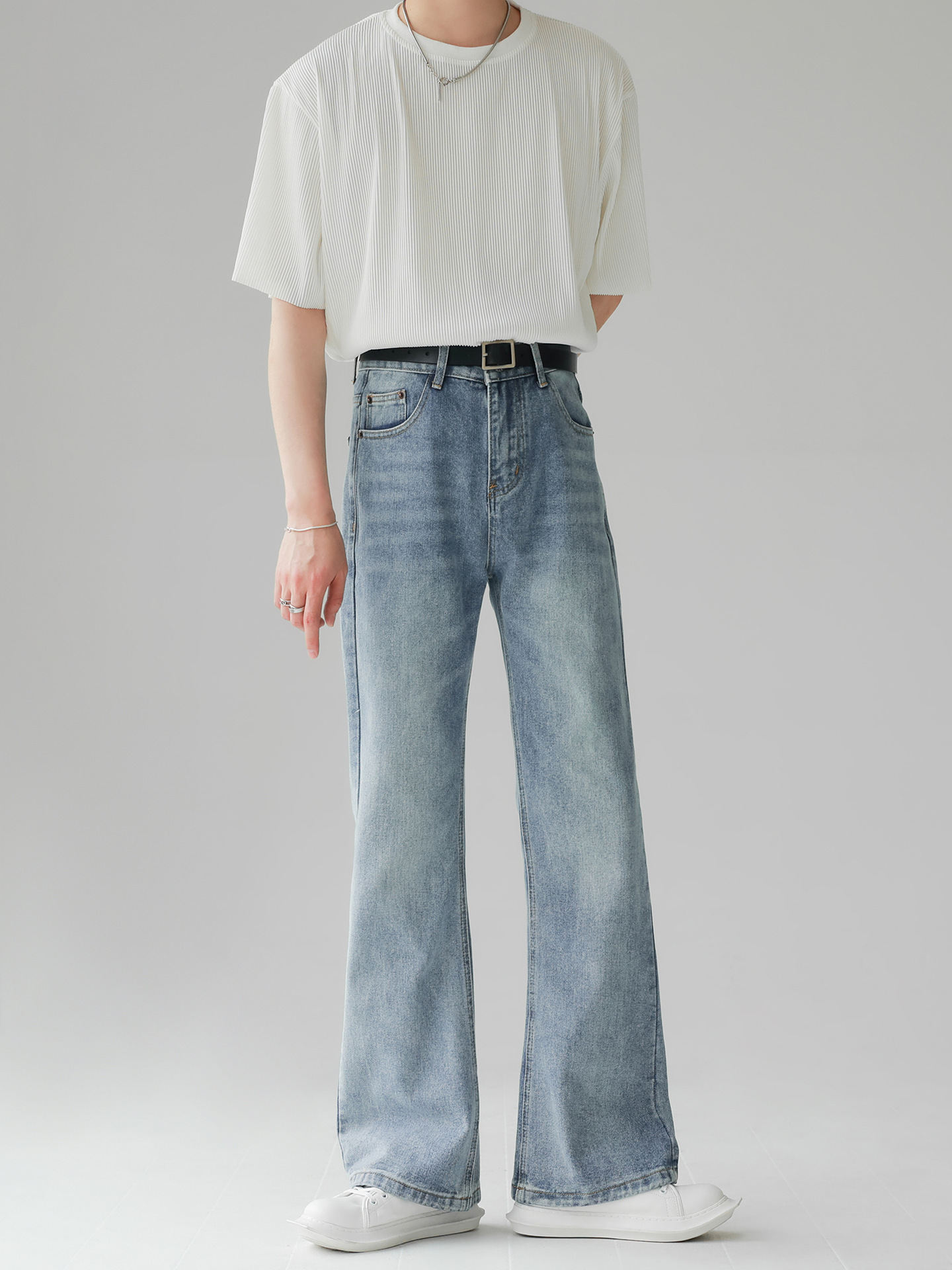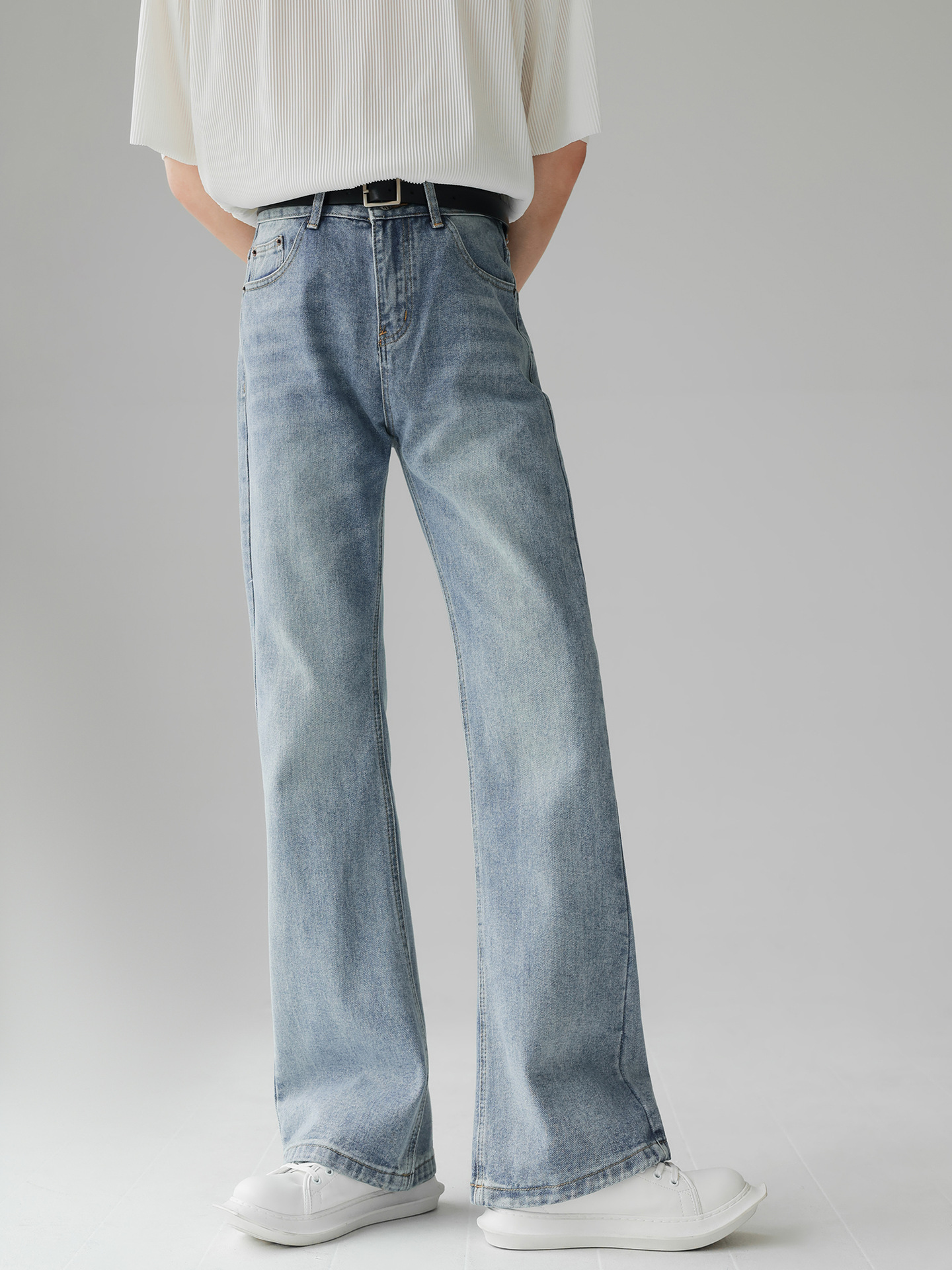새로운 아메리칸 스타일 레트로 루즈 클린 핏 마이크로 라지 남성 하이 스트리트 올 매치 슬림 룩 스트레이트 팬츠 트렌디스토어 가기
