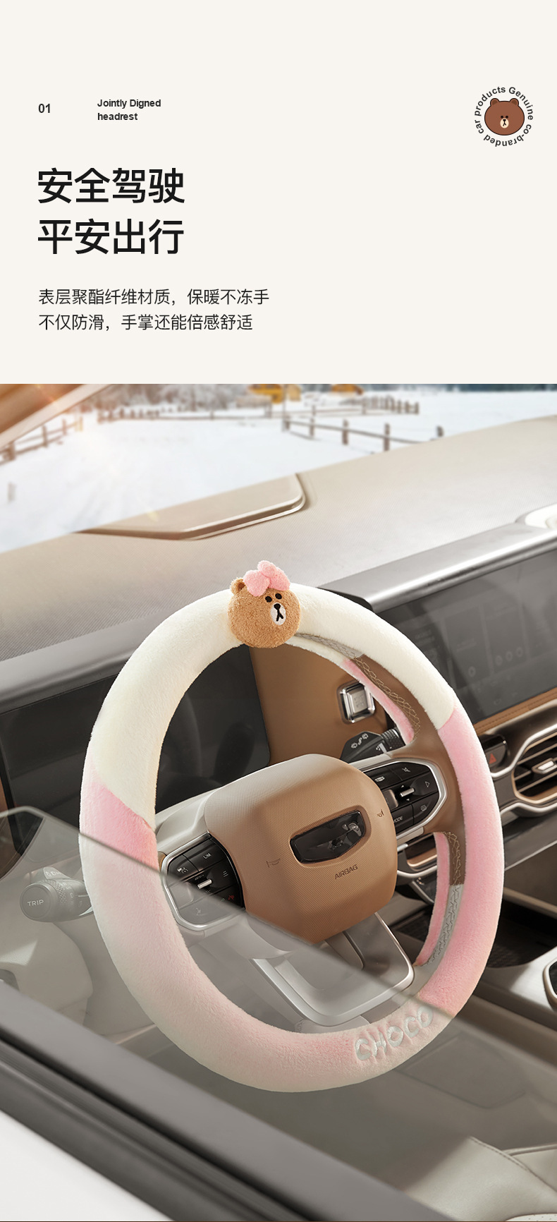 • 플러시 스티어링 휠 커버-BROWN 스타일
