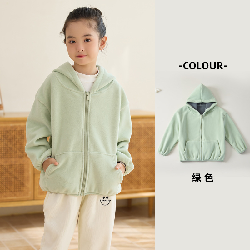 어린이 양털 코트 2024 가을과 겨울 새로운 소년과 소녀 겨울 탑 아기 따뜻한 옷 후드 재킷