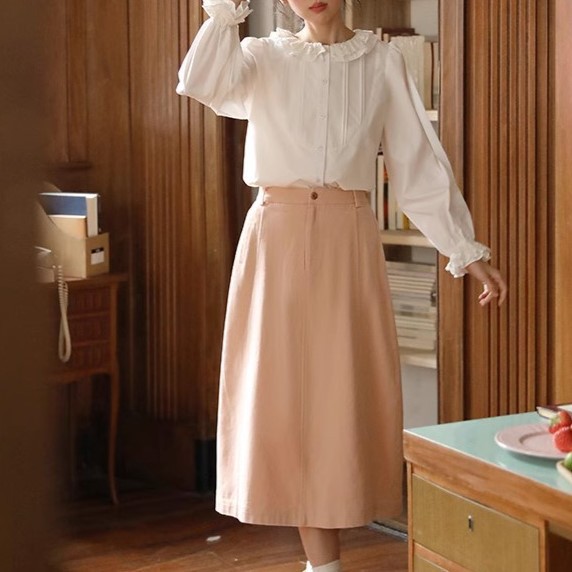 Nesoulum 화이트 더블 레이스 칼라 트리밍 셔츠 여성의 가을 프랑스 스타일 복고풍 느슨한 디자인 탑스토어 가기