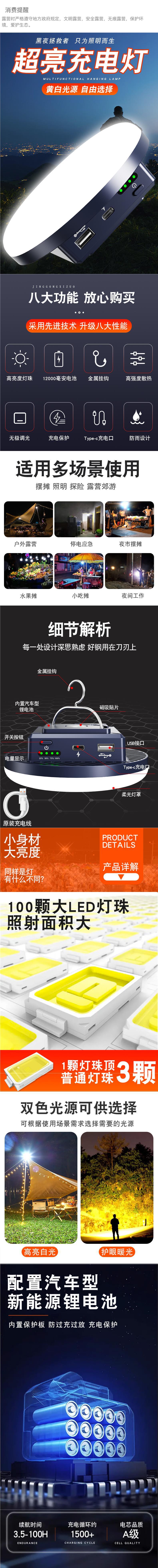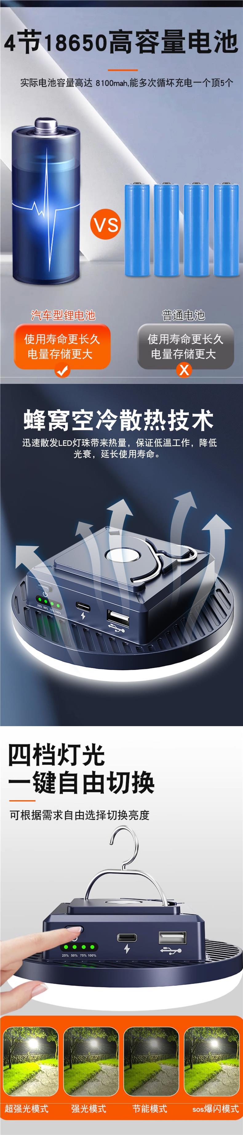 캠핑 조명 매우 긴 내구성 매우 밝은 캠핑 텐트 캠프 정전 비상 캐노피 메인 조명 야외 충전식 조명