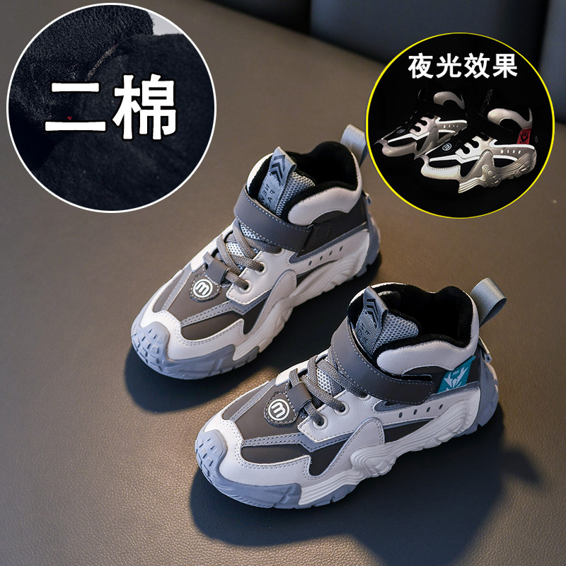 남아 운동화 2025 신상 가을 겨울 중대형 어린이용 플러스 벨벳 어린이 신발 부드러운 밑창 방수 어린이 신발 가을 스타일 어린이 신발