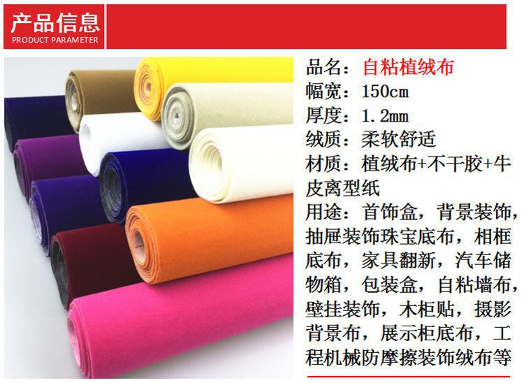 접착 카운터 플란넬 선물 상자 가방 Lanzhi가있는 두꺼운 접착제 자체 접착 플란넬 블랙 암호화 자체 접착 플로킹 패브릭