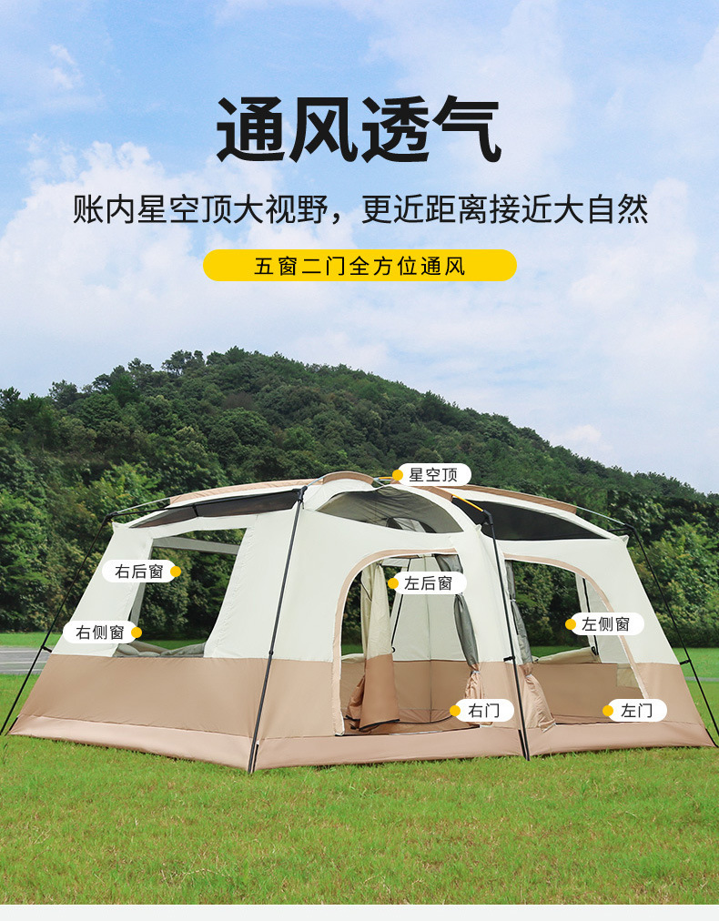 두꺼운 텐트 야외 캠핑 용품 완전 자동 캠핑 방수 접이식 휴대용 2실 1홀 빌라 텐트