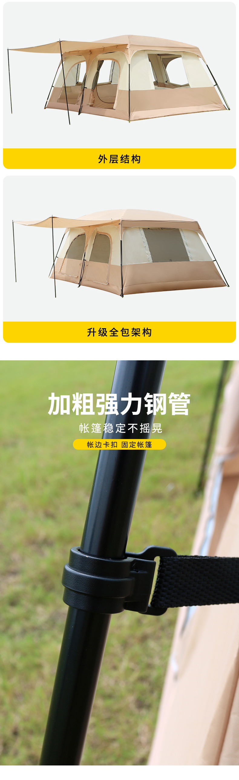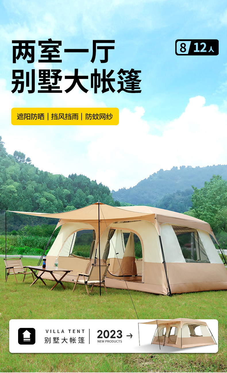 두꺼운 텐트 야외 캠핑 용품 완전 자동 캠핑 방수 접이식 휴대용 2실 1홀 빌라 텐트스토어 가기