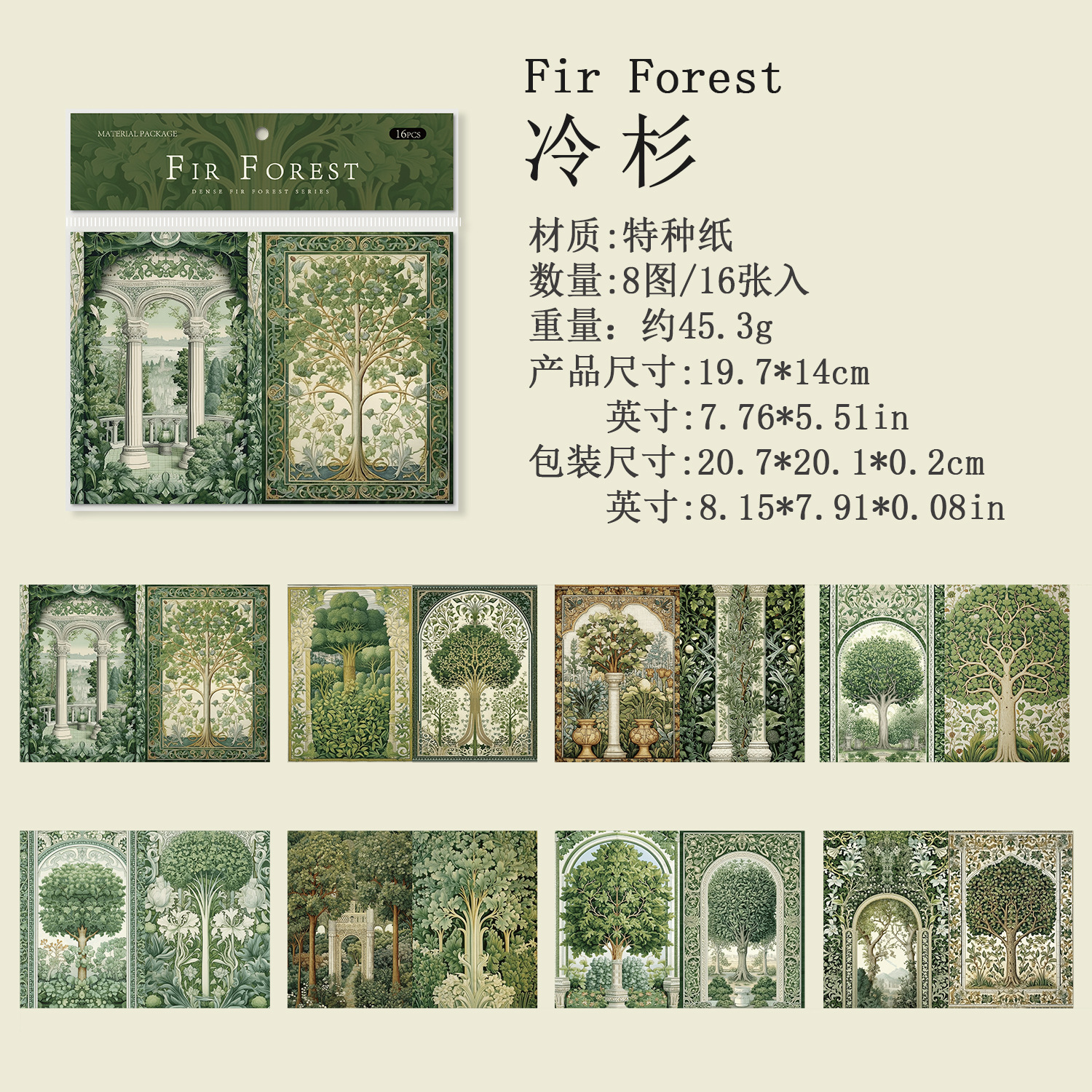 국경을 넘는 고대 숲 녹색 삼나무 울창한 숲 시리즈 복고풍 손 계정 대형 재료 종이 장식 콜라주 백킹 DIY스토어 가기