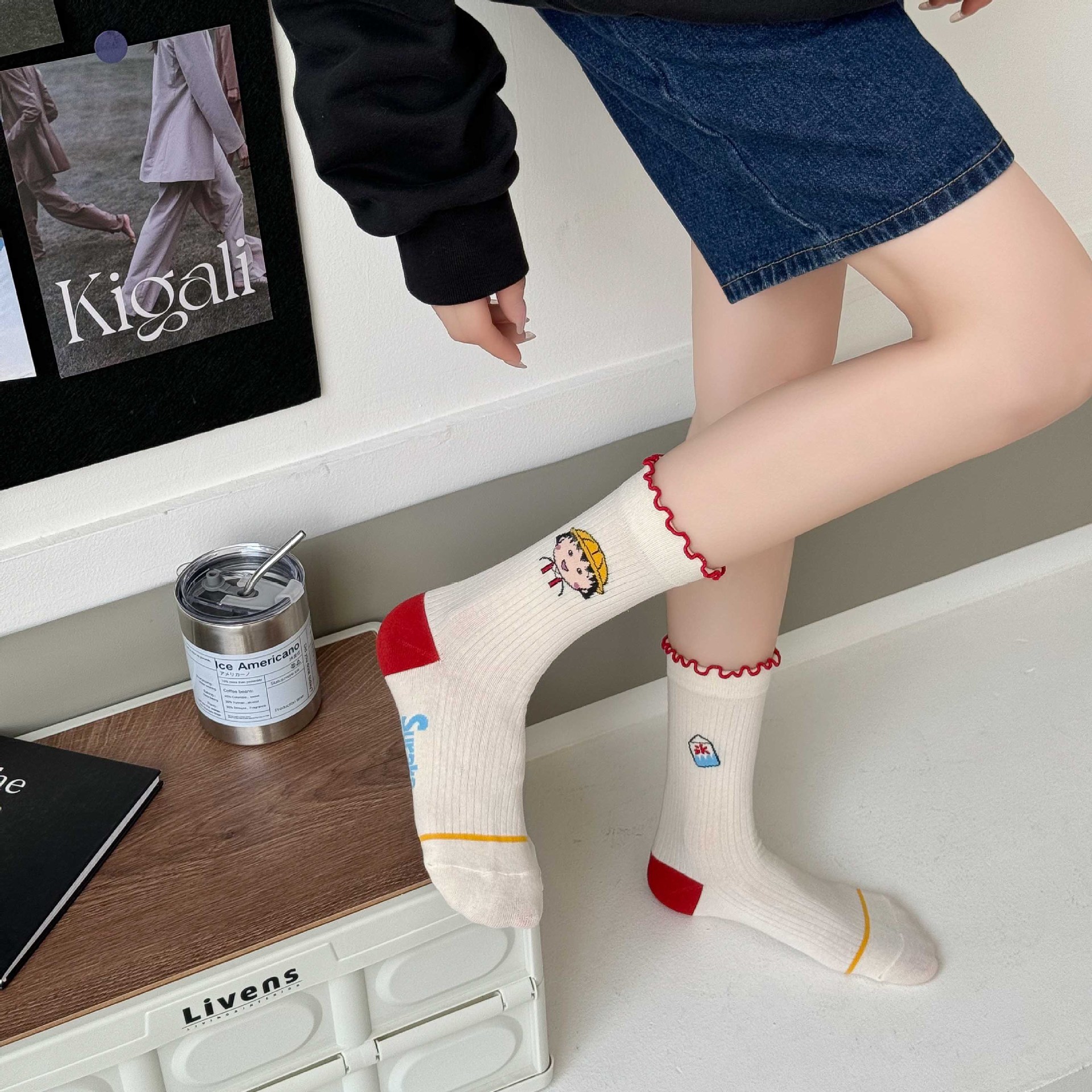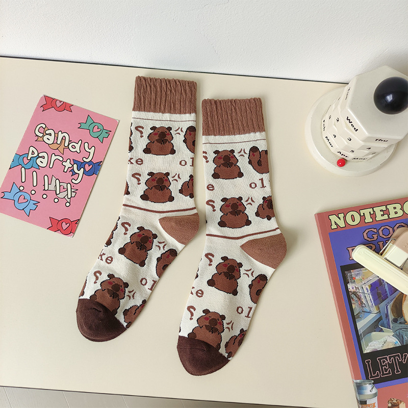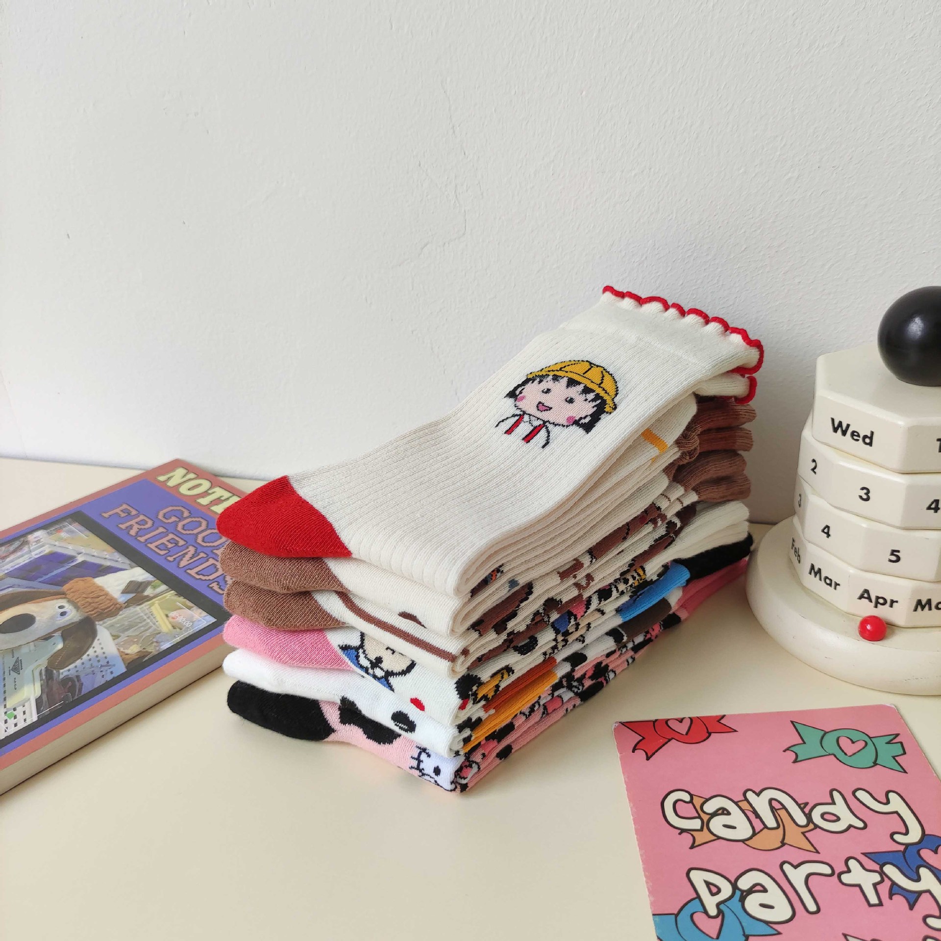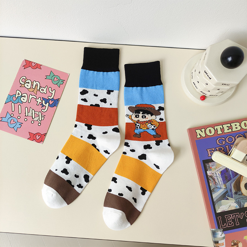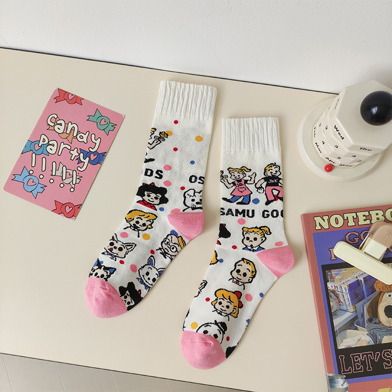 하라주쿠 스타일 일본 스타일 만화 중간 튜브 양말 랩 천 가을 양말 작은 새로운 중간 튜브 커플 간단한 Ins 스타킹스토어 가기