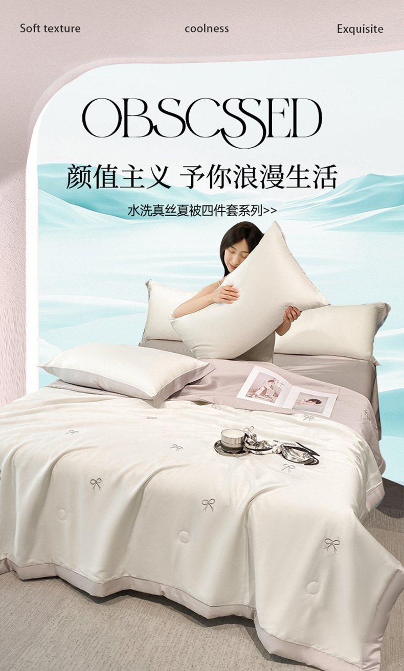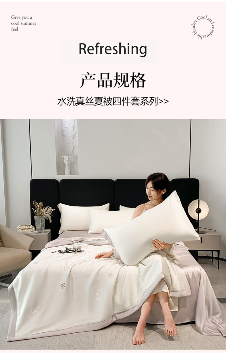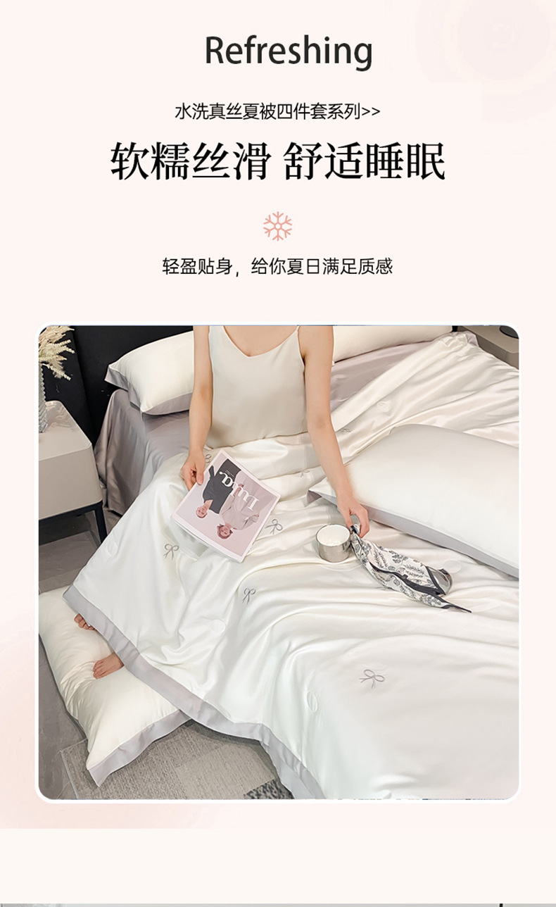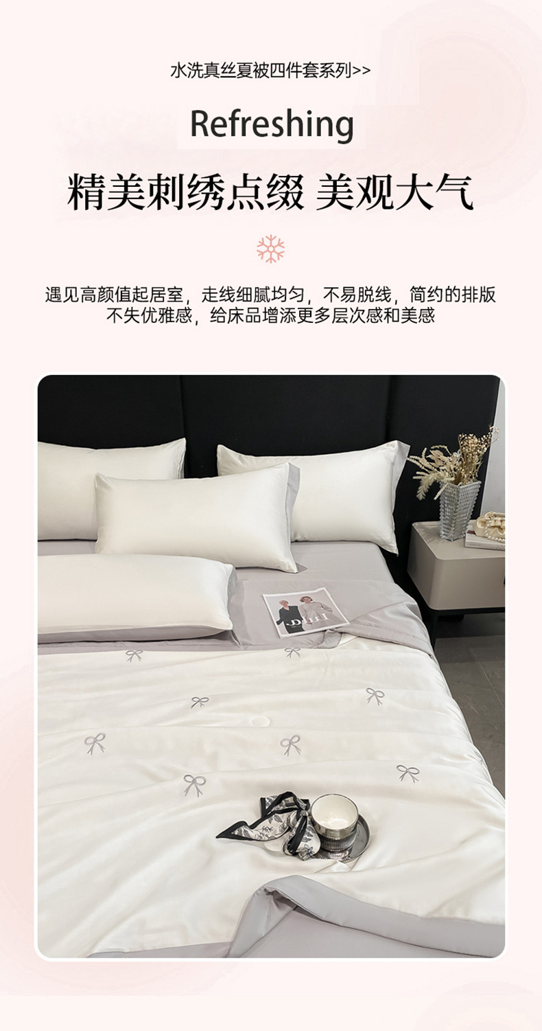 여름 세탁기로 세탁 가능한 얼음 실크 여름 시원한 이불 3~4장 세트 비실크 텐셀 기숙사 싱글 및 더블 얇은 에어컨 이불스토어 가기