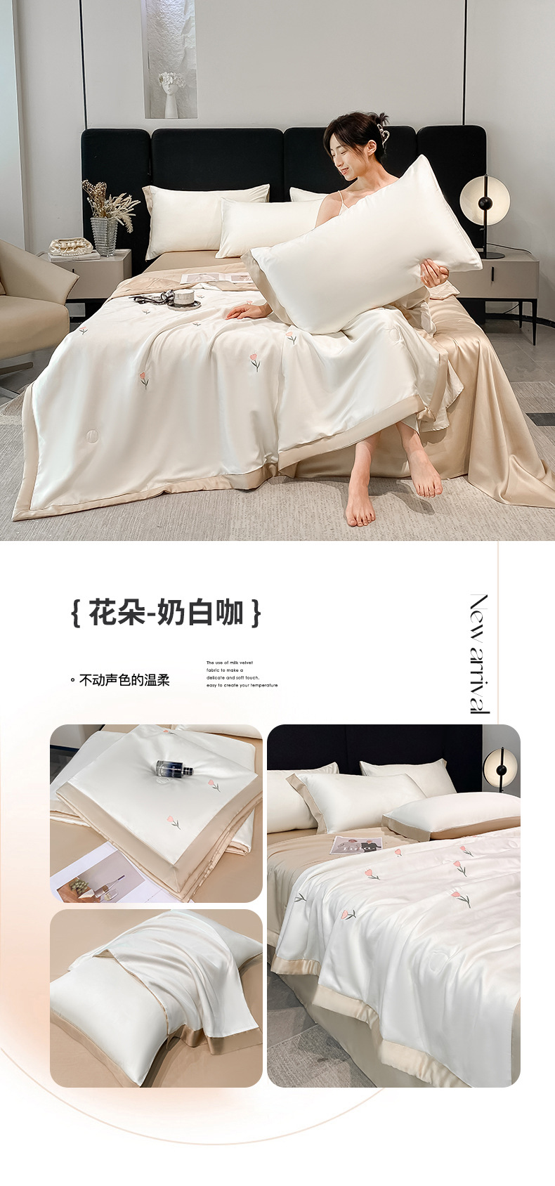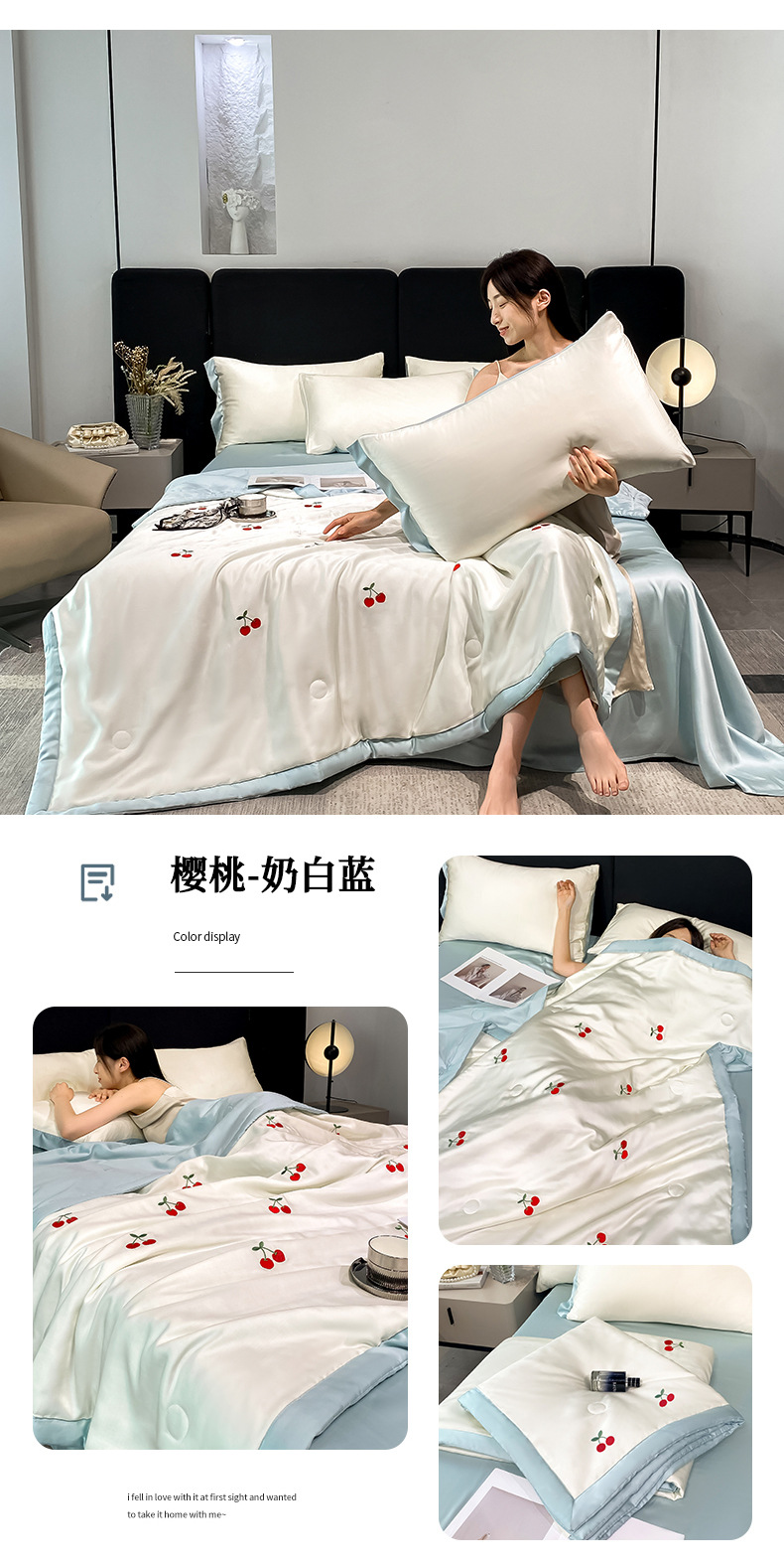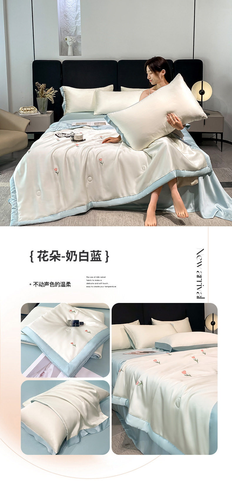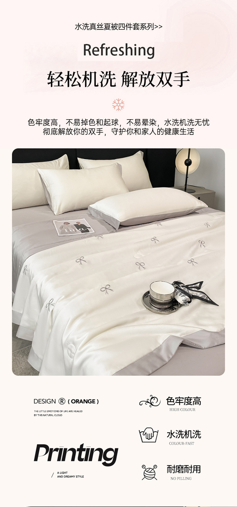 여름 세탁기로 세탁 가능한 얼음 실크 여름 시원한 이불 3~4장 세트 비실크 텐셀 기숙사 싱글 및 더블 얇은 에어컨 이불스토어 가기
