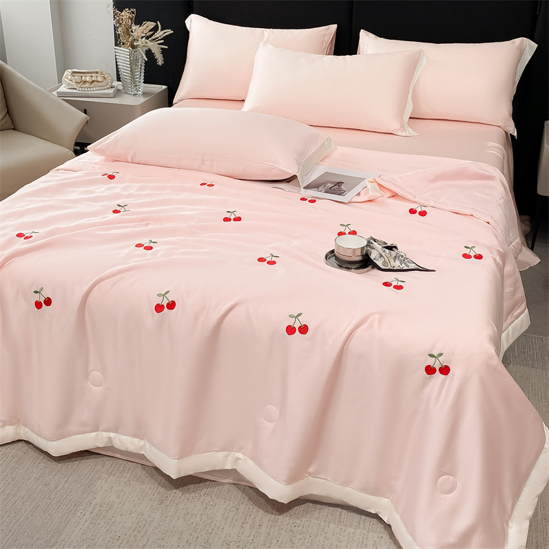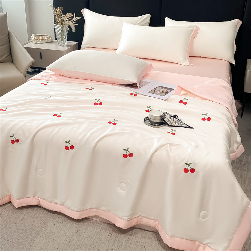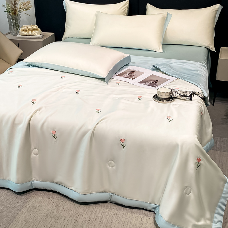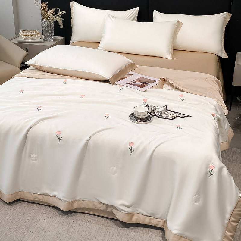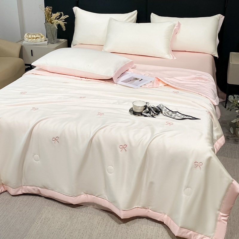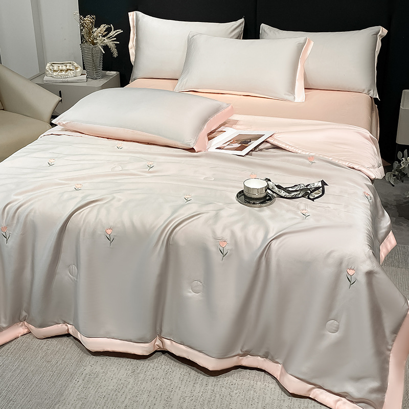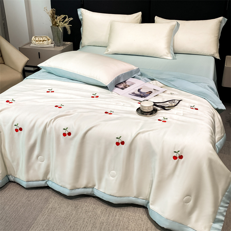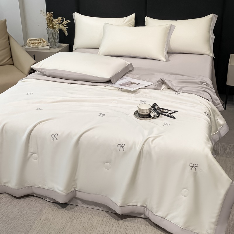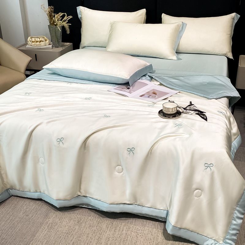 여름 세탁기로 세탁 가능한 얼음 실크 여름 시원한 이불 3~4장 세트 비실크 텐셀 기숙사 싱글 및 더블 얇은 에어컨 이불