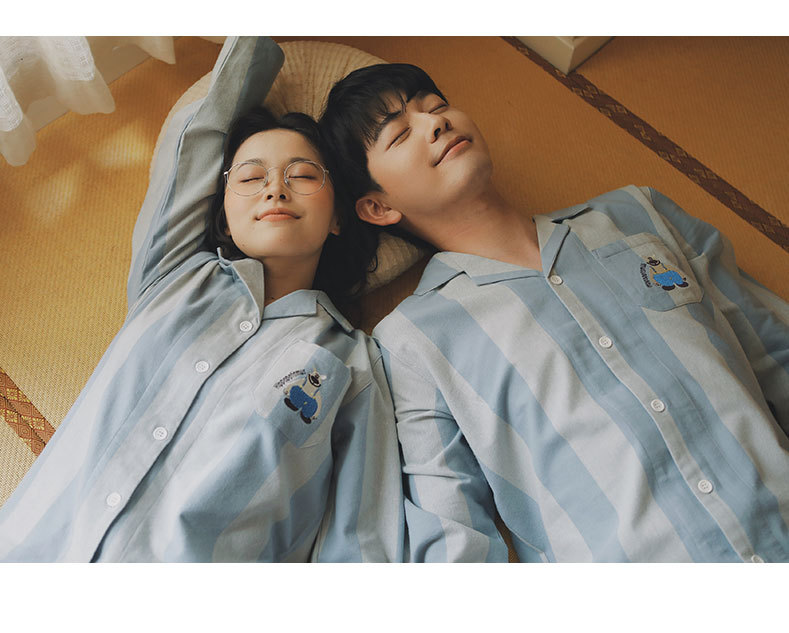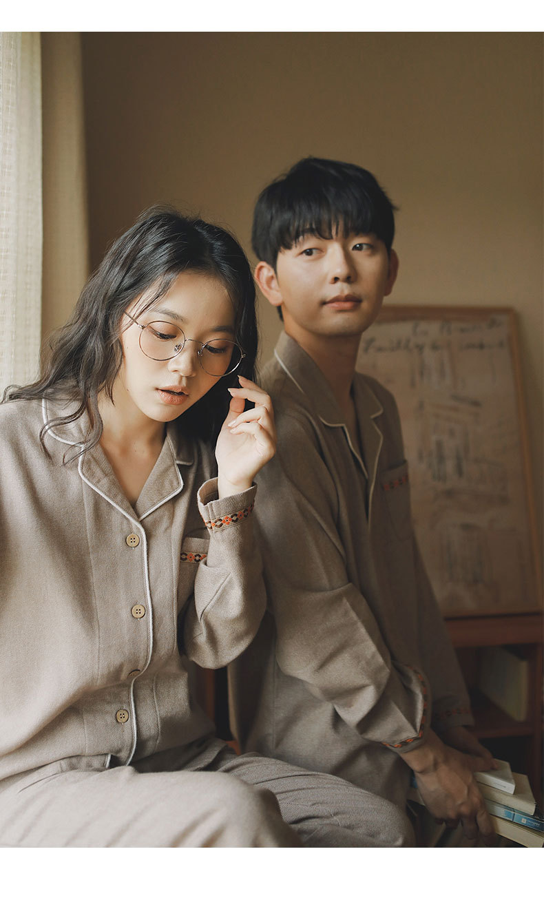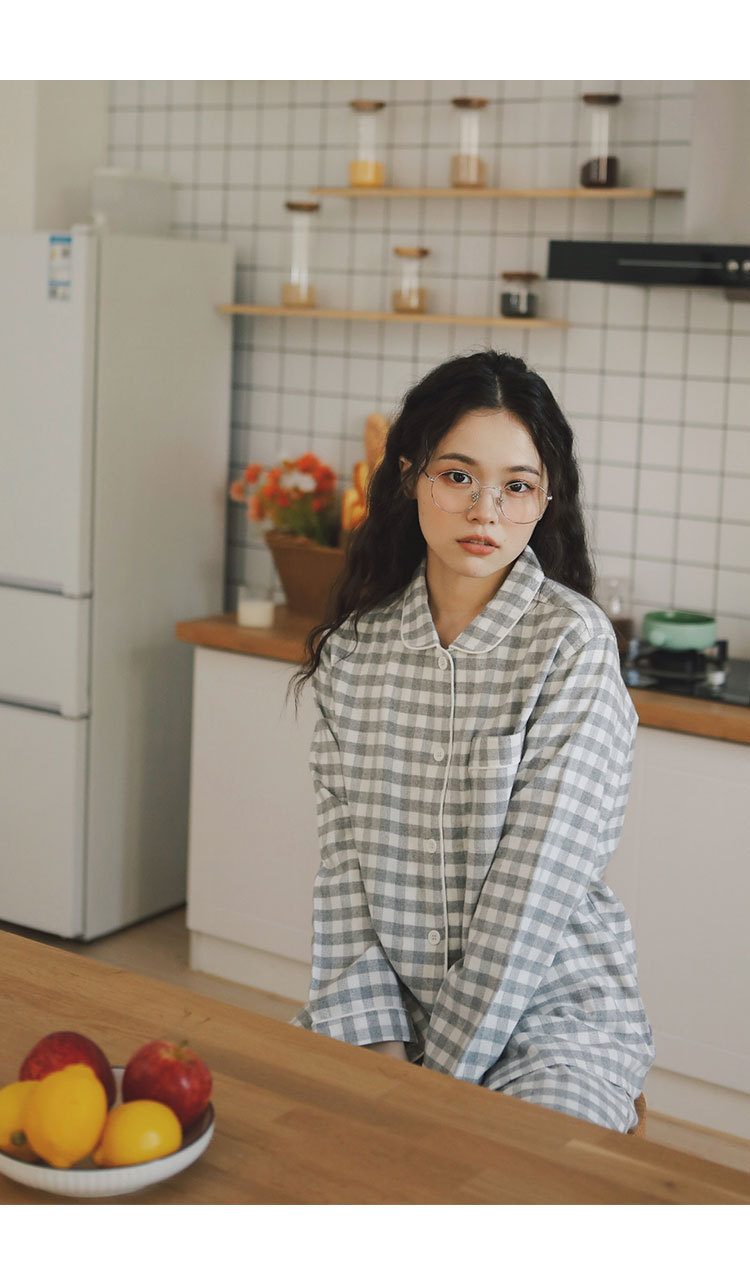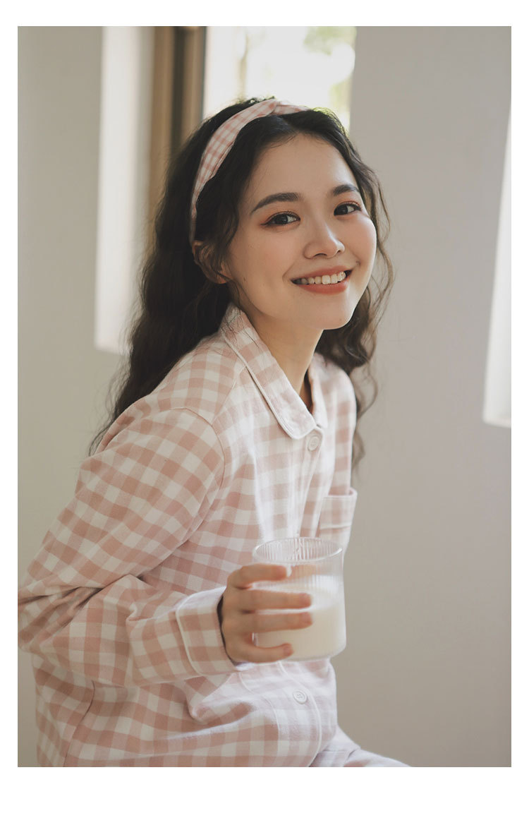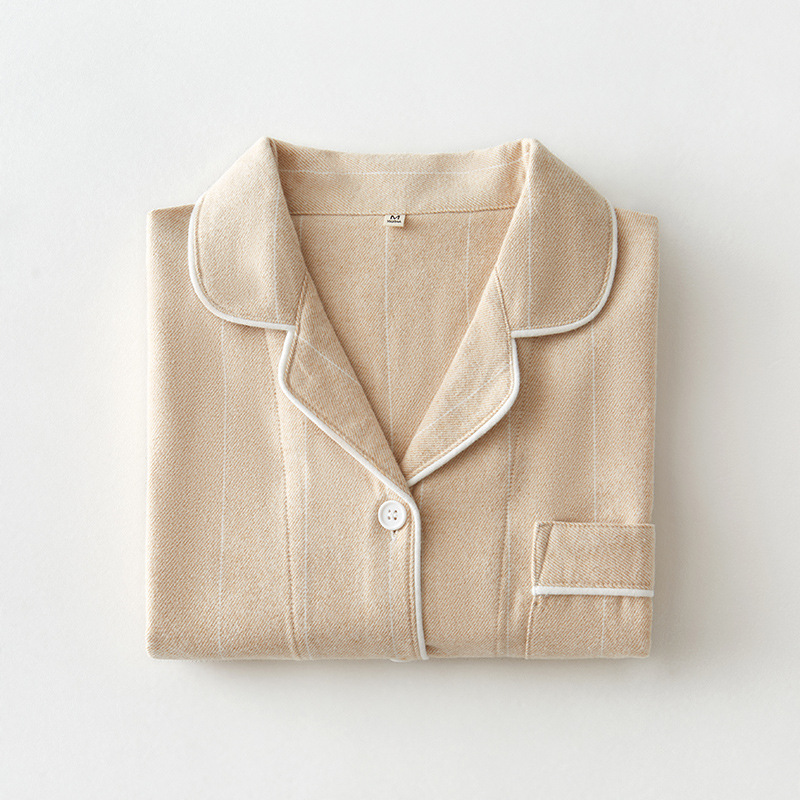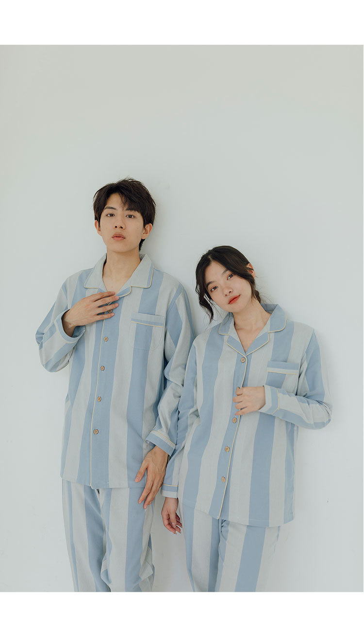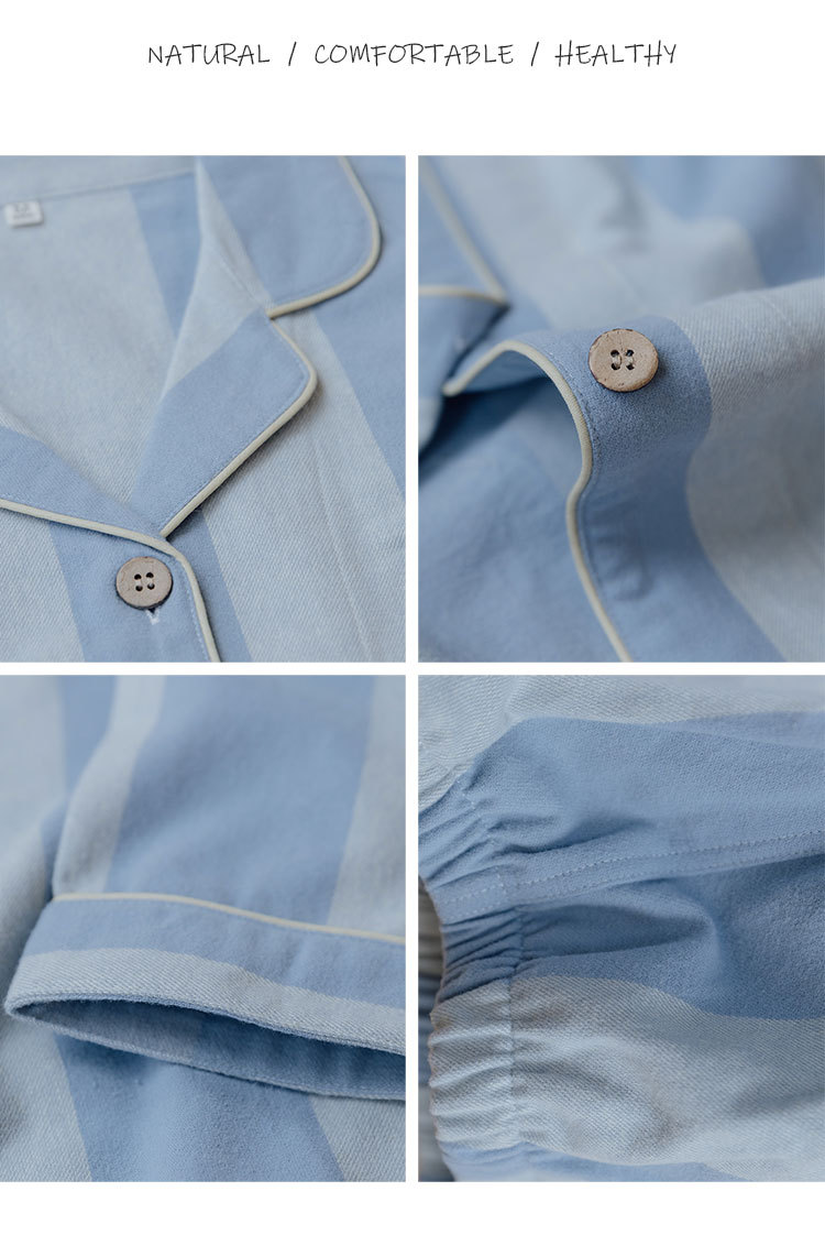 여성용 플란넬 커플 잠옷, 봄, 가을, 겨울, 면 스트라이프 체크 무늬, 프린트되지 않은 면 가정복 세트, 남성용스토어 가기