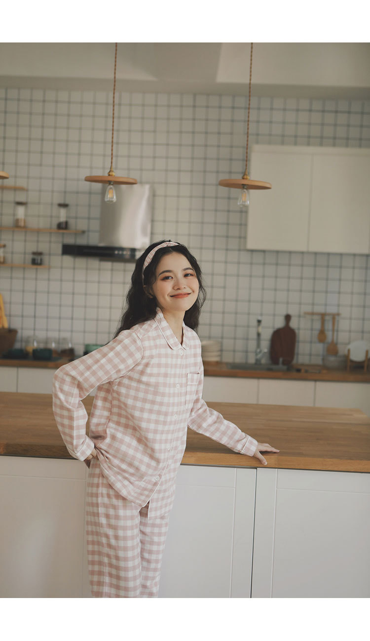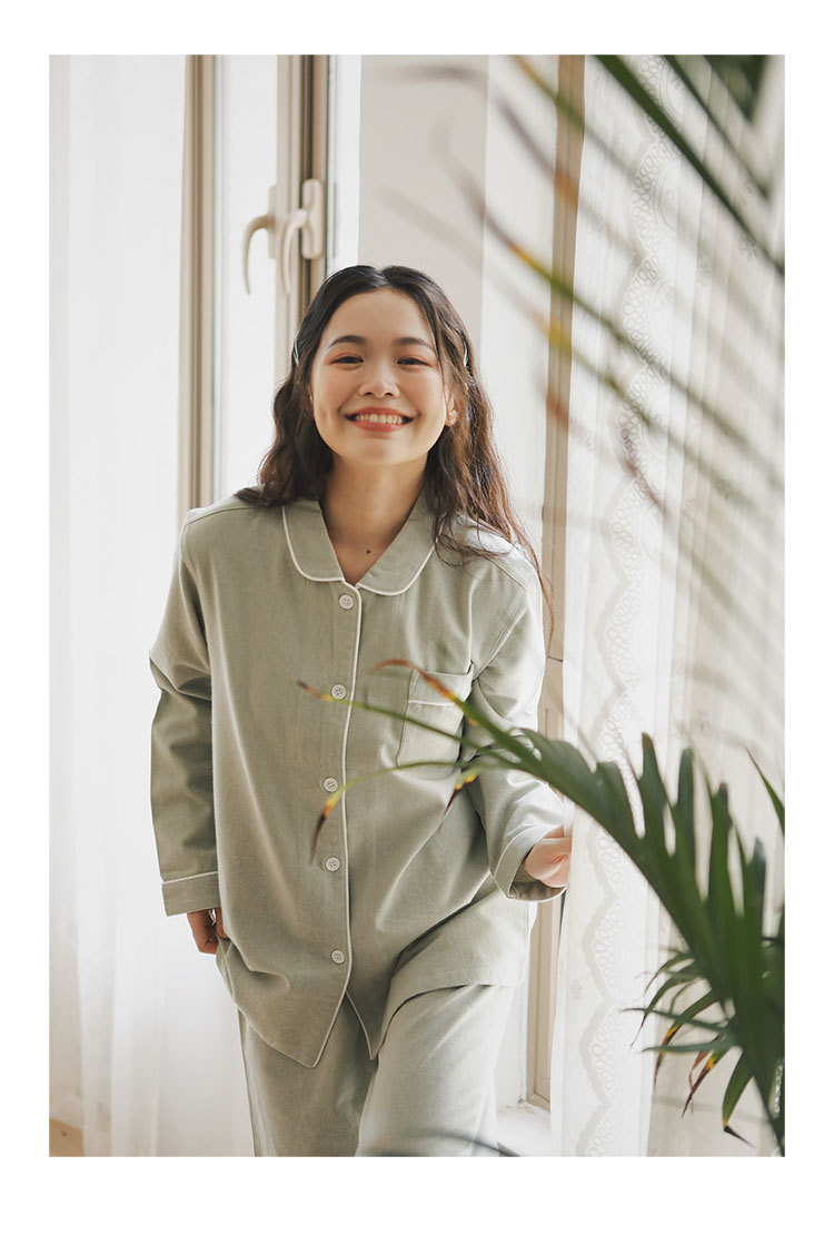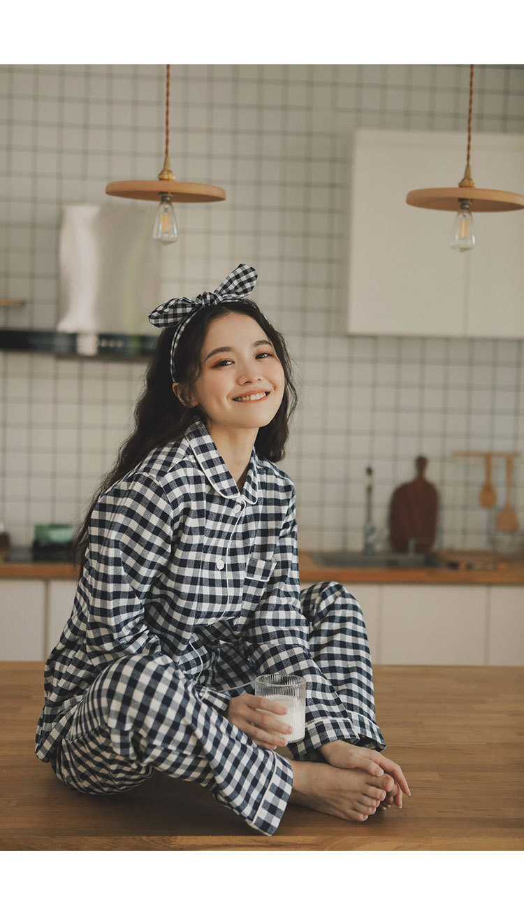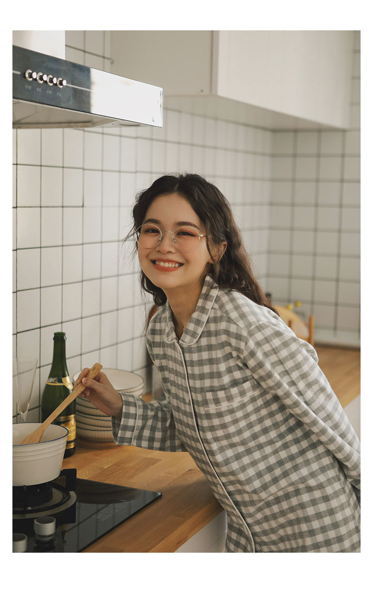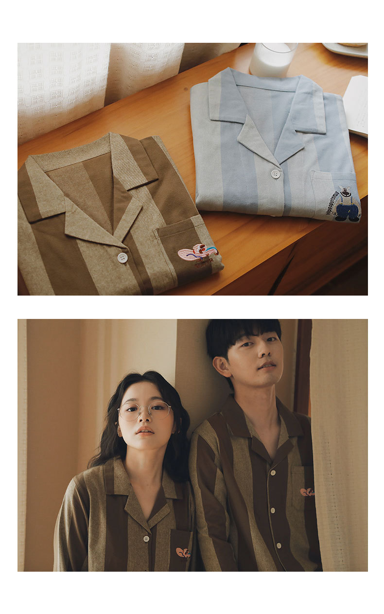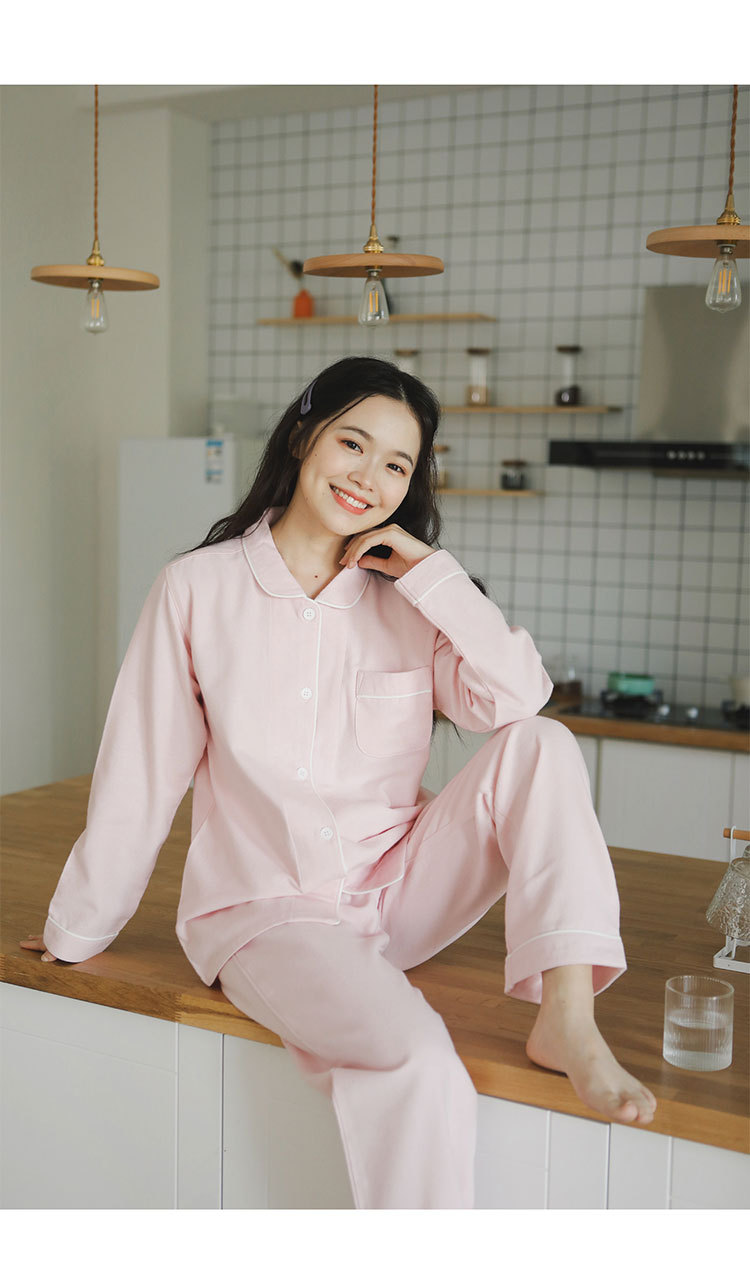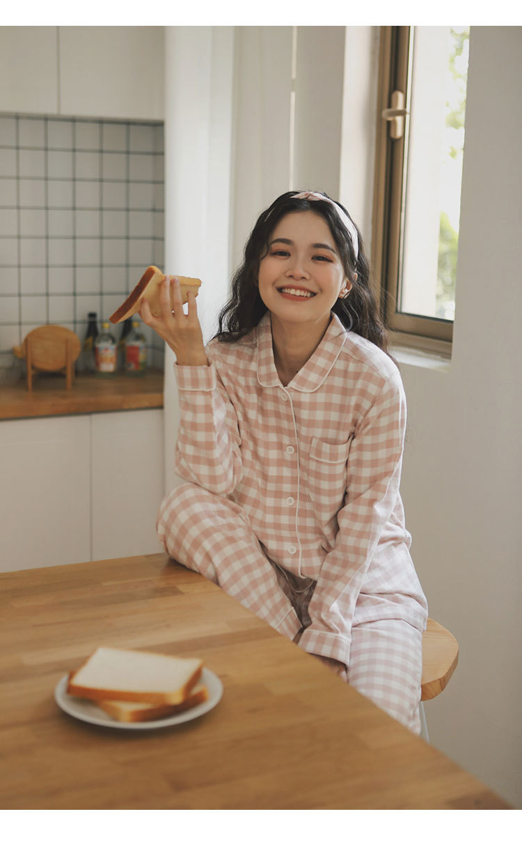 여성용 플란넬 커플 잠옷, 봄, 가을, 겨울, 면 스트라이프 체크 무늬, 프린트되지 않은 면 가정복 세트, 남성용스토어 가기