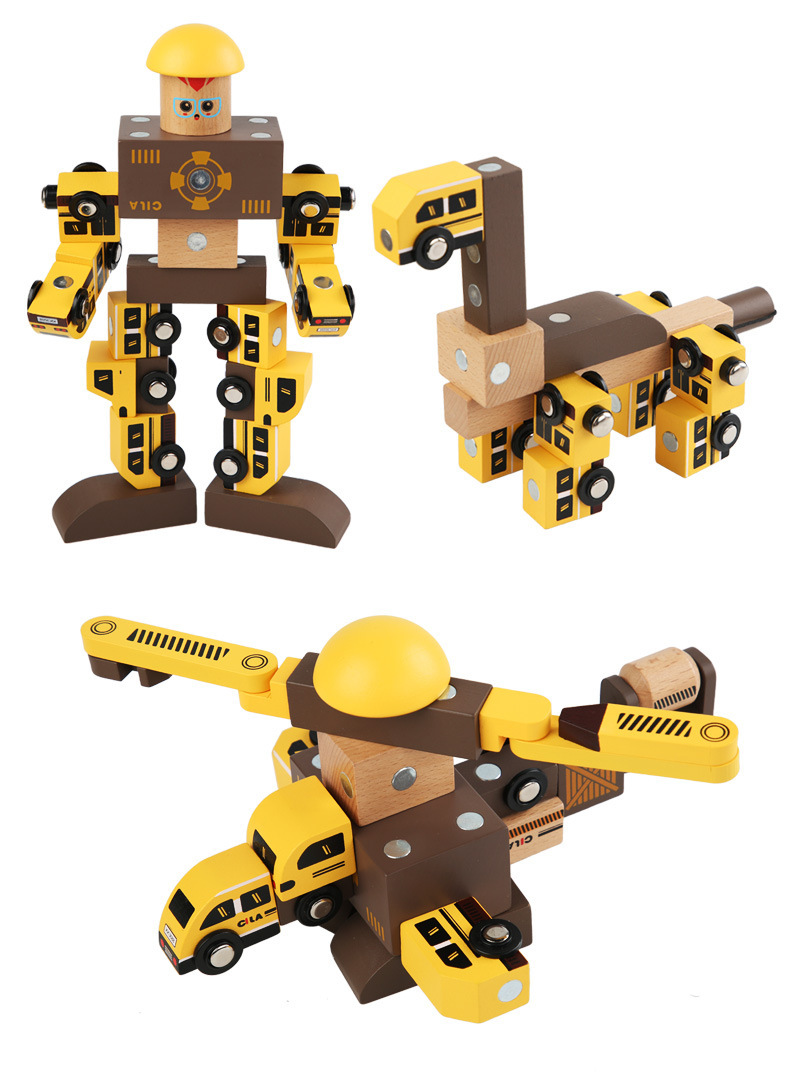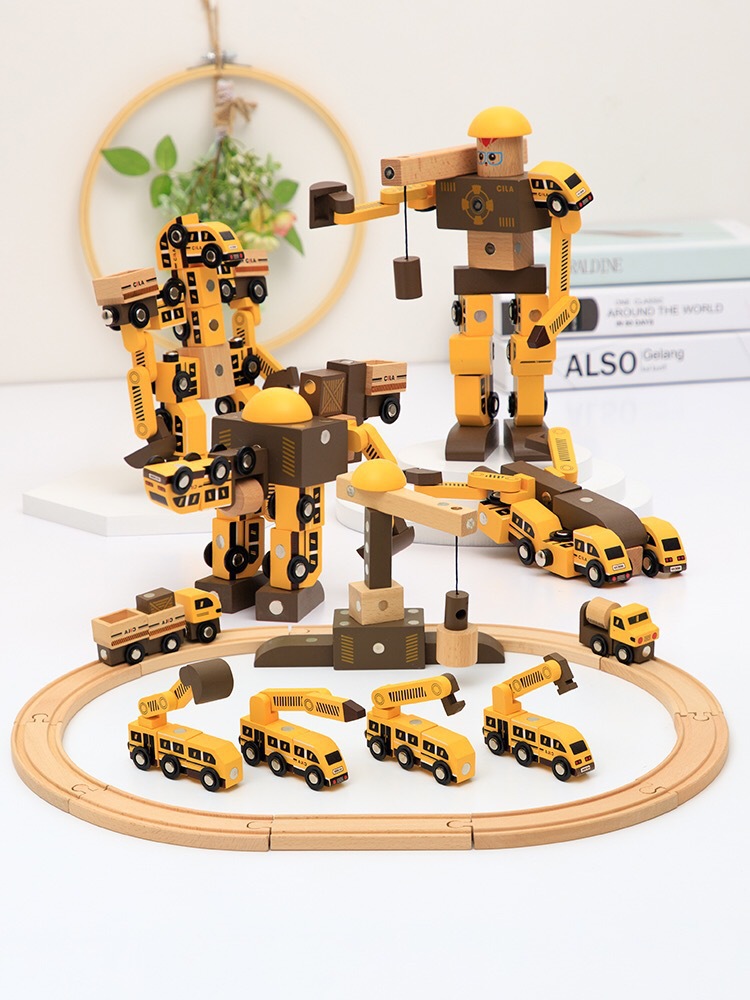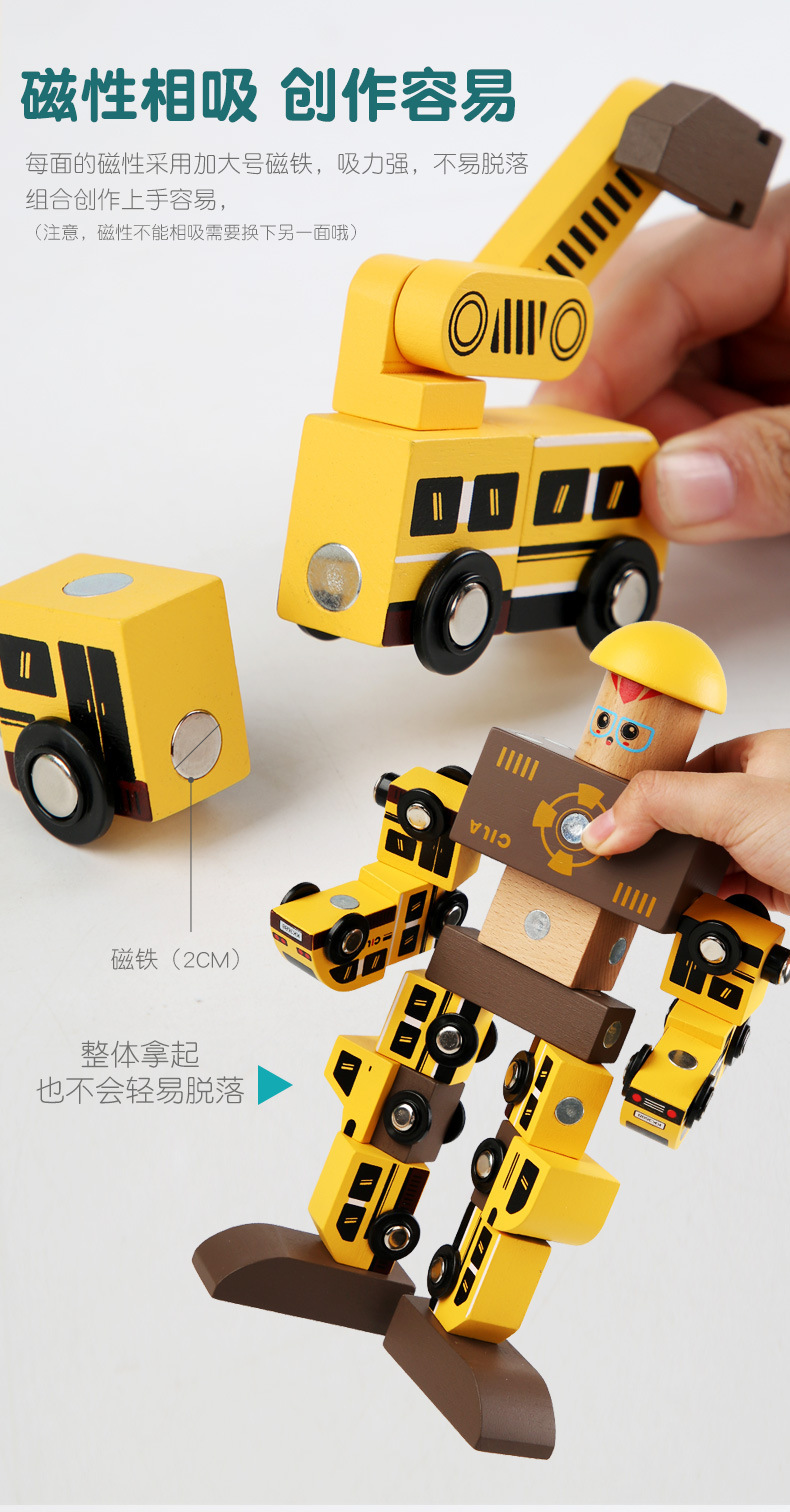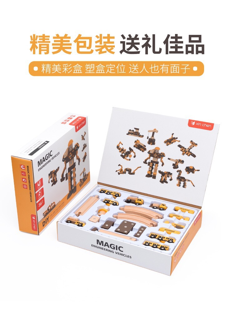 어린이 교육 장난감 조기 교육 목조 엔지니어링 차량 조립 트랙 로봇 크레인 DIY 크리 에이 티브 자기 빌딩 블록