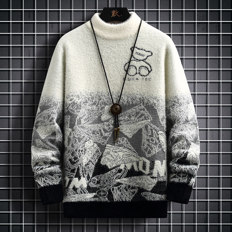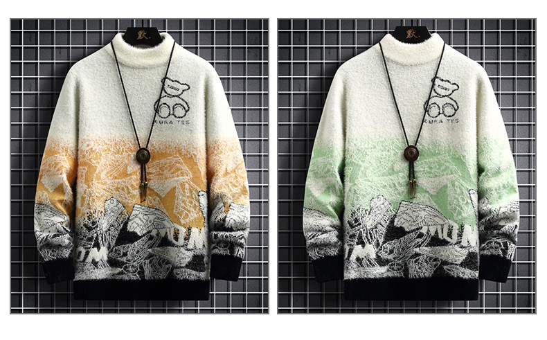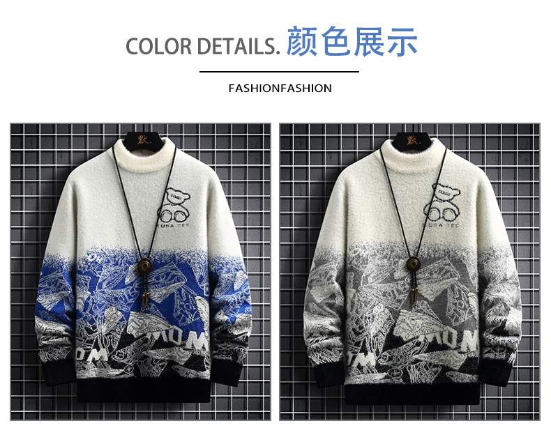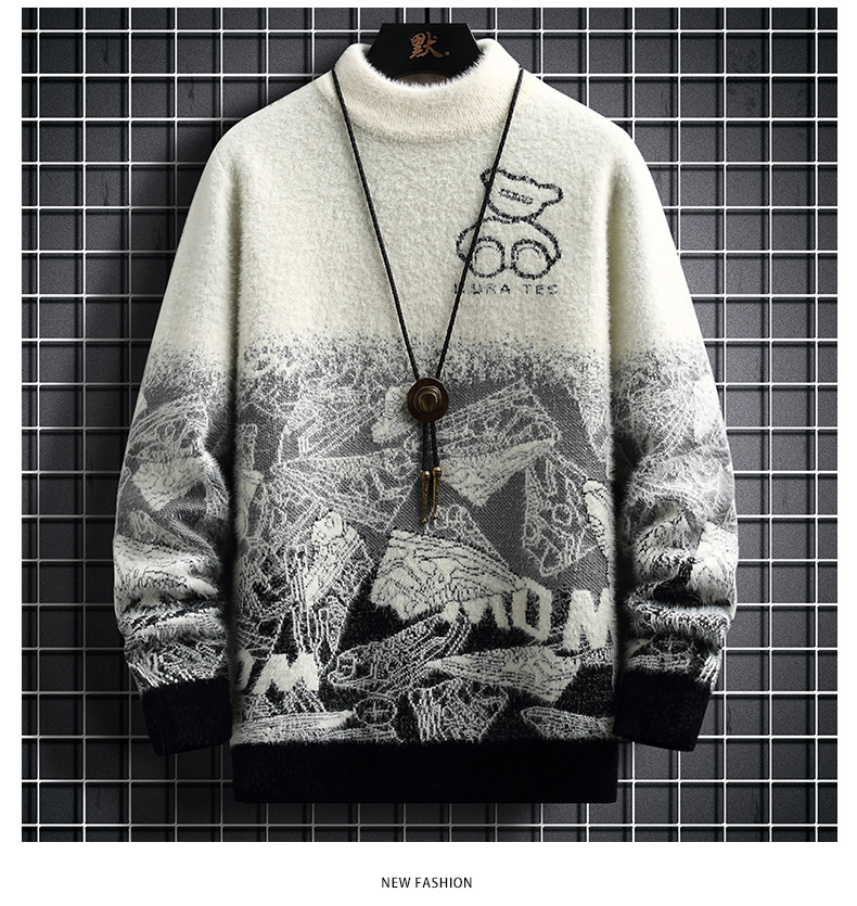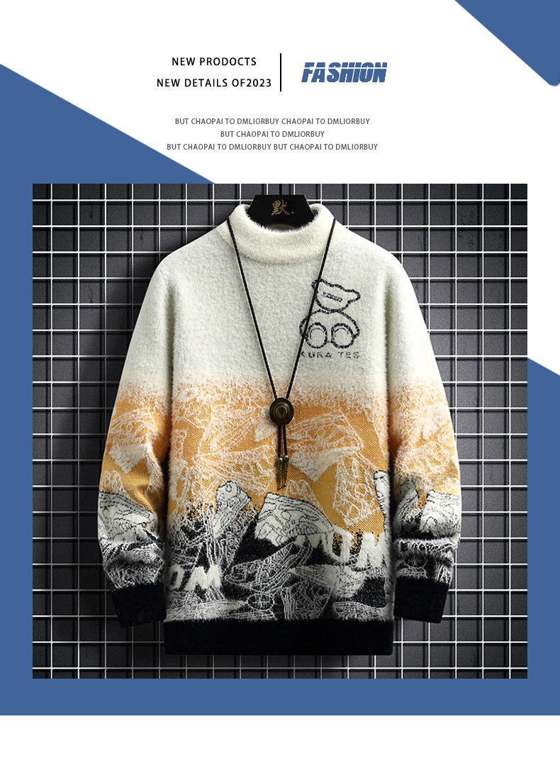 그라디언트 밍크 벨벳 스웨터 남성용 두꺼운 따뜻한 겨울 반 터틀넥 보텀 스웨터 트렌디 브랜드 남성용 라인 의류스토어 가기