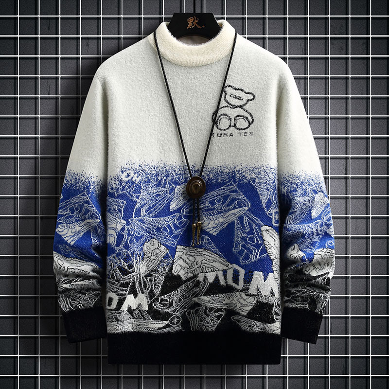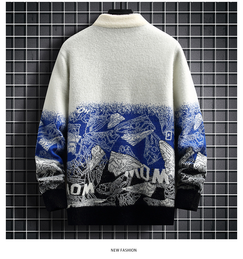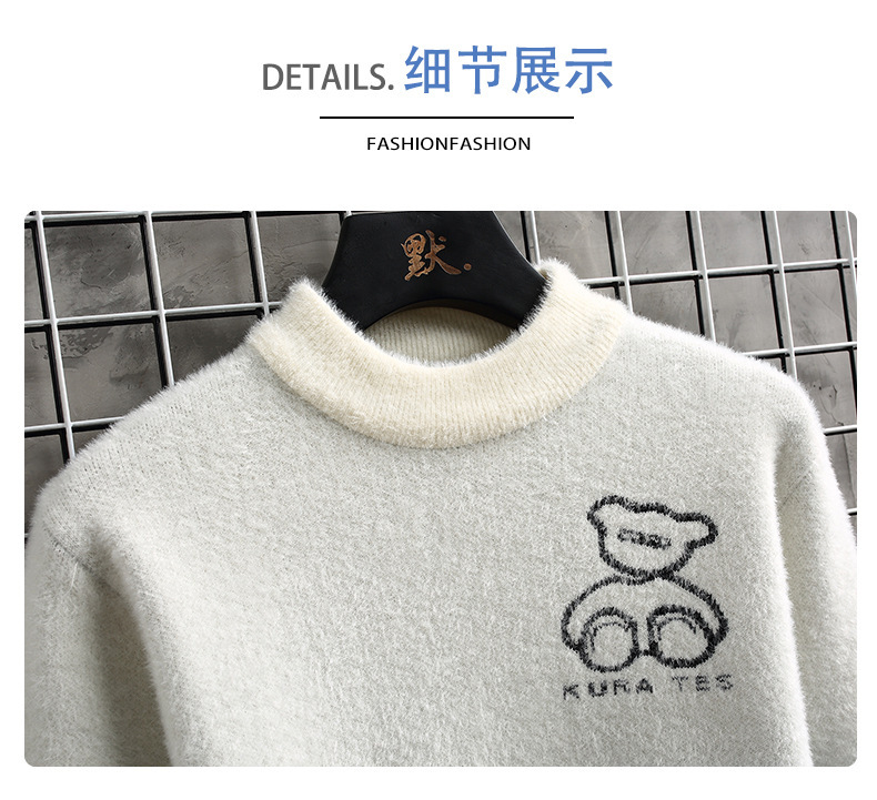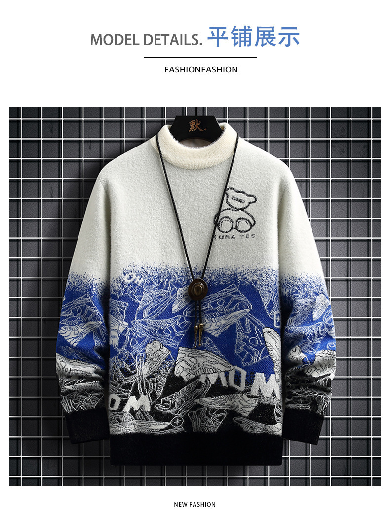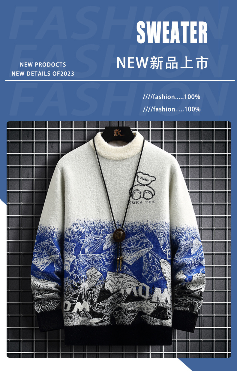 그라디언트 밍크 벨벳 스웨터 남성용 두꺼운 따뜻한 겨울 반 터틀넥 보텀 스웨터 트렌디 브랜드 남성용 라인 의류스토어 가기