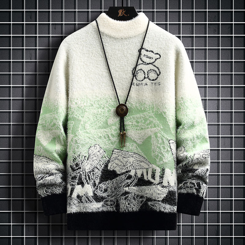 그라디언트 밍크 벨벳 스웨터 남성용 두꺼운 따뜻한 겨울 반 터틀넥 보텀 스웨터 트렌디 브랜드 남성용 라인 의류
