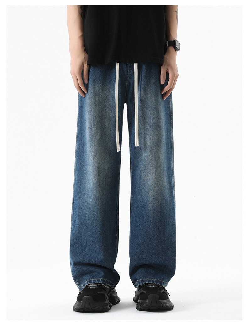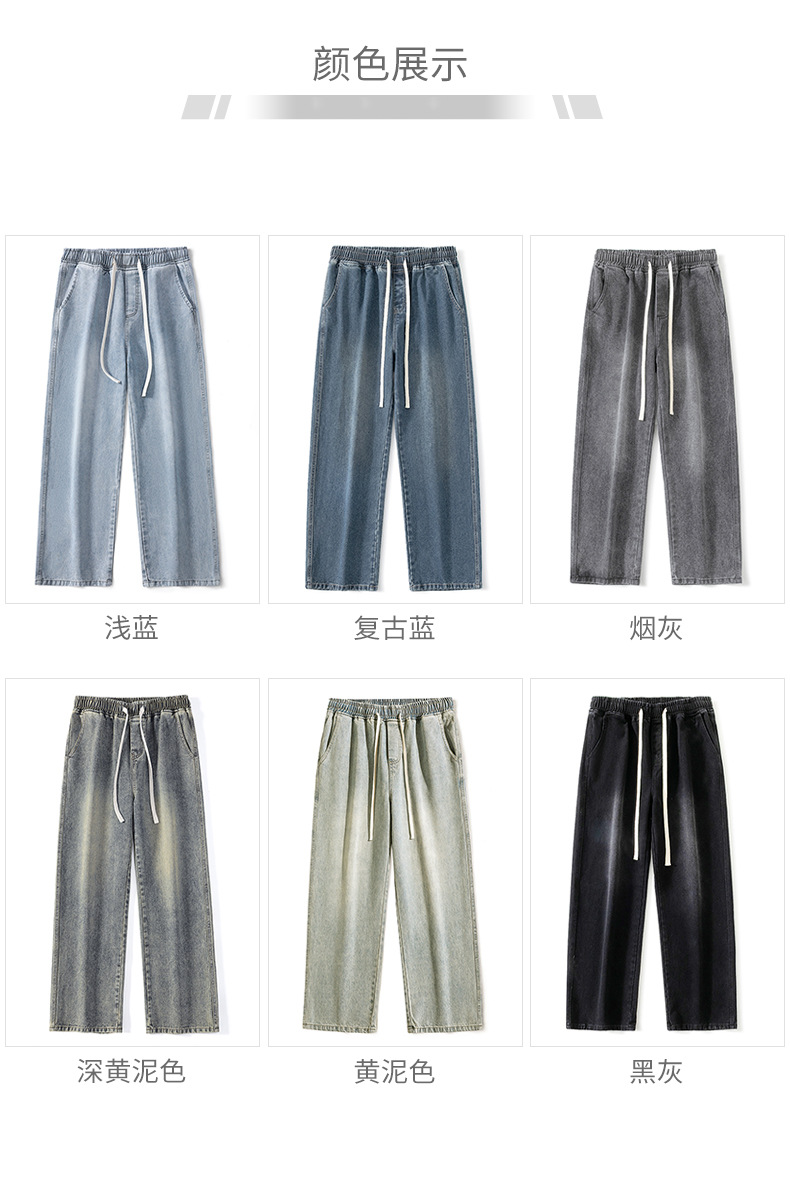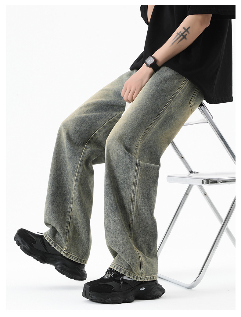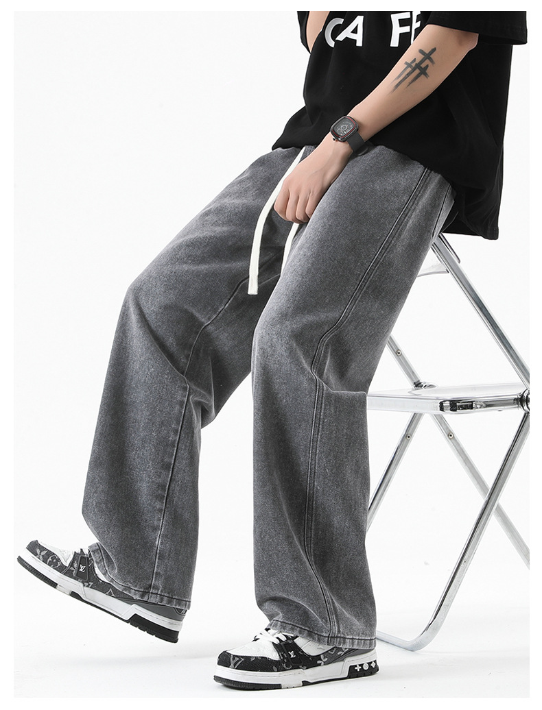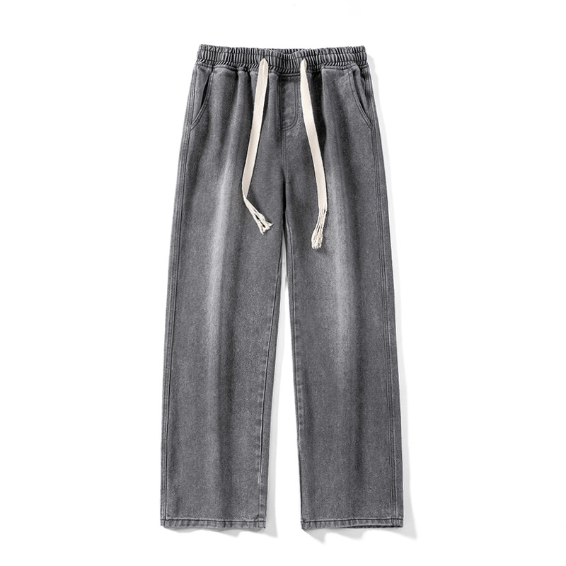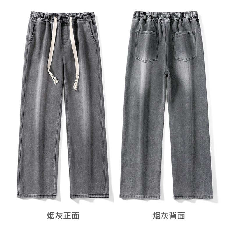 무추 남성복∣후리스 안감 두꺼운 미국식 하이 스트리트 레트로 워싱 데님 팬츠 남성 트렌디 브랜드 루즈핏 스트레이트 와이드 팬츠스토어 가기