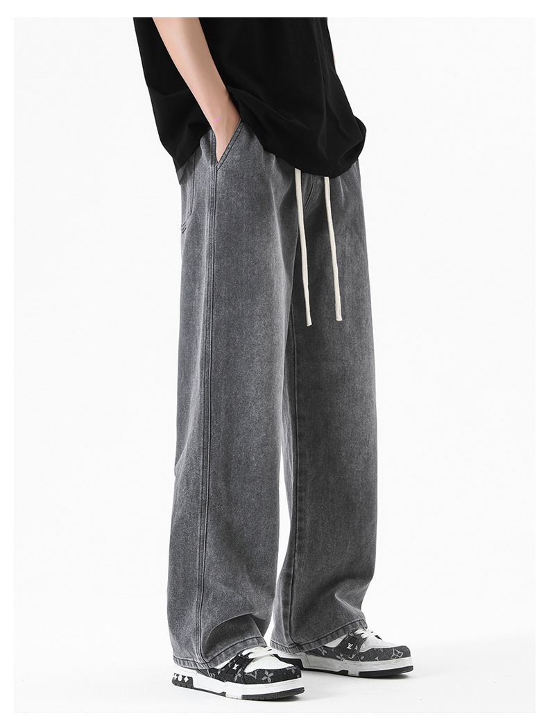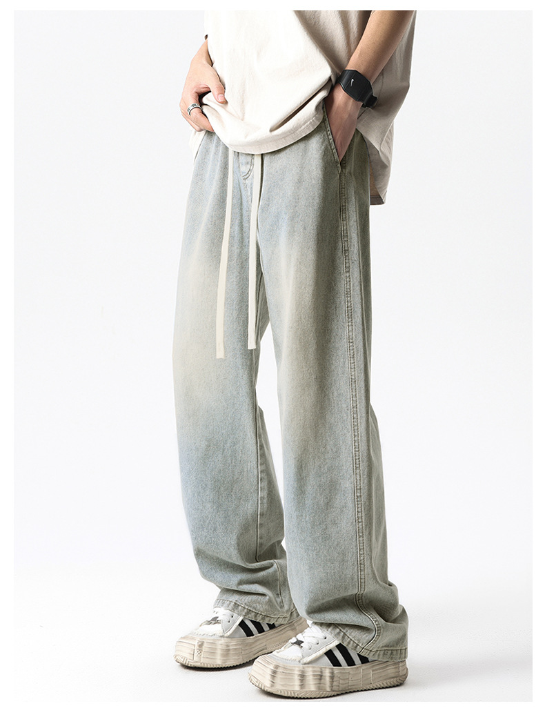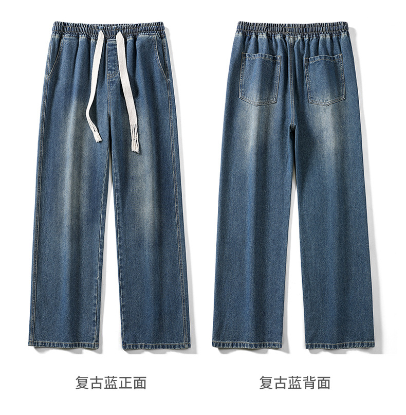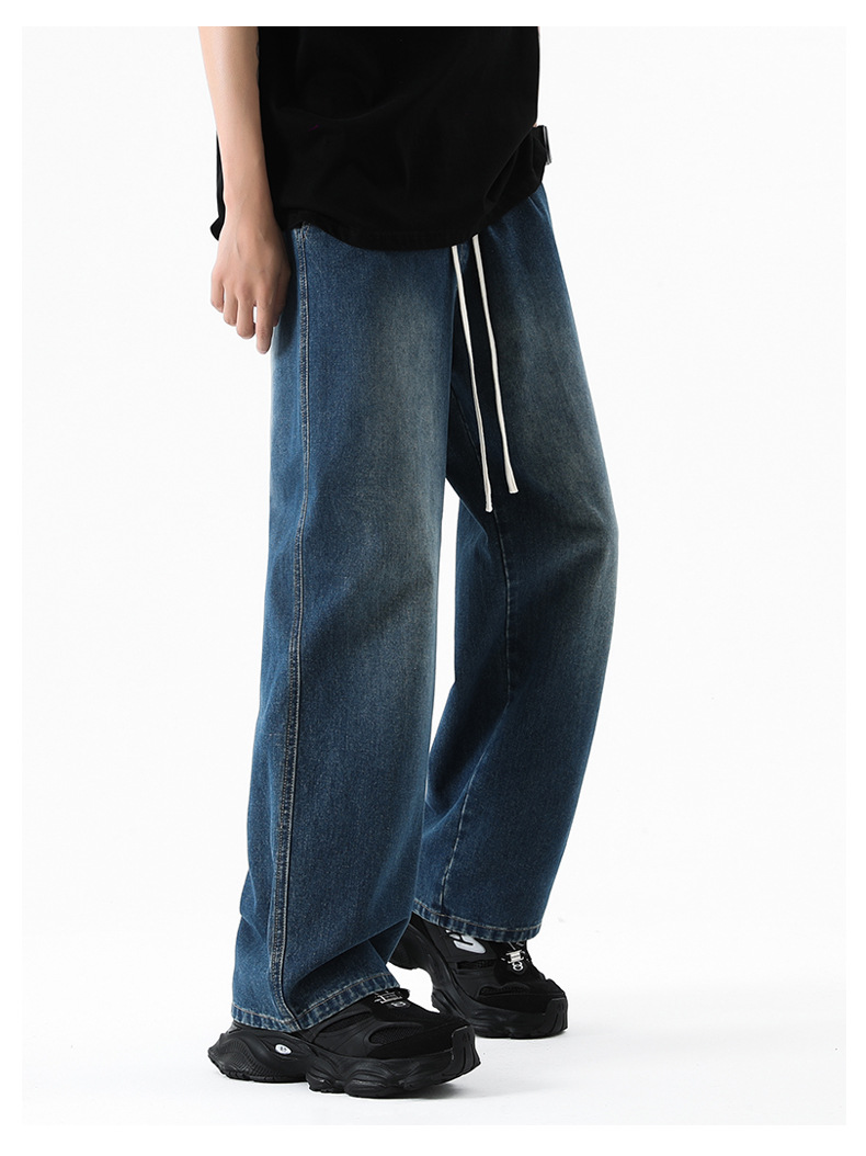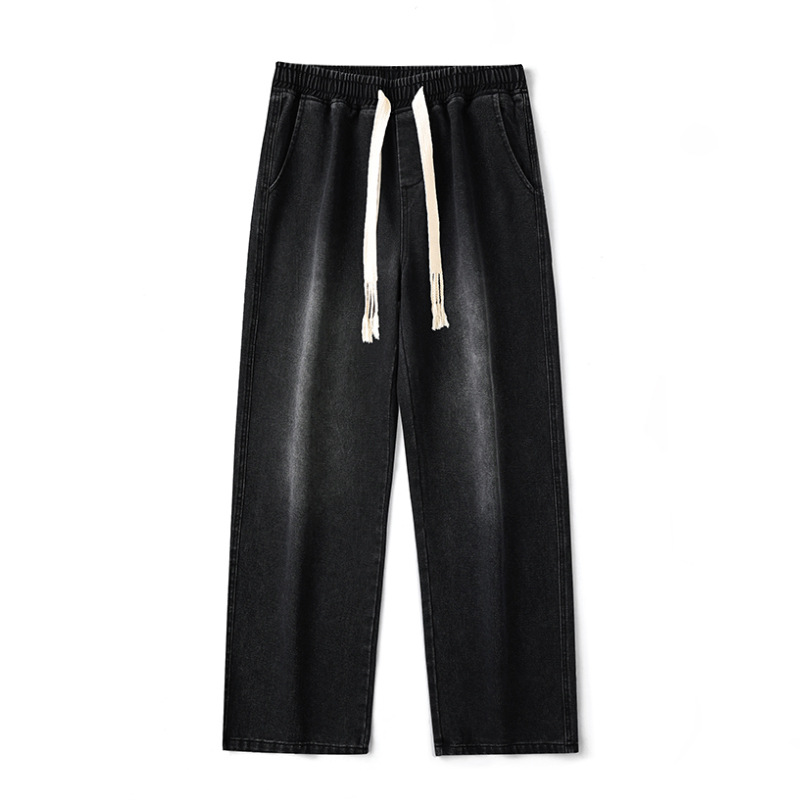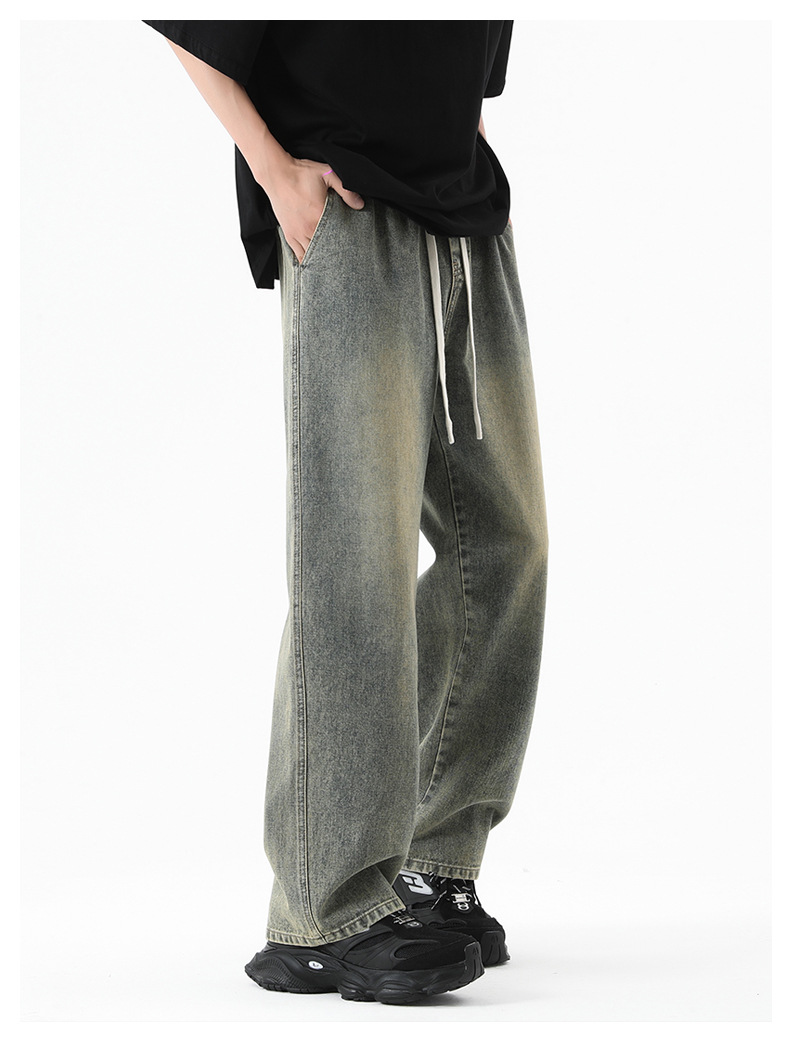 무추 남성복∣후리스 안감 두꺼운 미국식 하이 스트리트 레트로 워싱 데님 팬츠 남성 트렌디 브랜드 루즈핏 스트레이트 와이드 팬츠스토어 가기