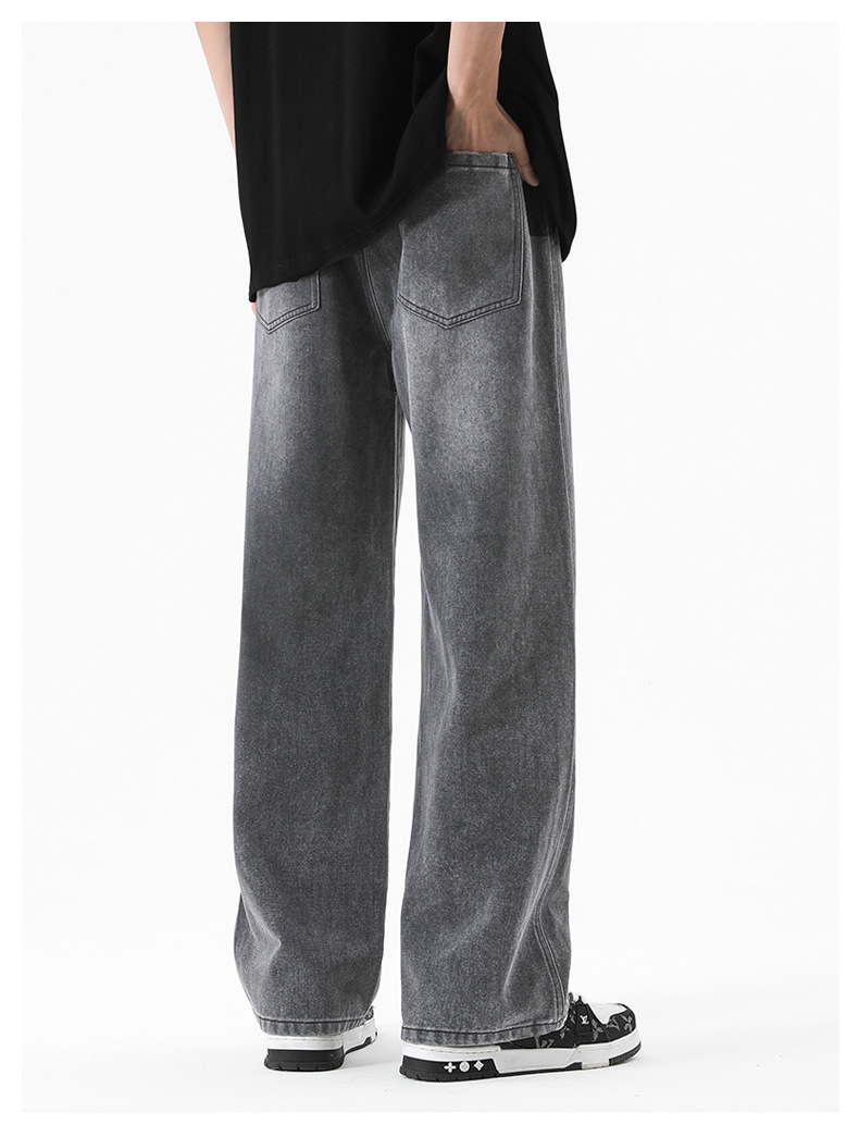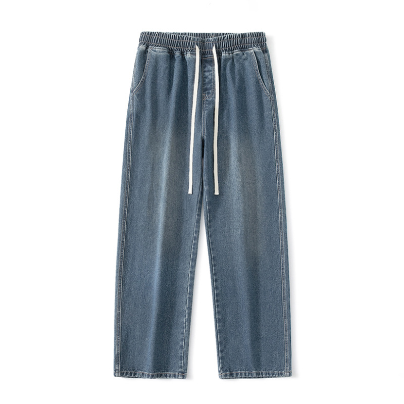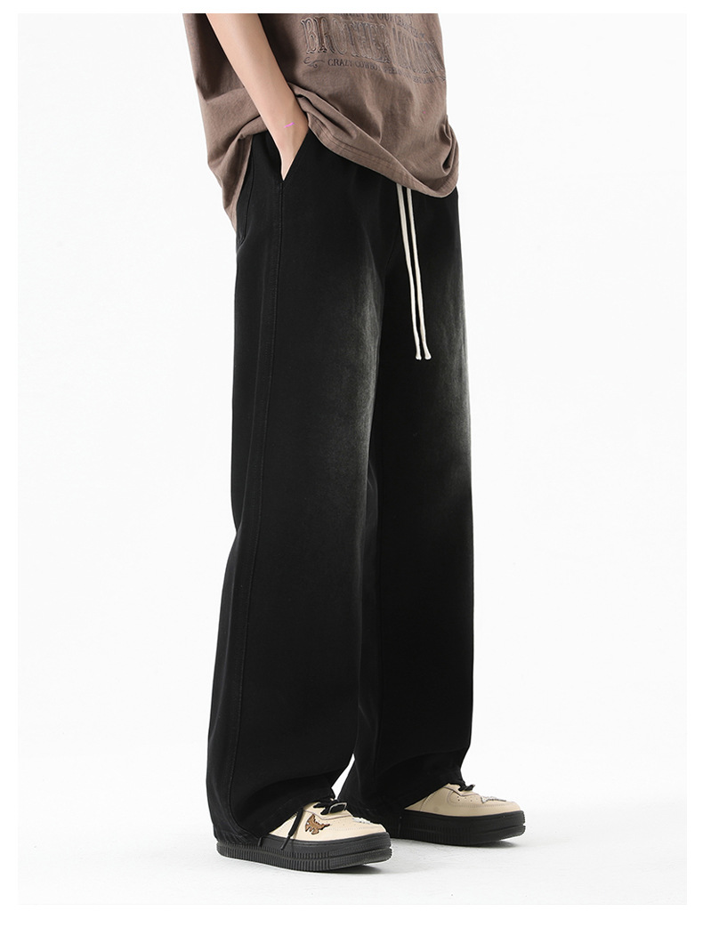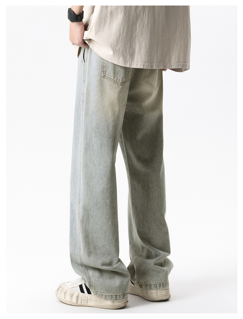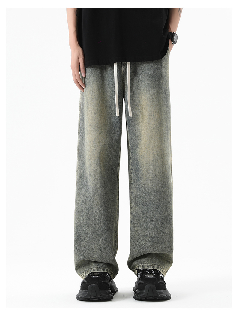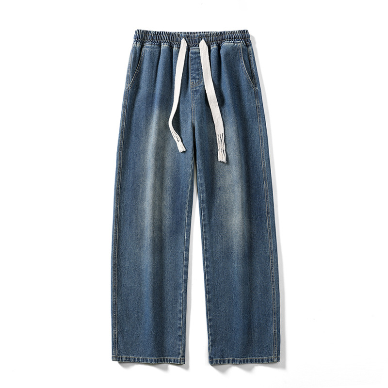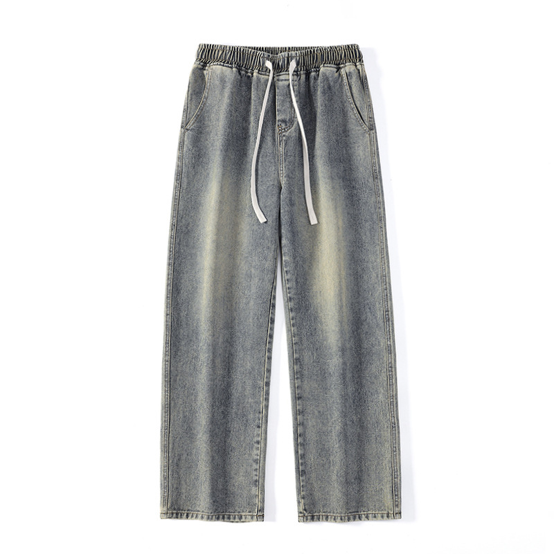 무추 남성복∣후리스 안감 두꺼운 미국식 하이 스트리트 레트로 워싱 데님 팬츠 남성 트렌디 브랜드 루즈핏 스트레이트 와이드 팬츠스토어 가기