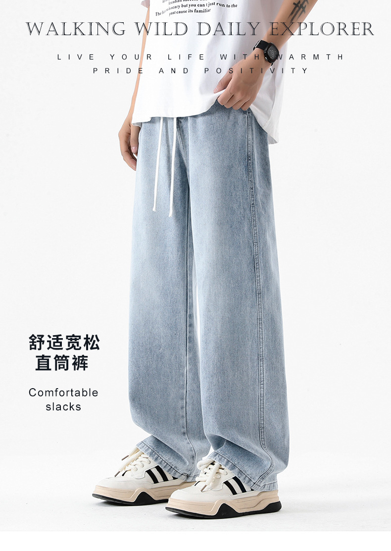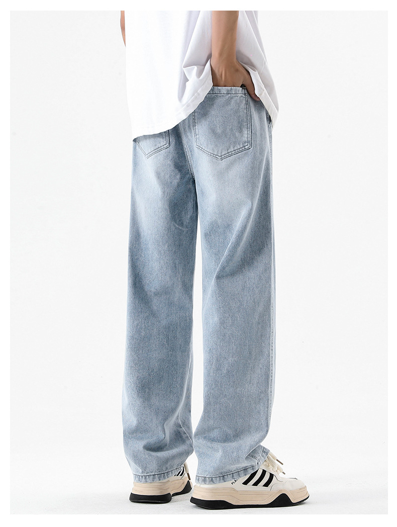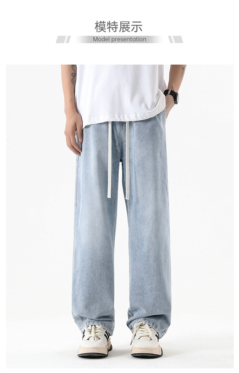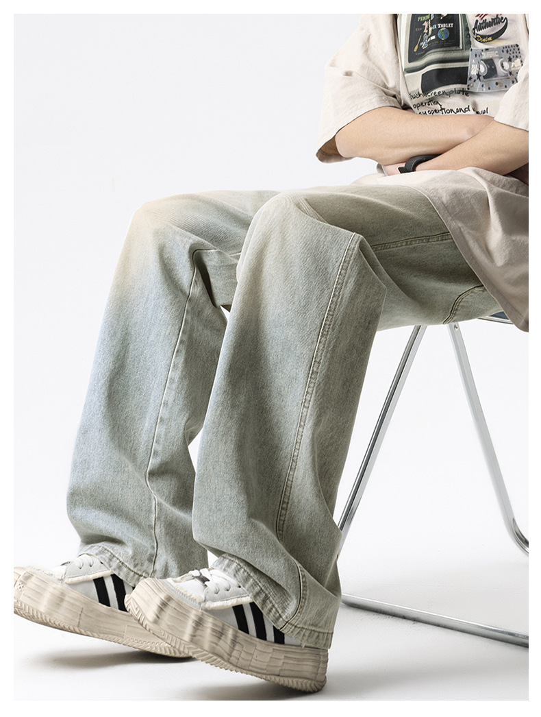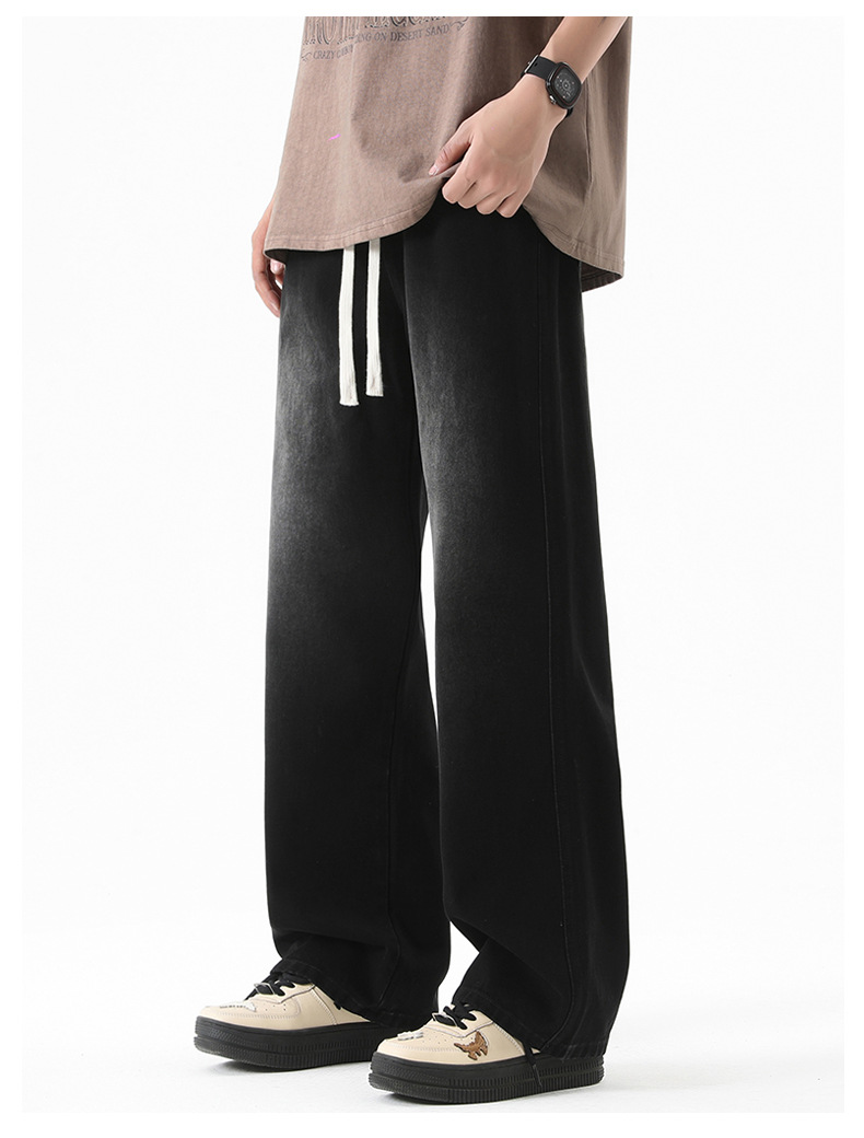 무추 남성복∣후리스 안감 두꺼운 미국식 하이 스트리트 레트로 워싱 데님 팬츠 남성 트렌디 브랜드 루즈핏 스트레이트 와이드 팬츠스토어 가기