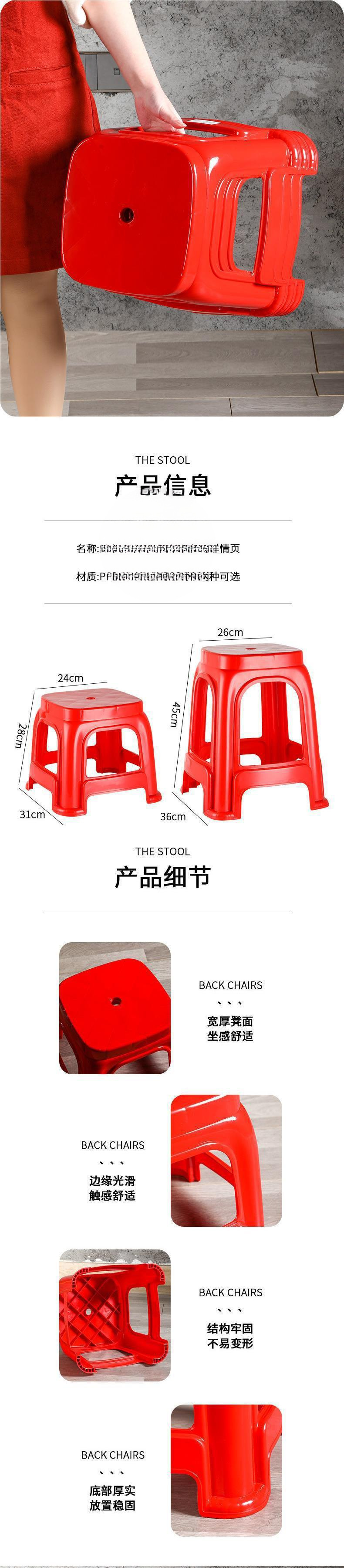 의자 벤치 플라스틱 의자 가정용 높은 의자 광장 의자 도매 빨간 두꺼운 성인 식품 플라스틱 의자
