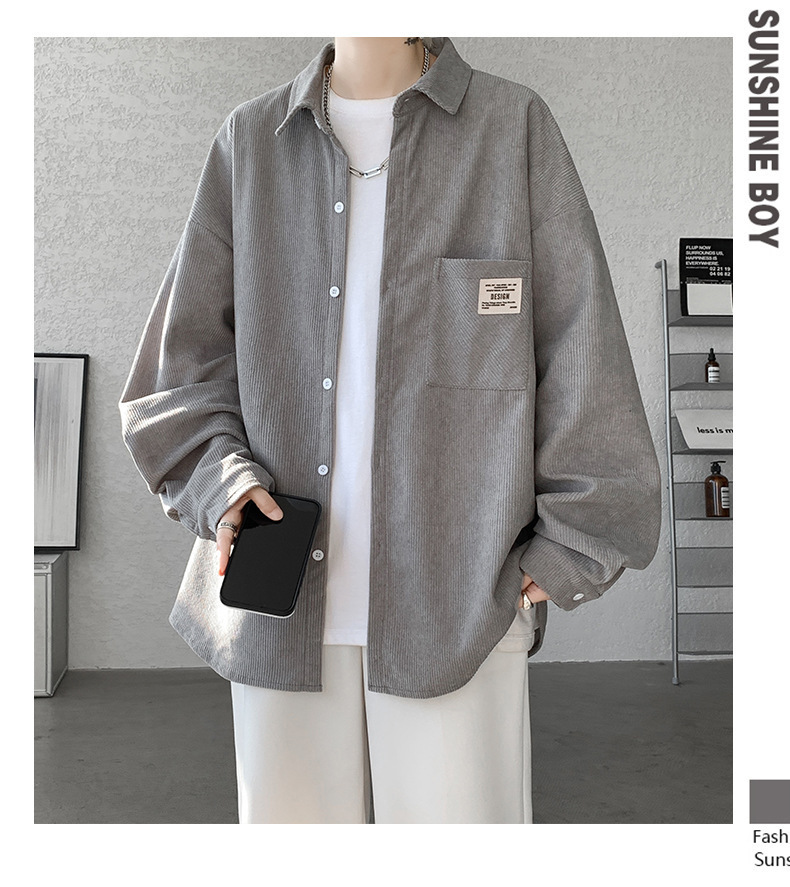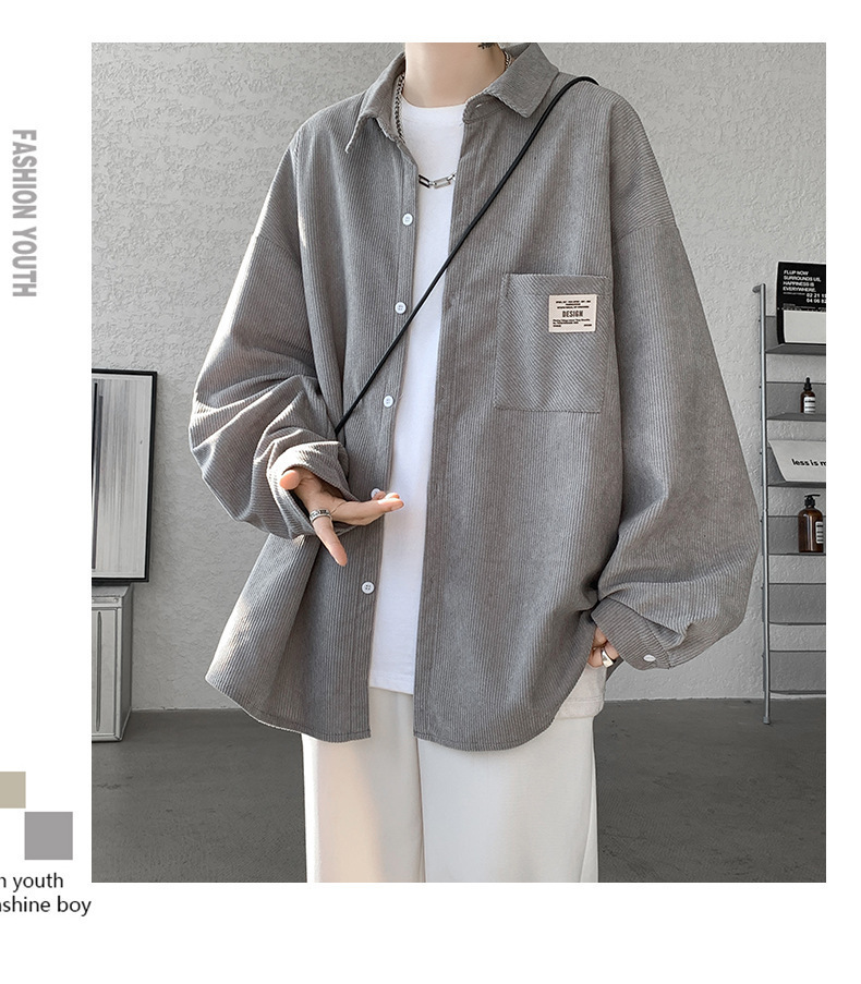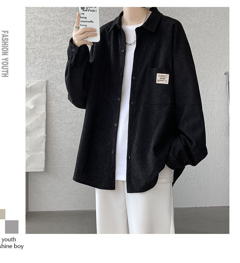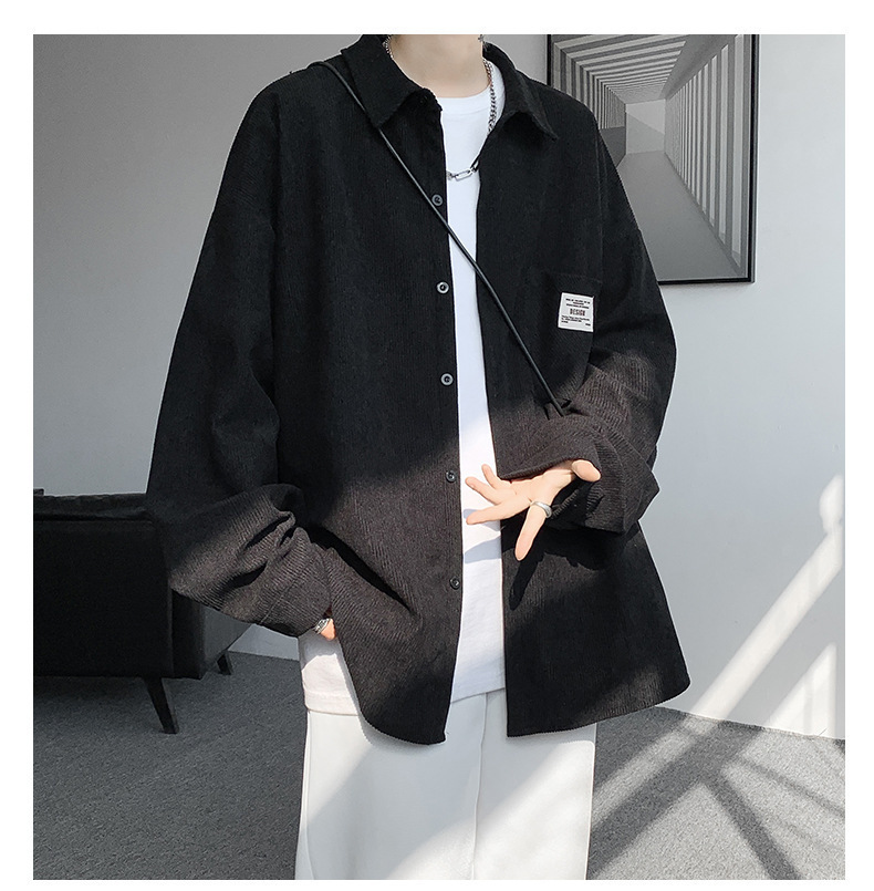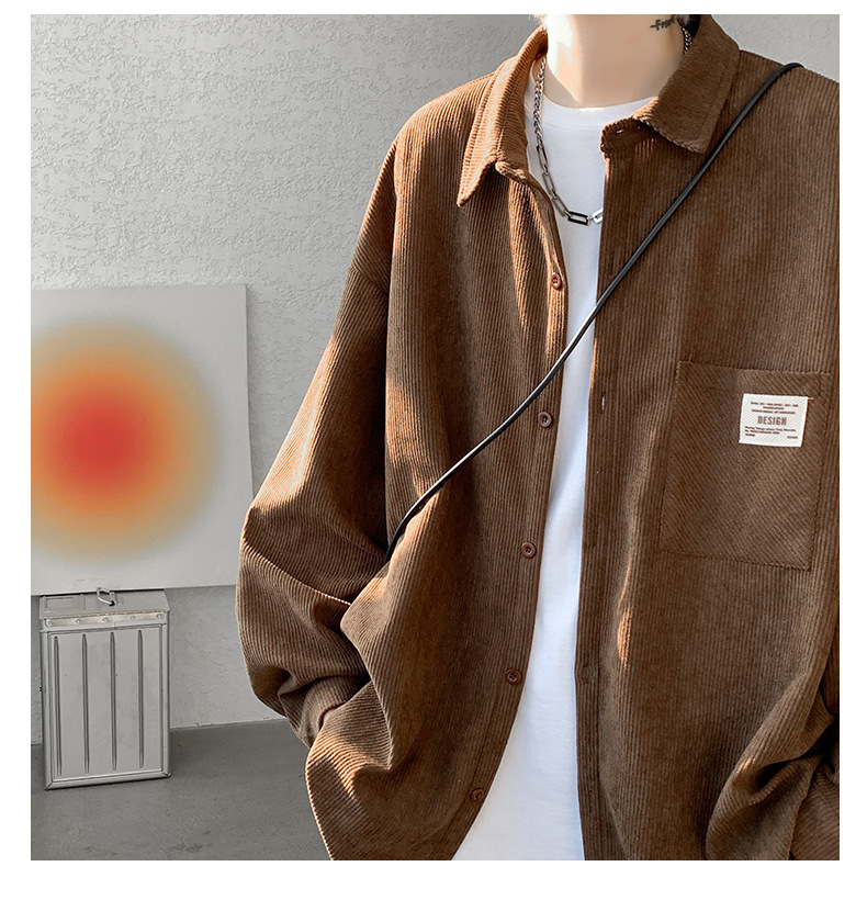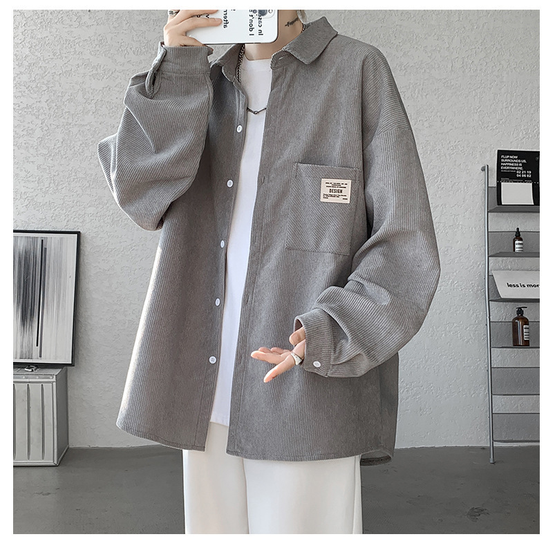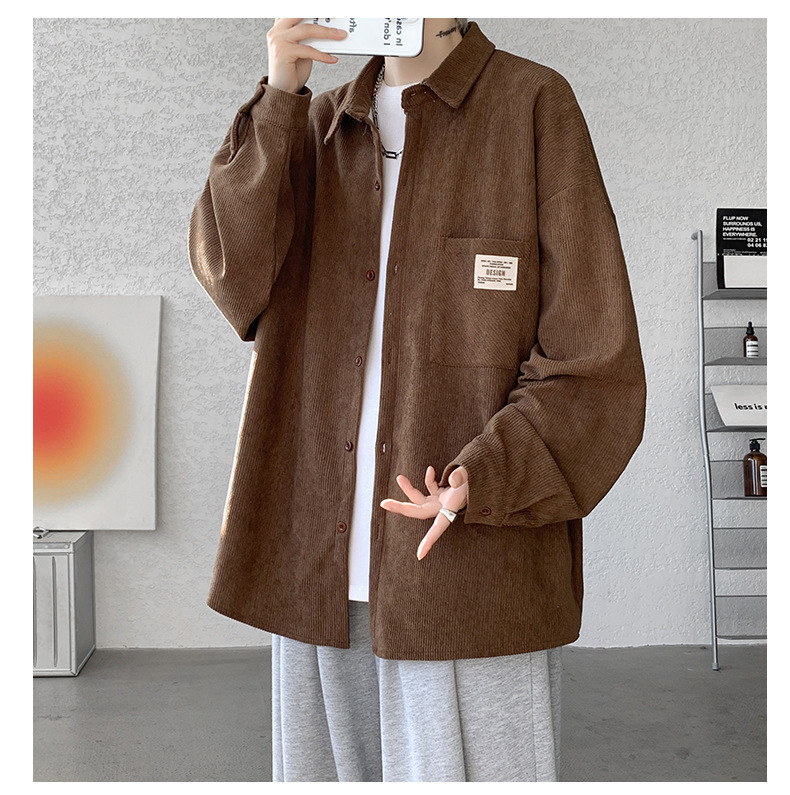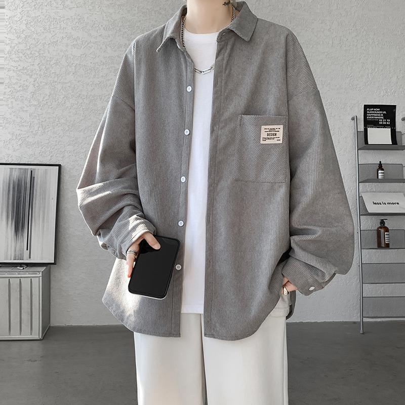 코듀로이 셔츠 남성 긴팔 봄, 가을 일본 복고풍 작업복 루즈한 대형 트렌디하고 멋진 이너 셔츠 재킷스토어 가기