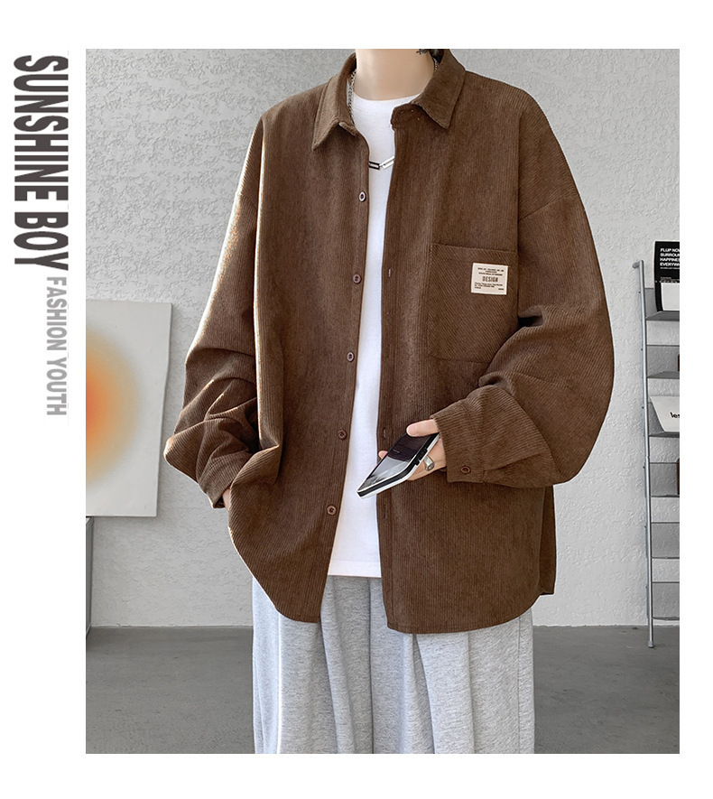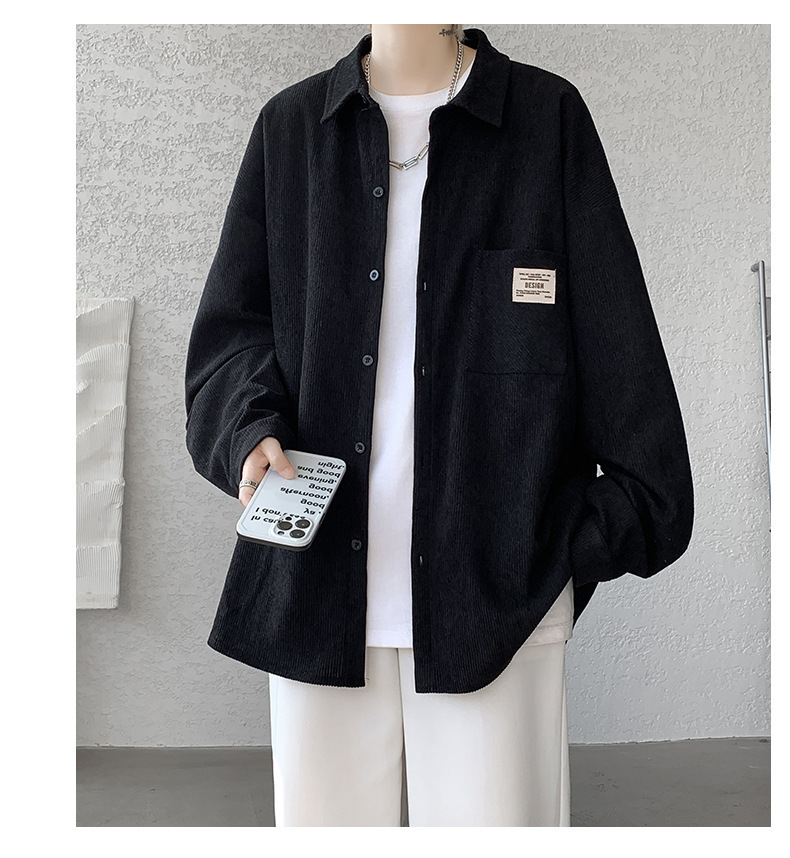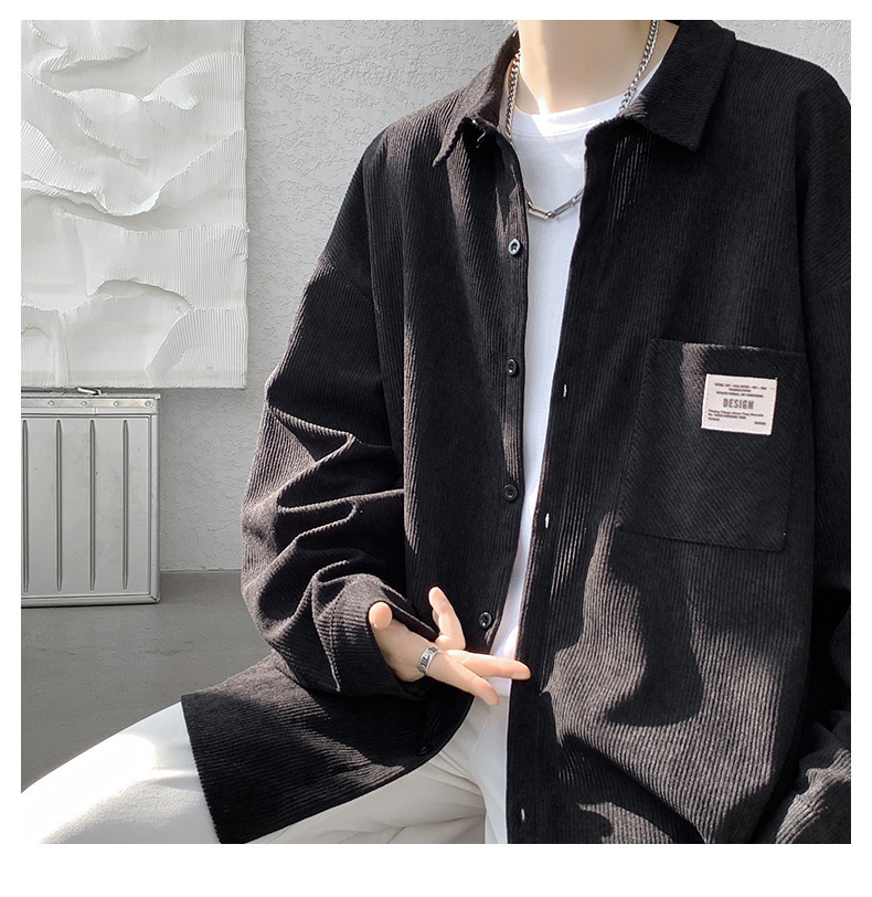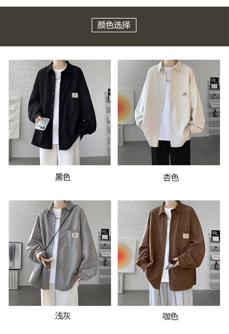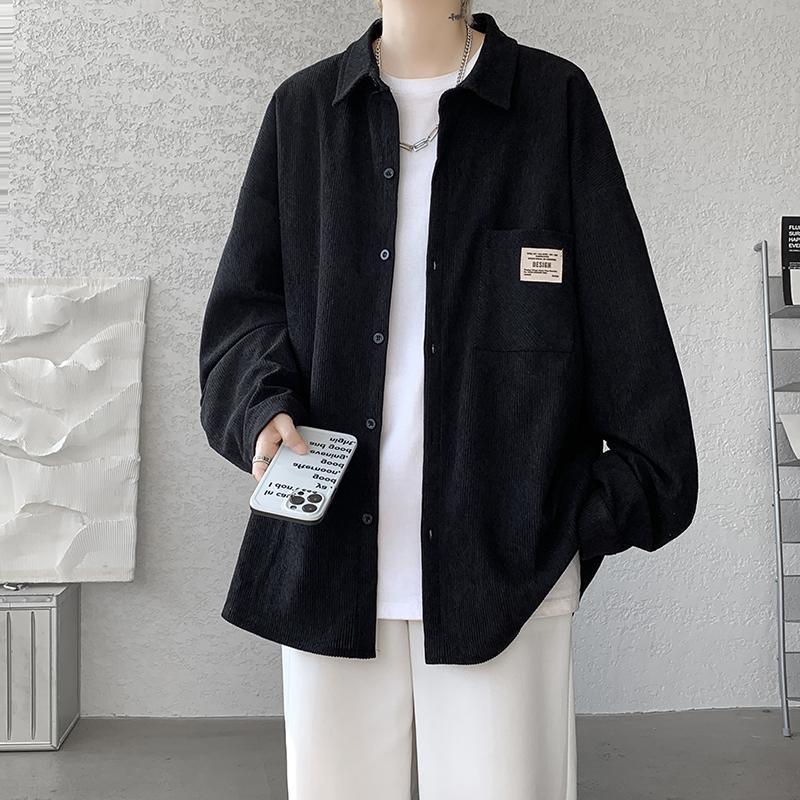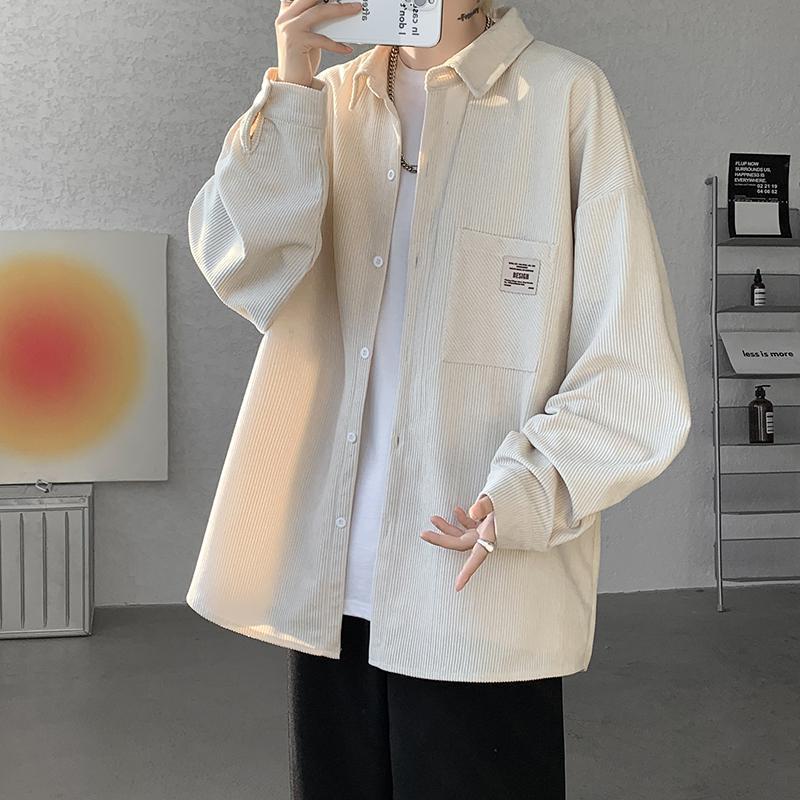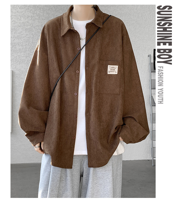 코듀로이 셔츠 남성 긴팔 봄, 가을 일본 복고풍 작업복 루즈한 대형 트렌디하고 멋진 이너 셔츠 재킷스토어 가기