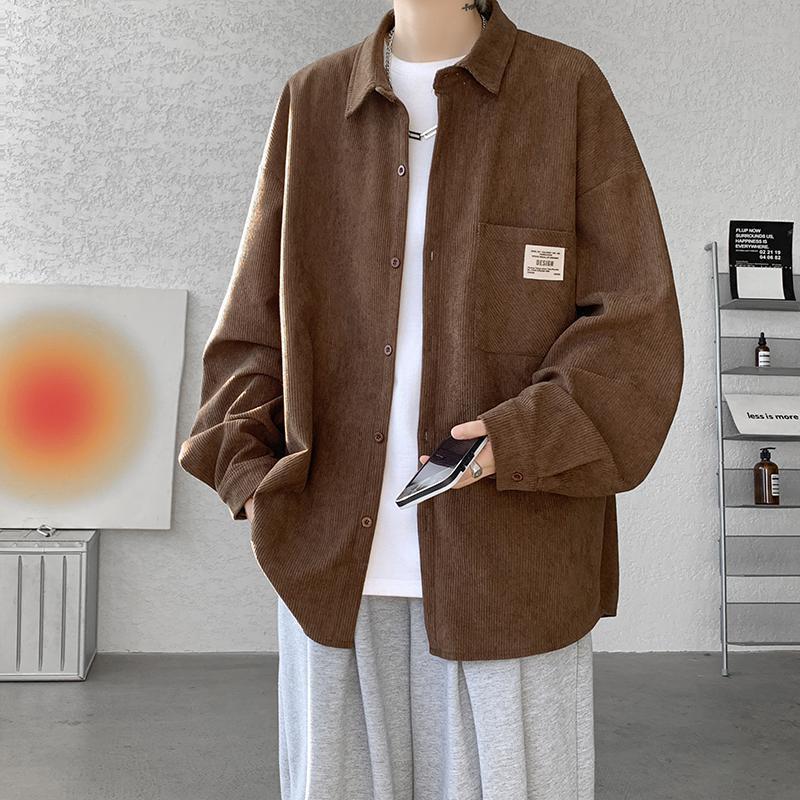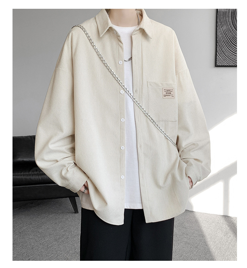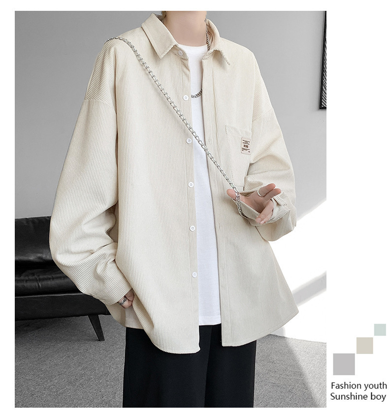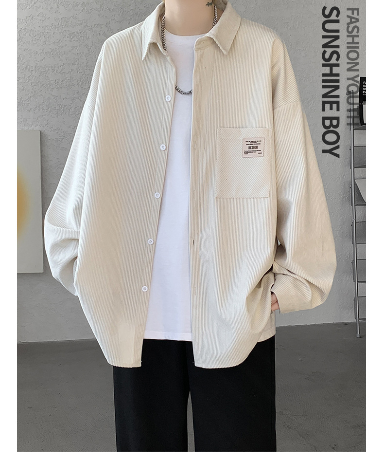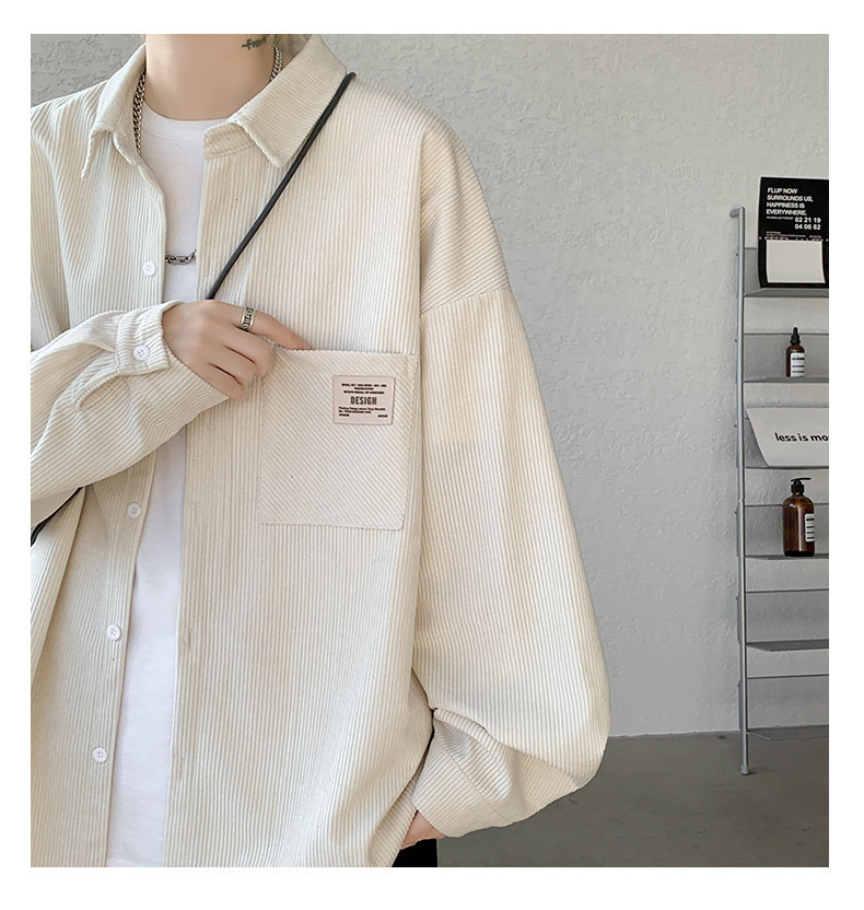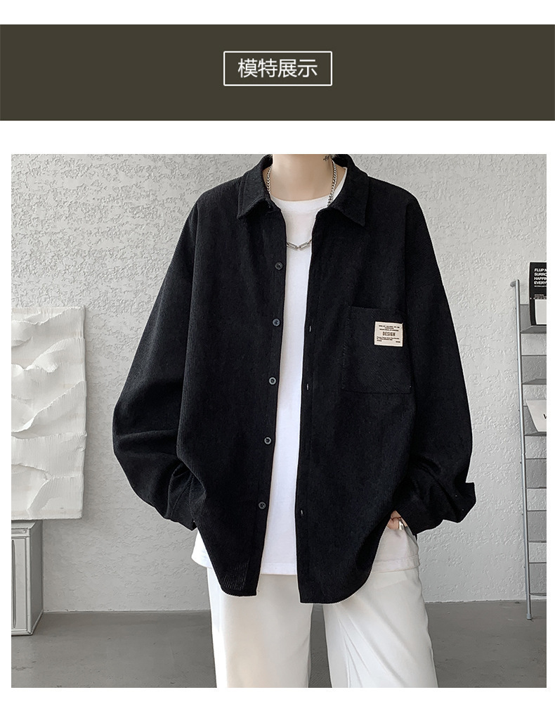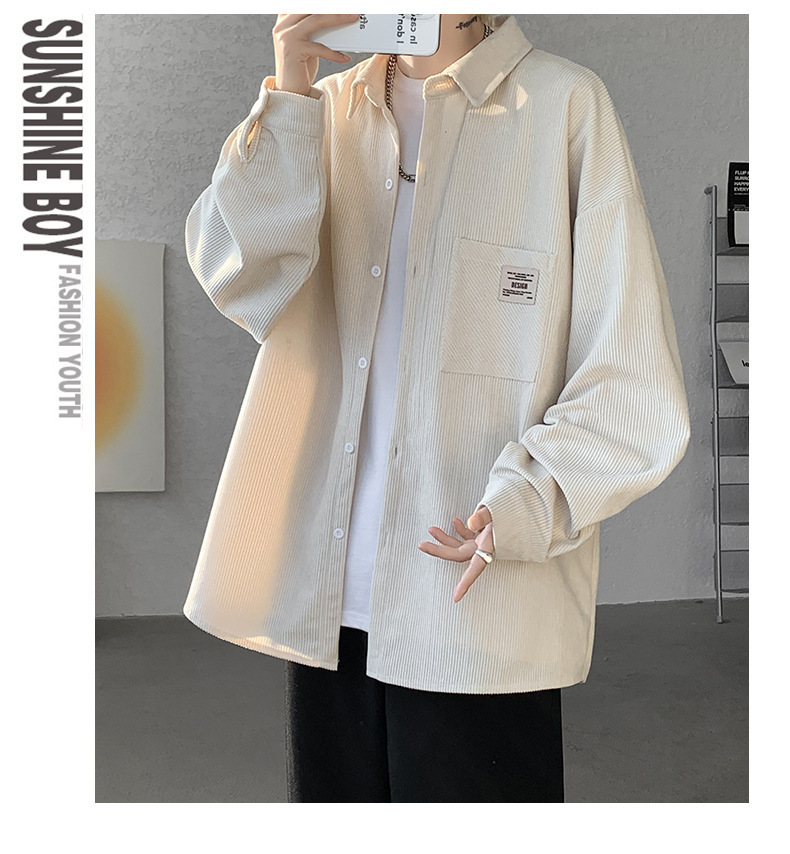 코듀로이 셔츠 남성 긴팔 봄, 가을 일본 복고풍 작업복 루즈한 대형 트렌디하고 멋진 이너 셔츠 재킷스토어 가기