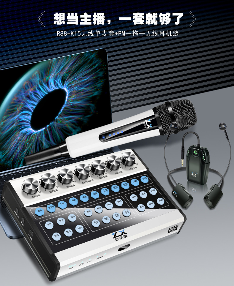 • R88-K15 무선 단일 마이크 세트 + 일대일 Yilexing N8 무선 헤드폰
